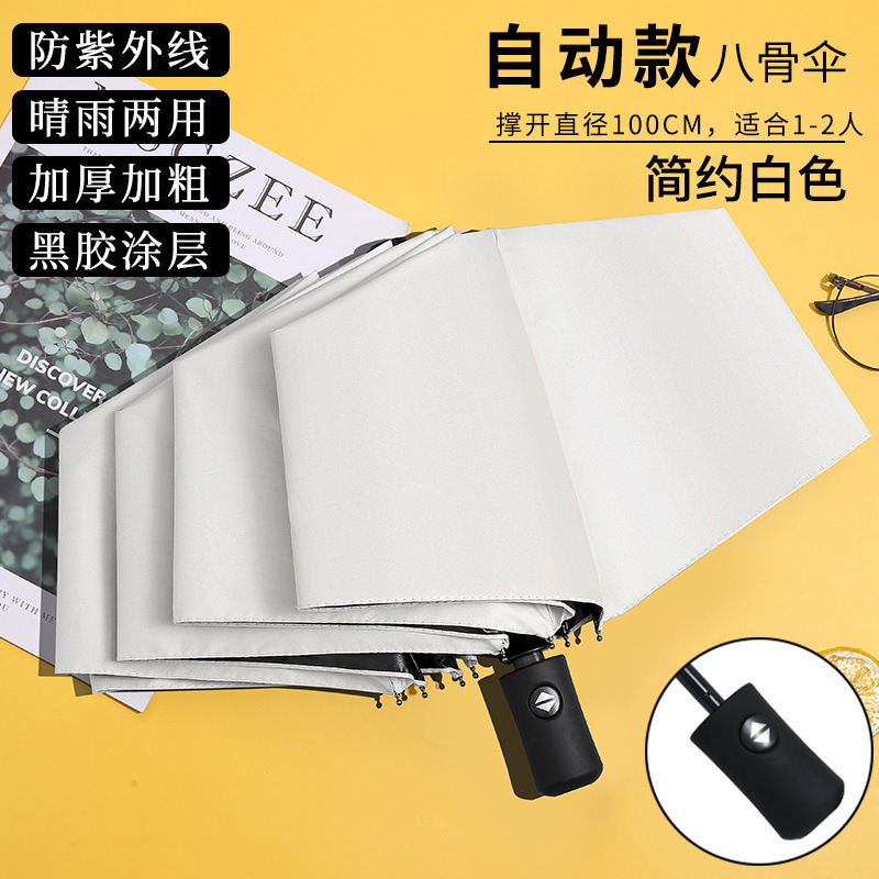 厂家批发自动UV雨伞晴雨伞遮阳防紫外线折叠伞黑胶广告伞印制LOGO