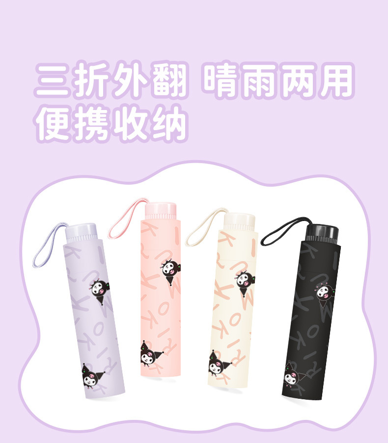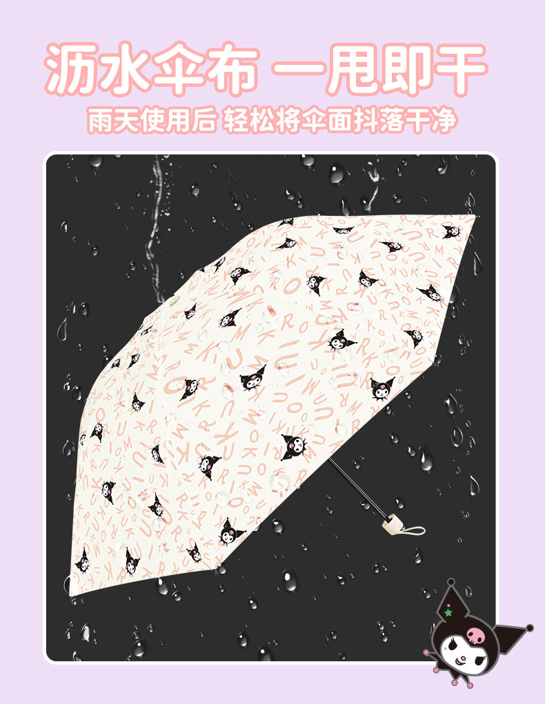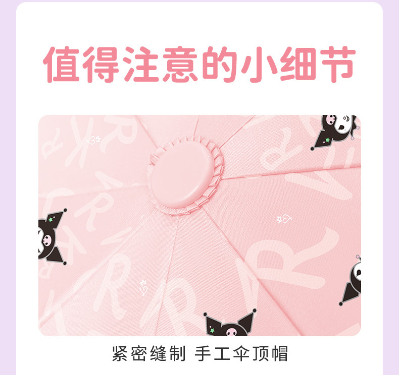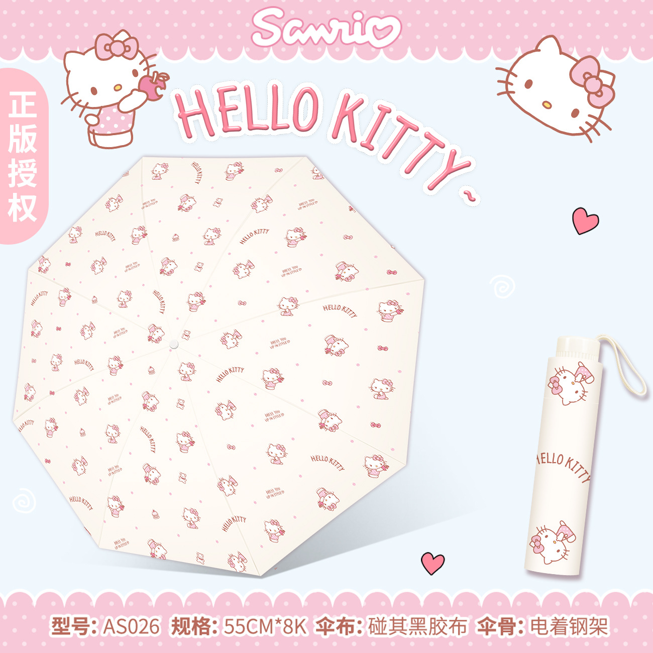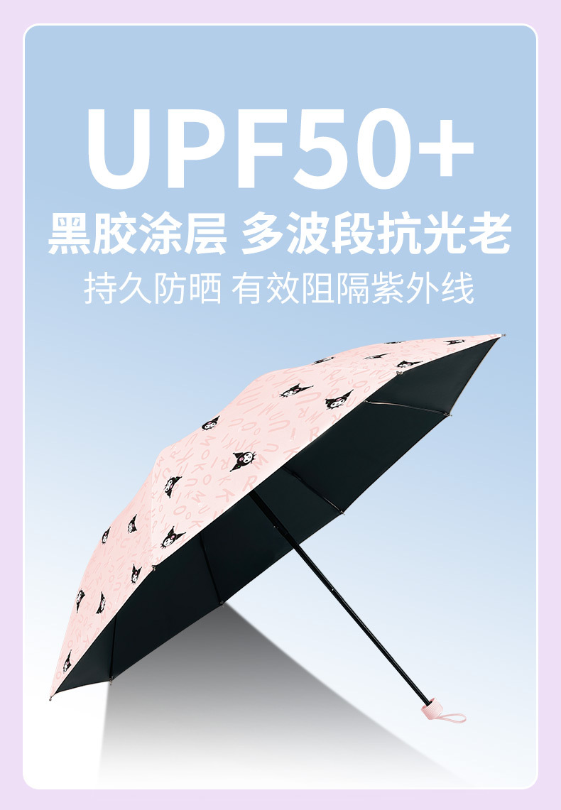 正版三丽鸥雨伞黑胶遮阳伞晴雨两用防晒防紫外线便携卡通三折伞