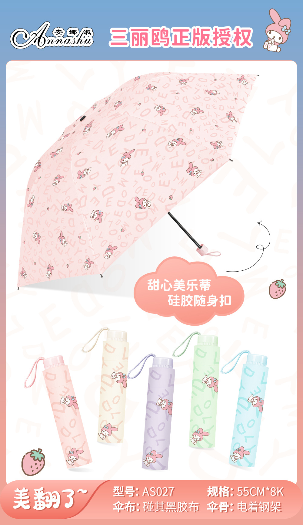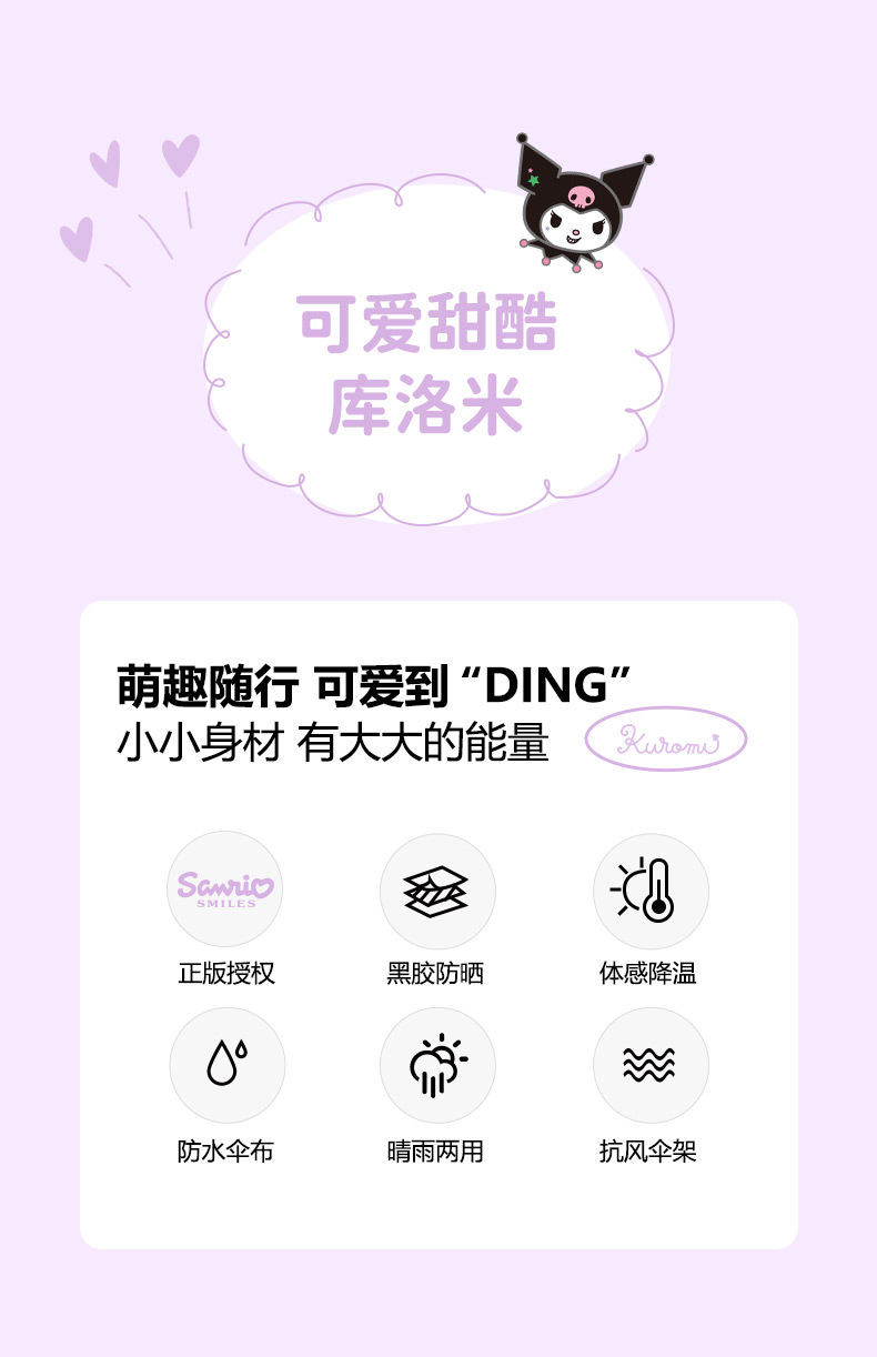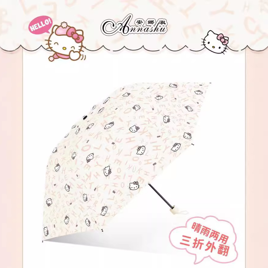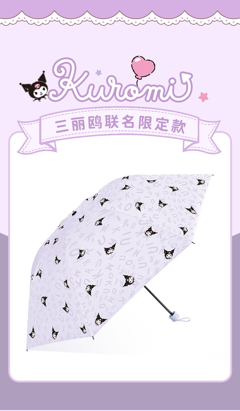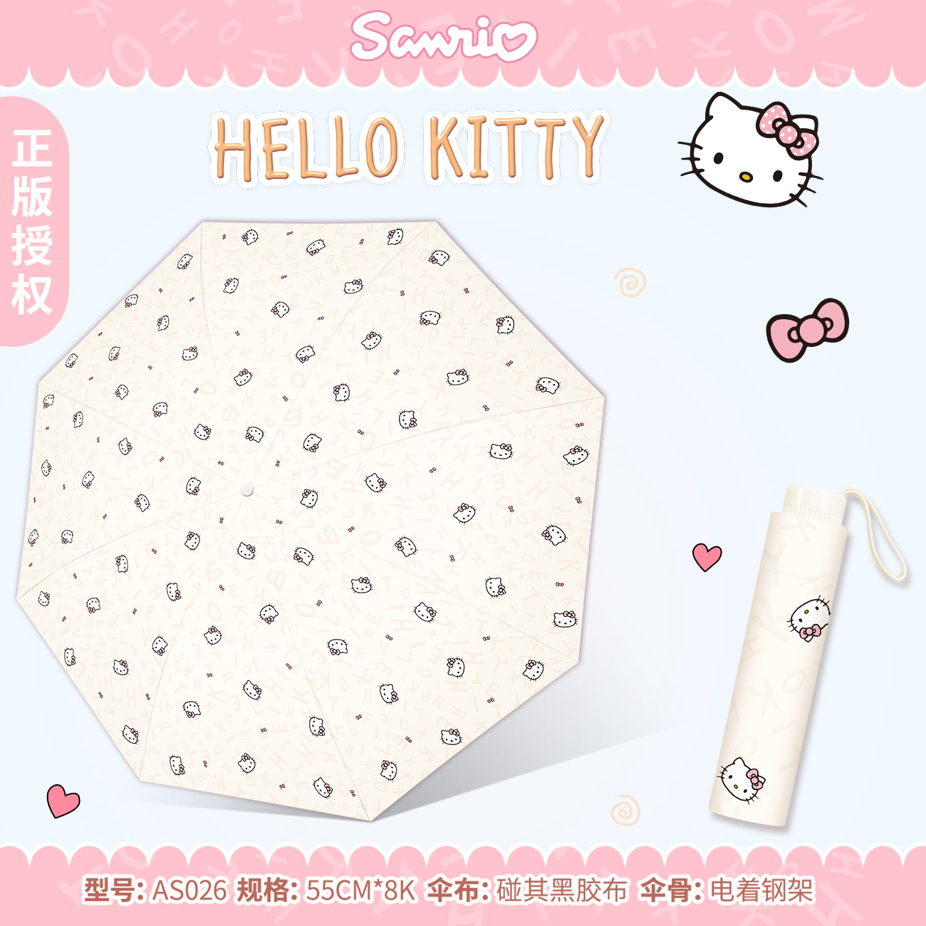 正版三丽鸥雨伞黑胶遮阳伞晴雨两用防晒防紫外线便携卡通三折伞