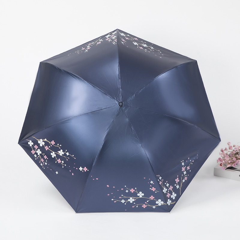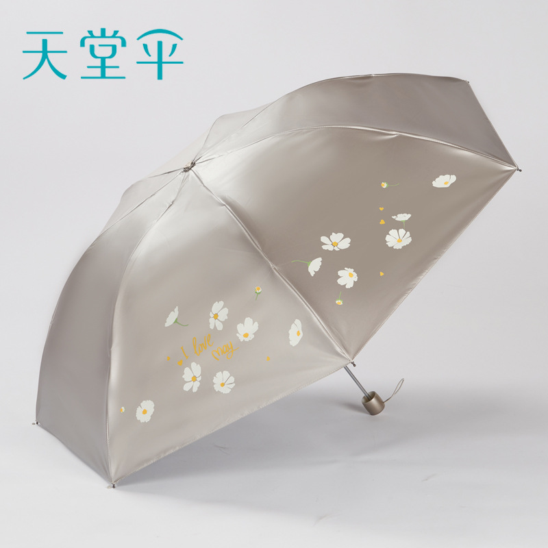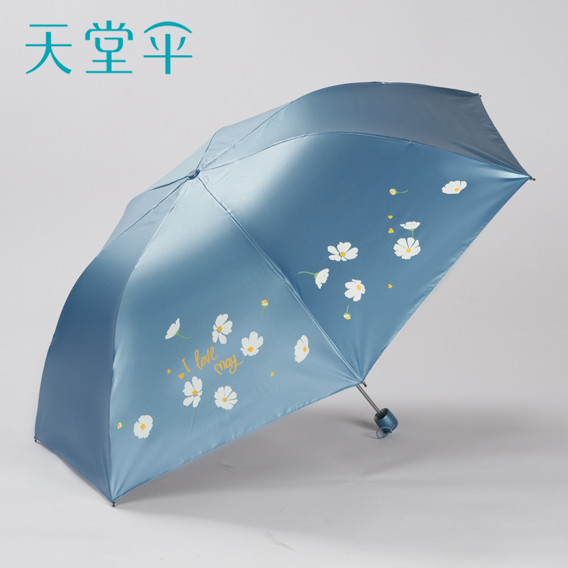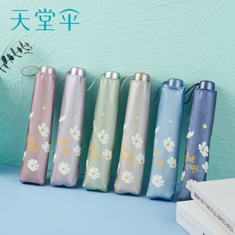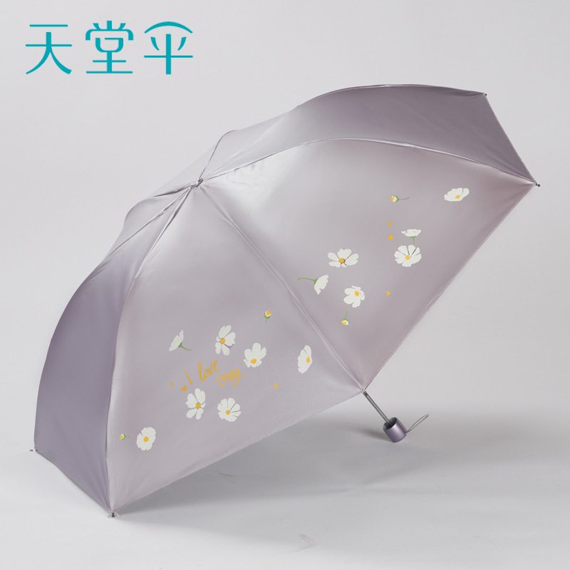 正品天堂伞307E雪月风花三折黑胶防紫外线遮阳晴雨伞 超轻铅笔伞
