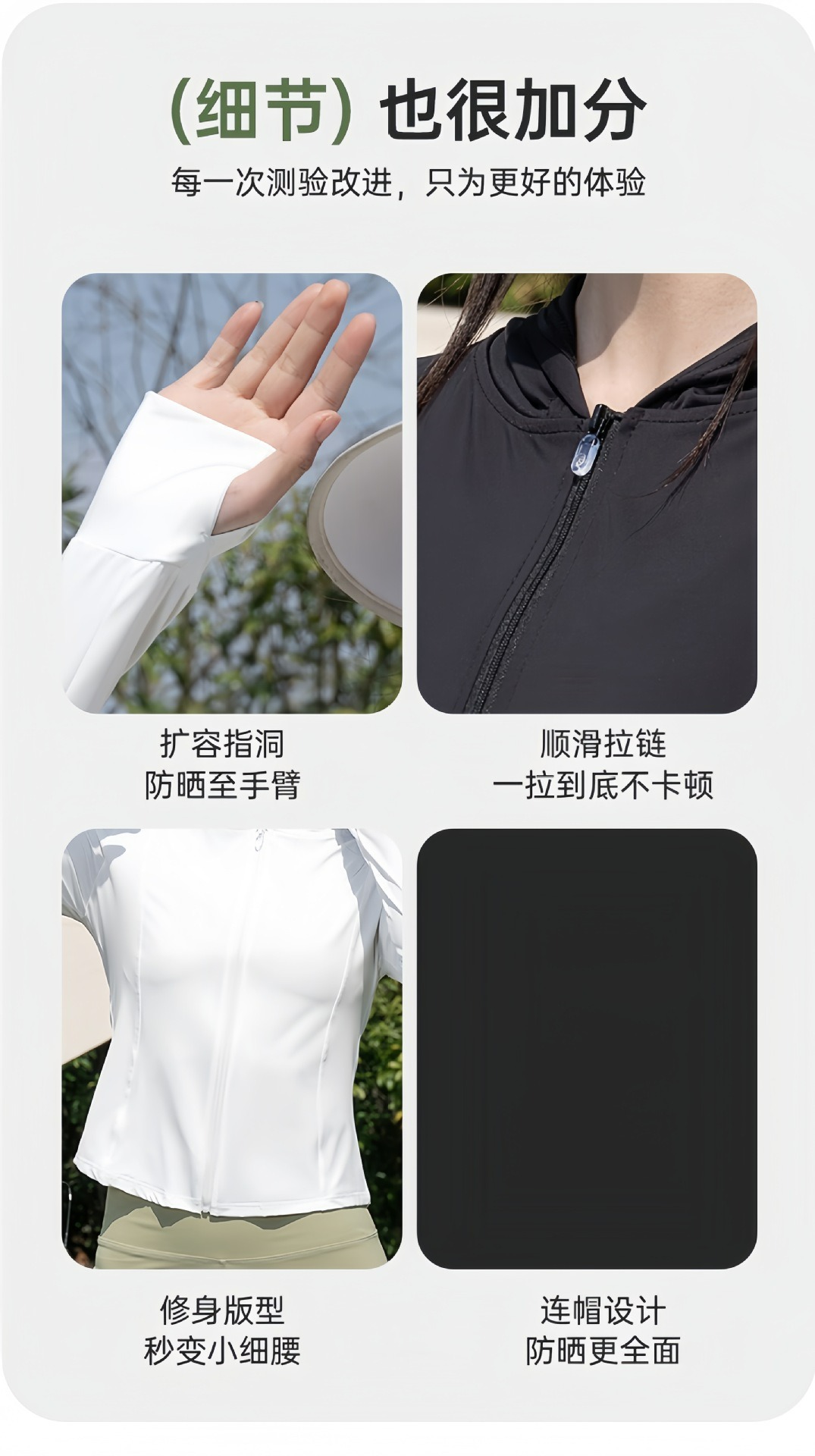 2025夏季新款小野防晒一代瑜伽运动修身轻薄连帽无口袋女士防晒衣