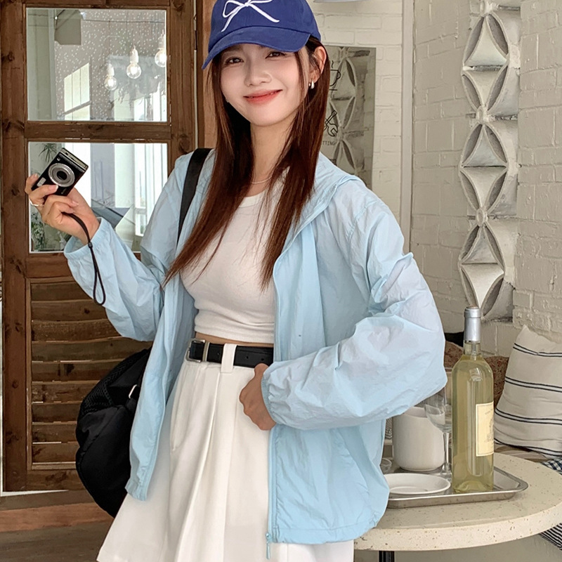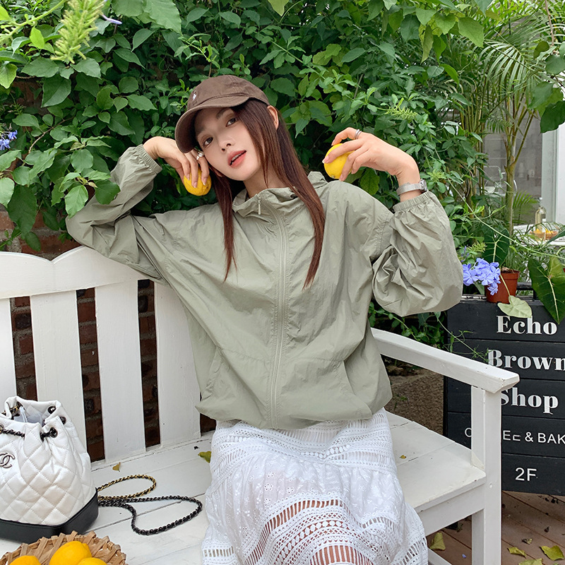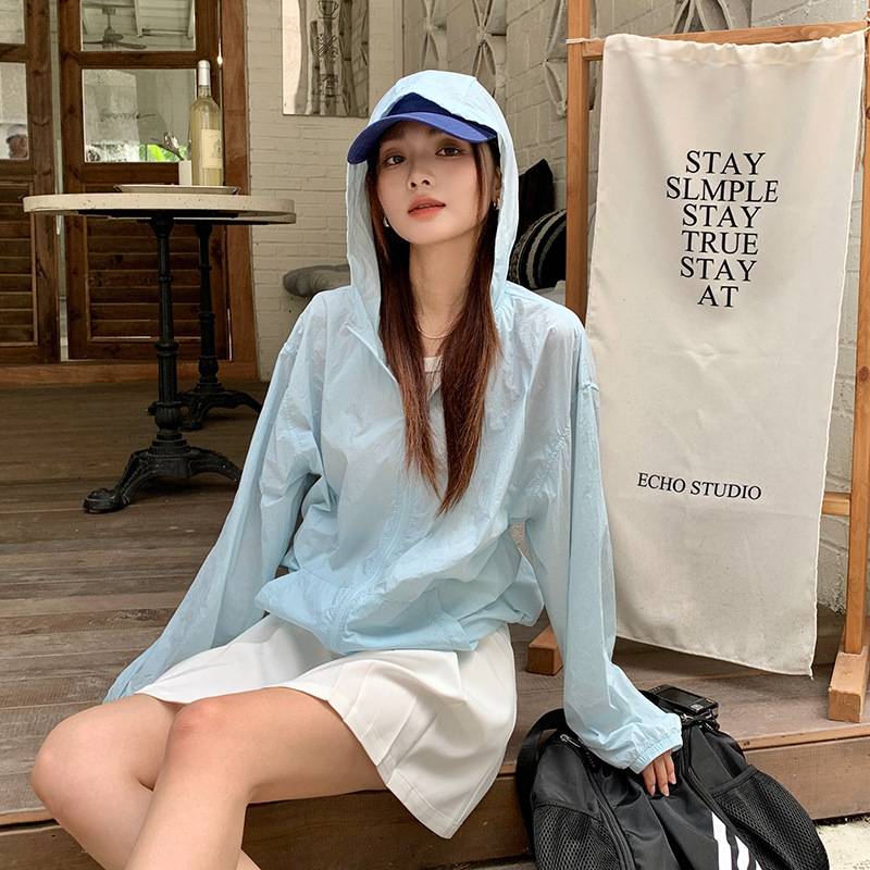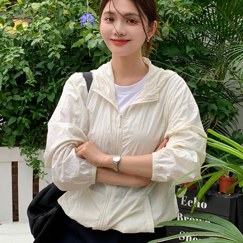 森岛 夏季宽松新款防晒衣女连帽长袖防晒服轻薄拉链防紫外线外套