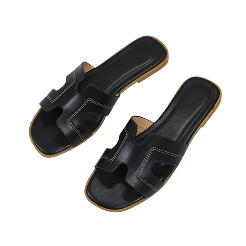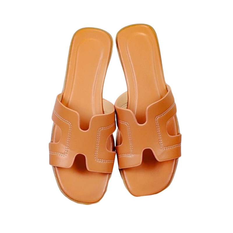 跨境外贸热销纯色一字拖鞋女2026夏季外穿ins沙滩防滑大码凉拖鞋