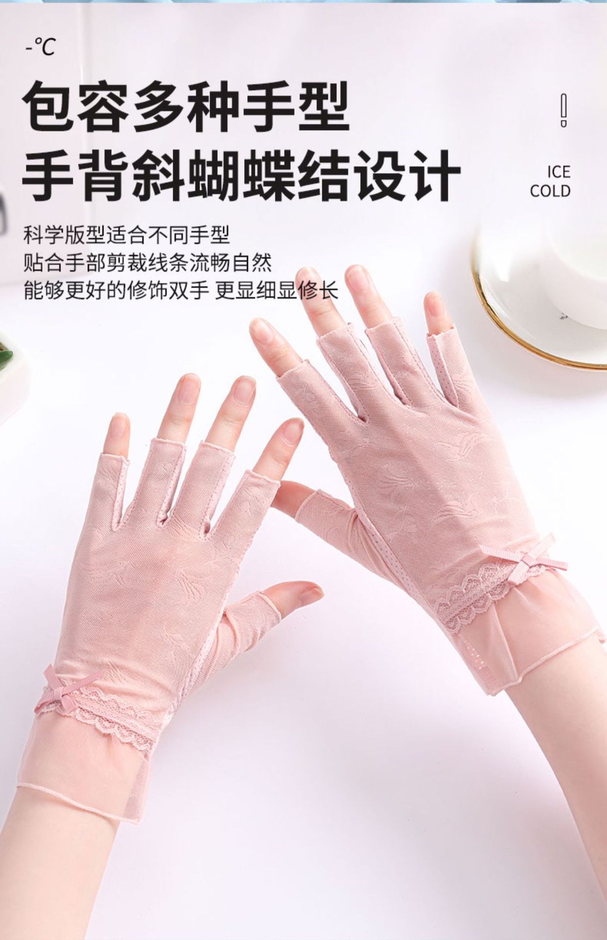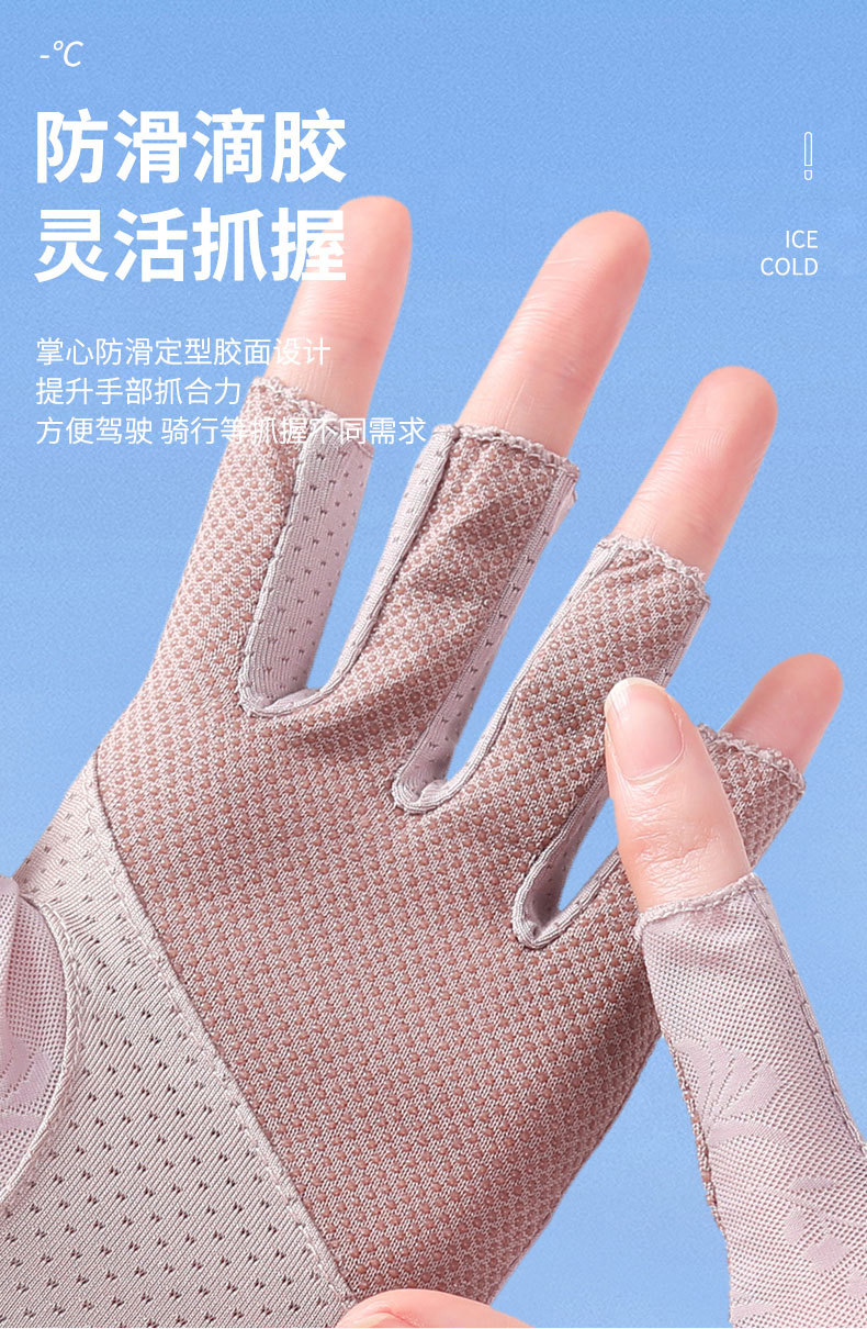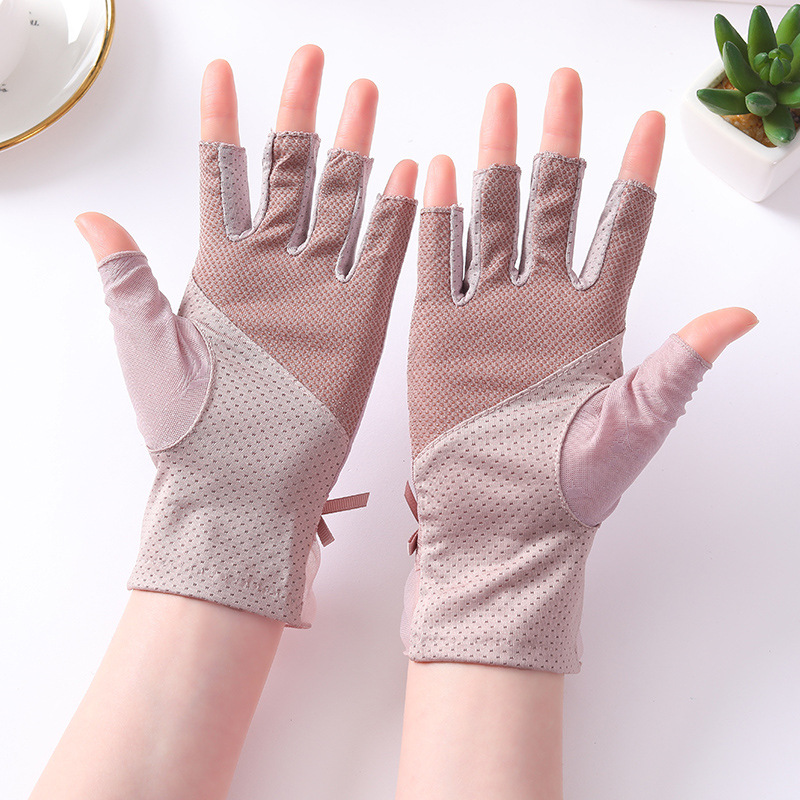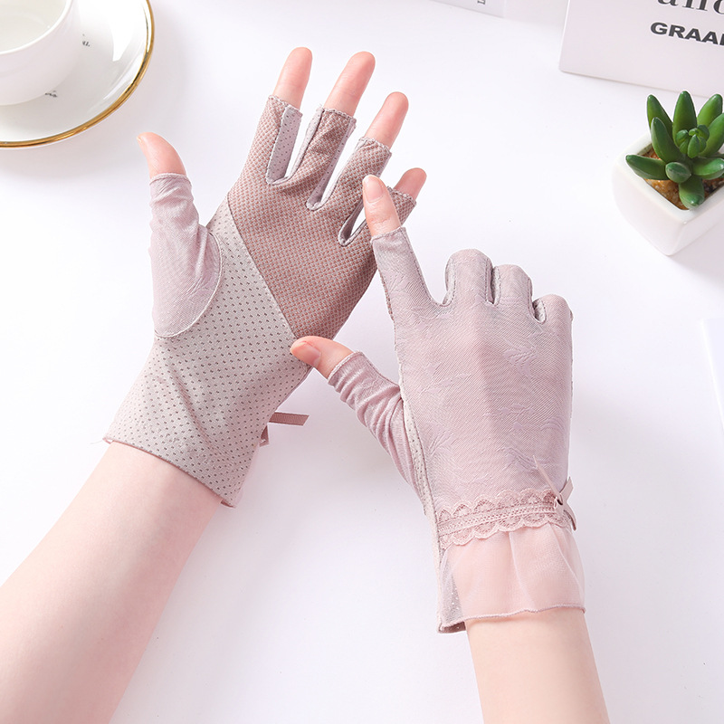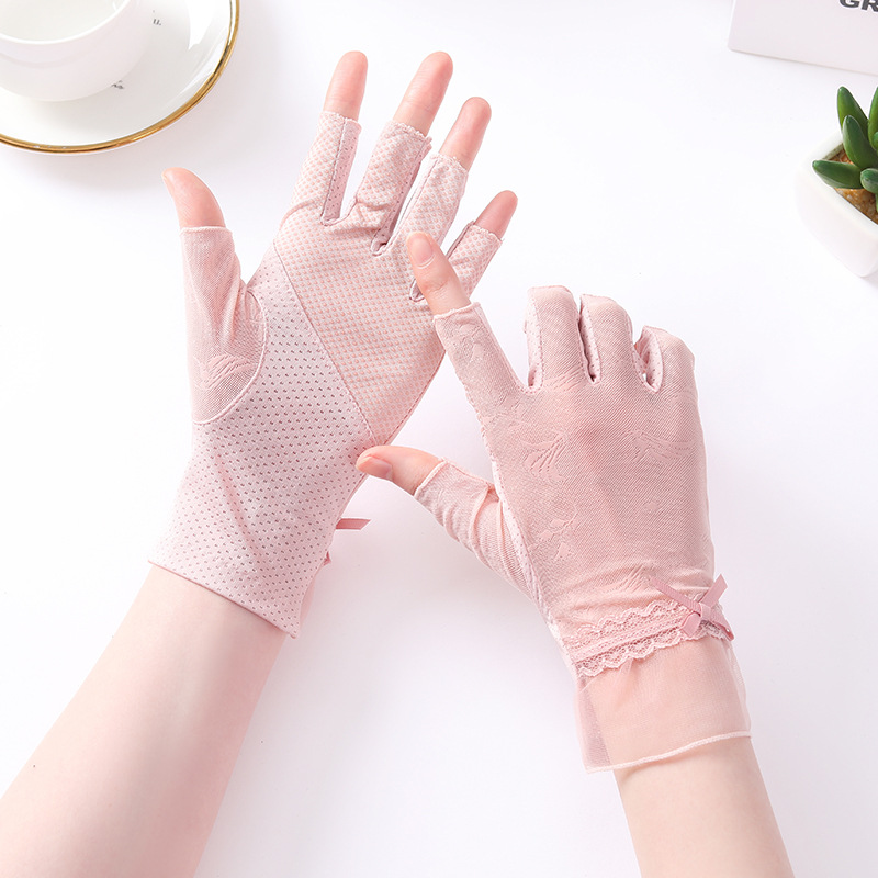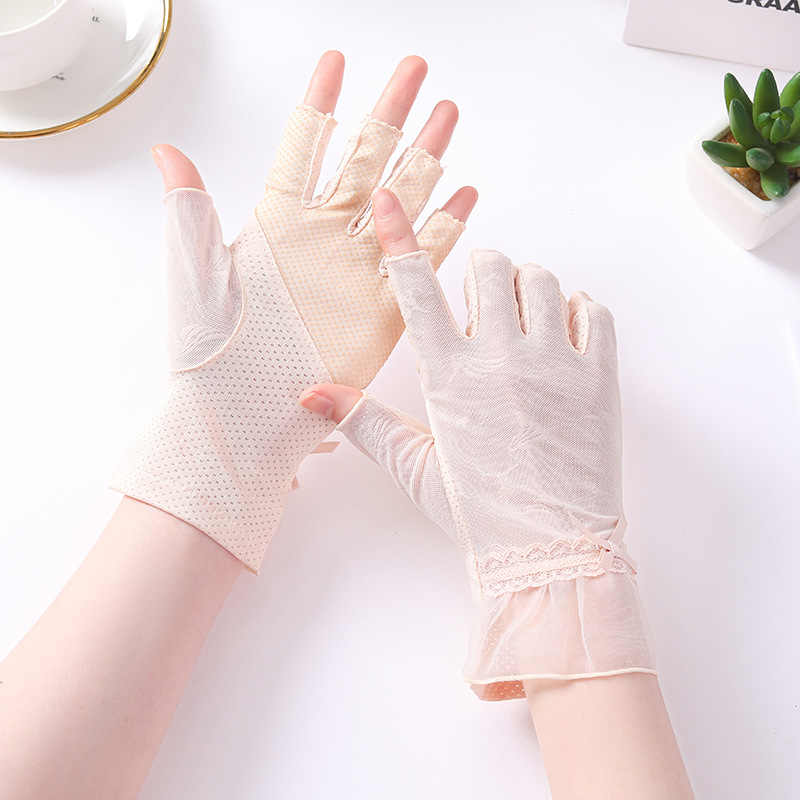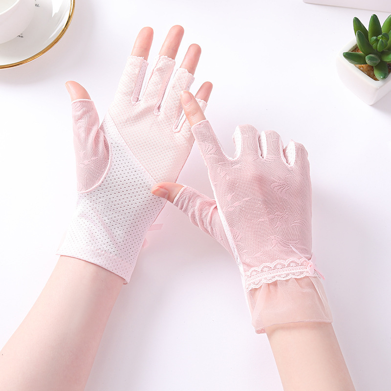 半指冰丝薄款防晒手套女士夏季露指开车骑行防滑透气蕾丝美甲护手