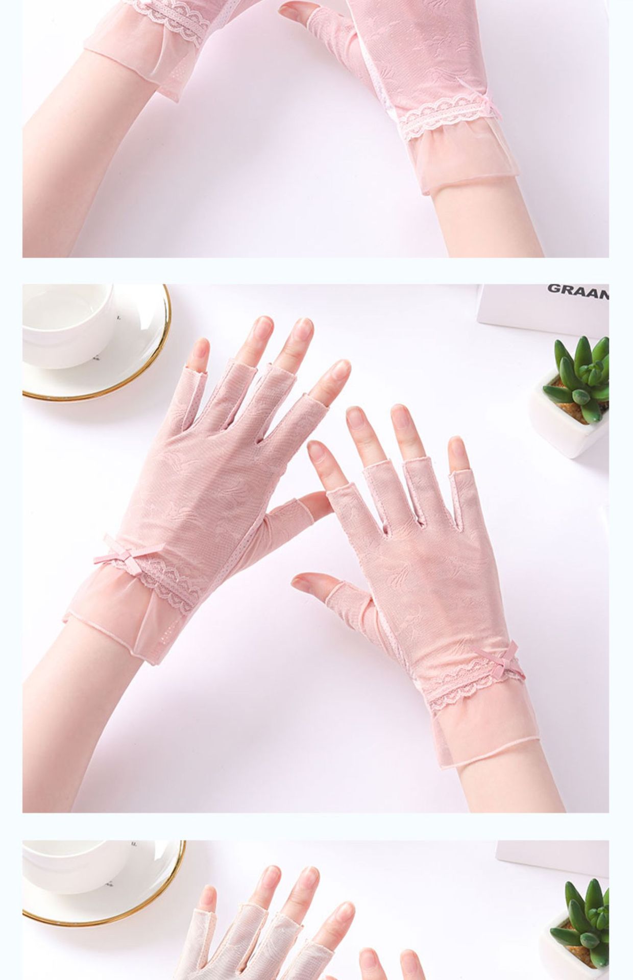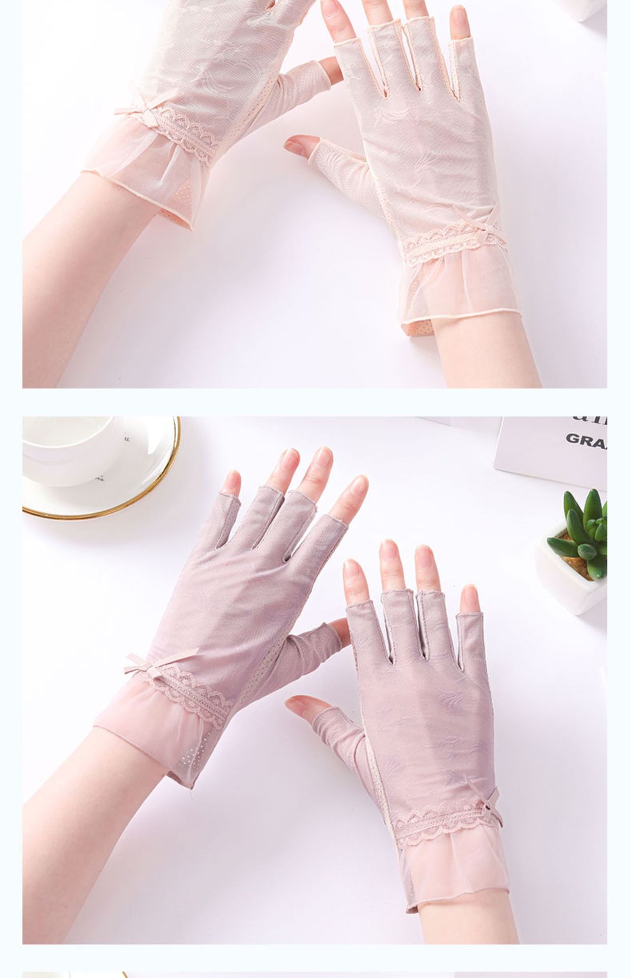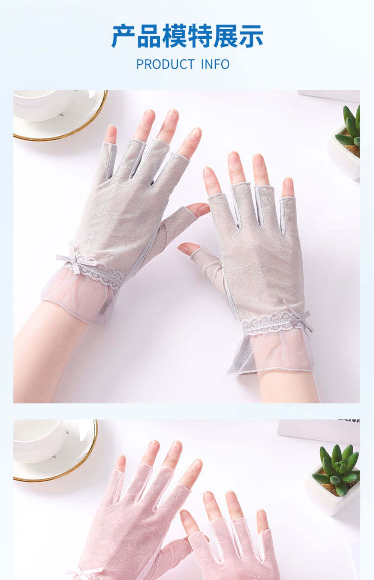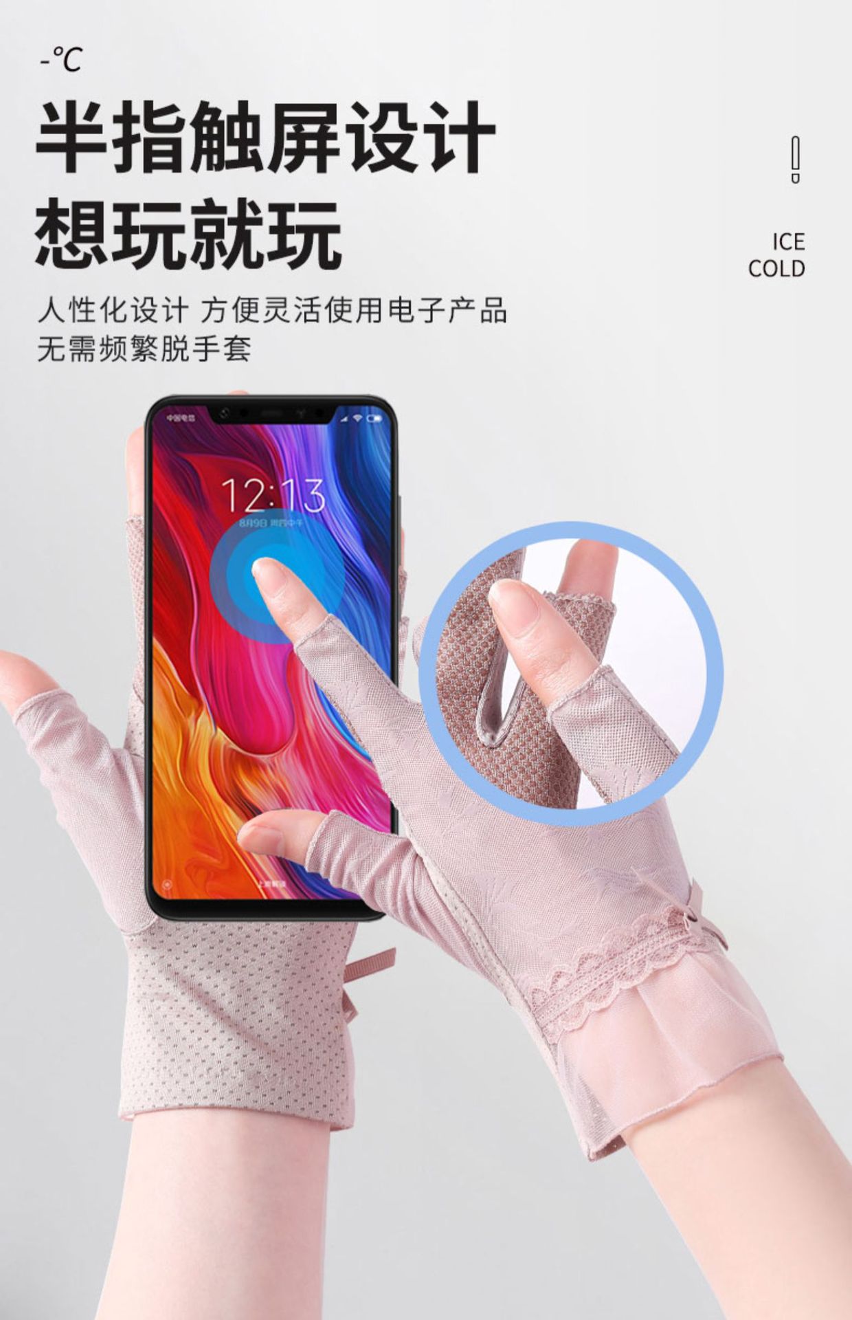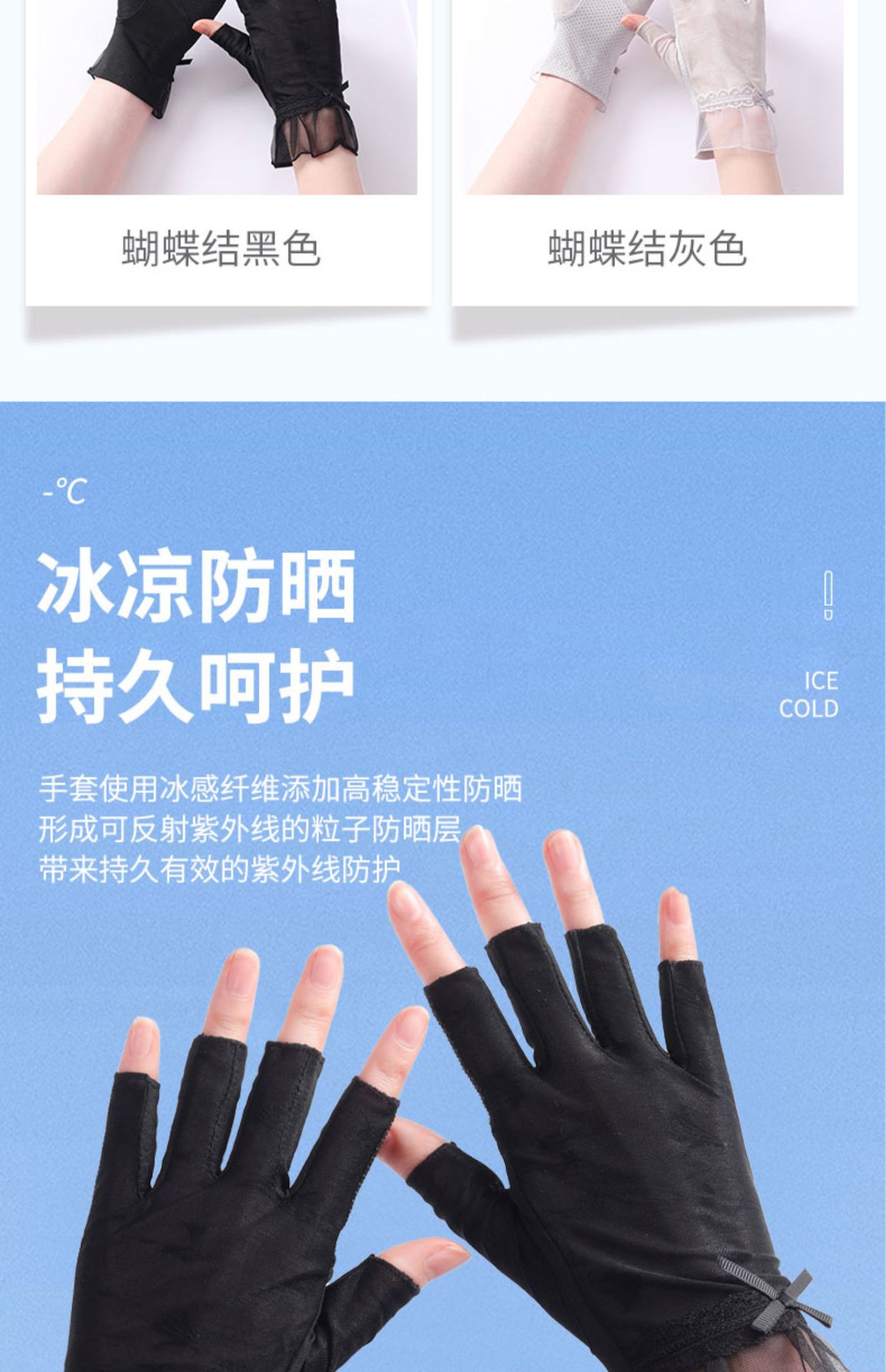 半指冰丝薄款防晒手套女士夏季露指开车骑行防滑透气蕾丝美甲护手