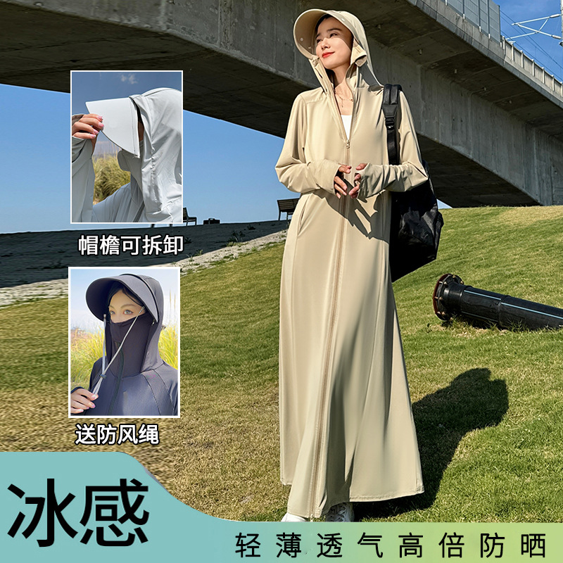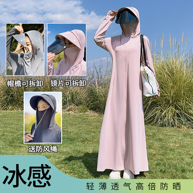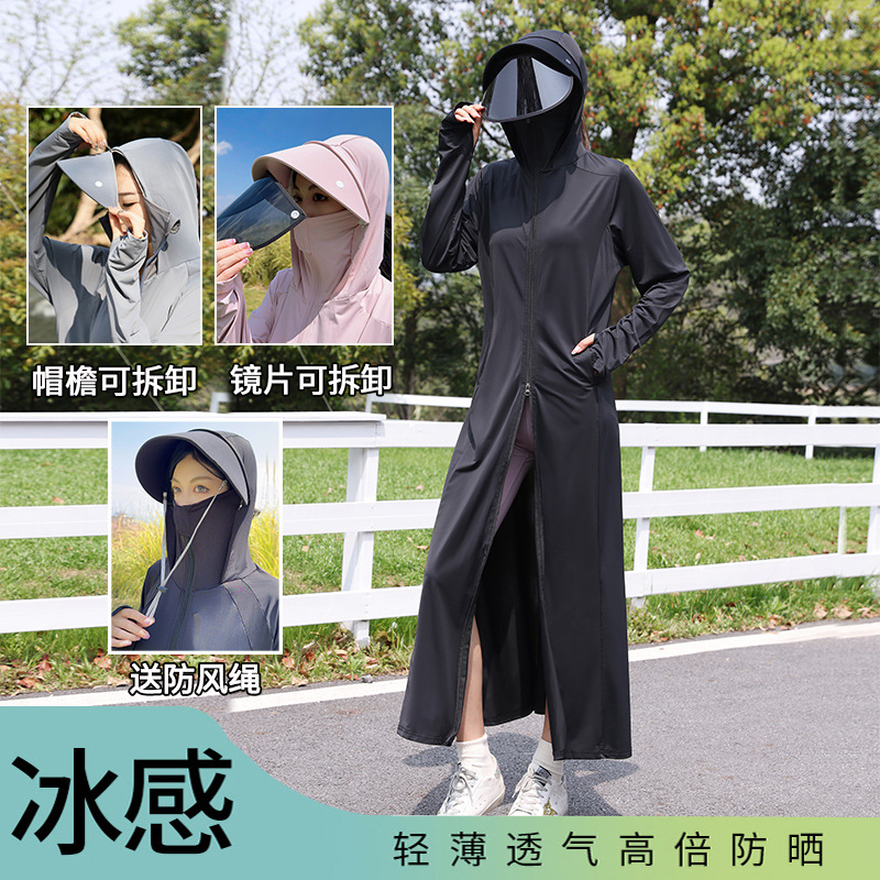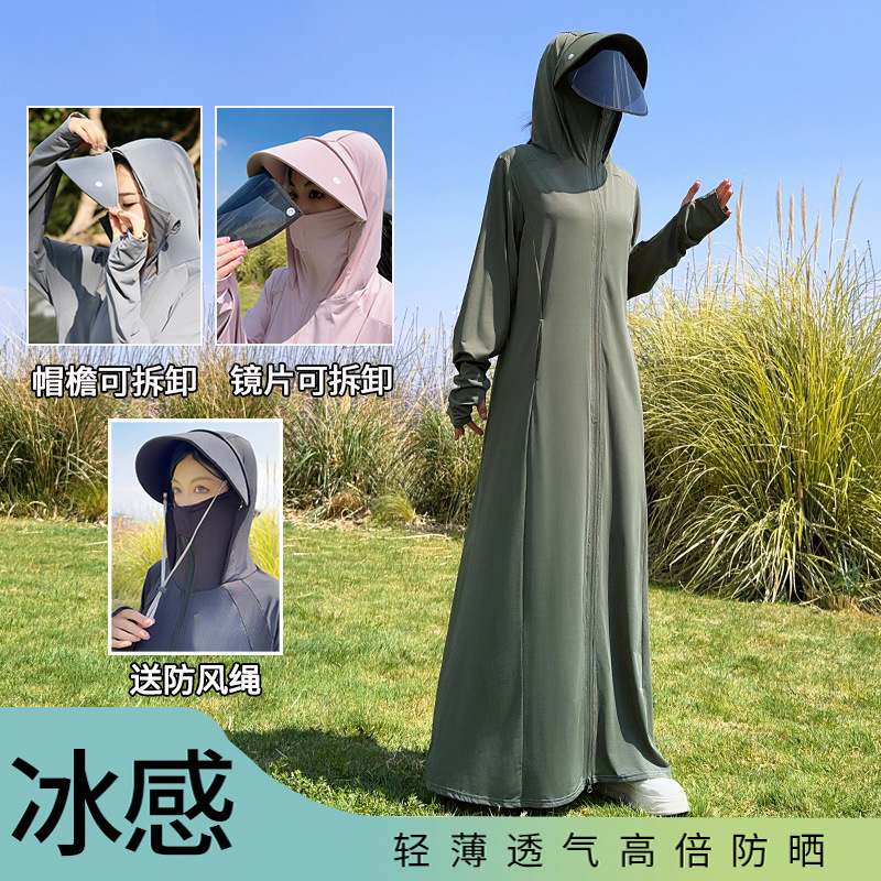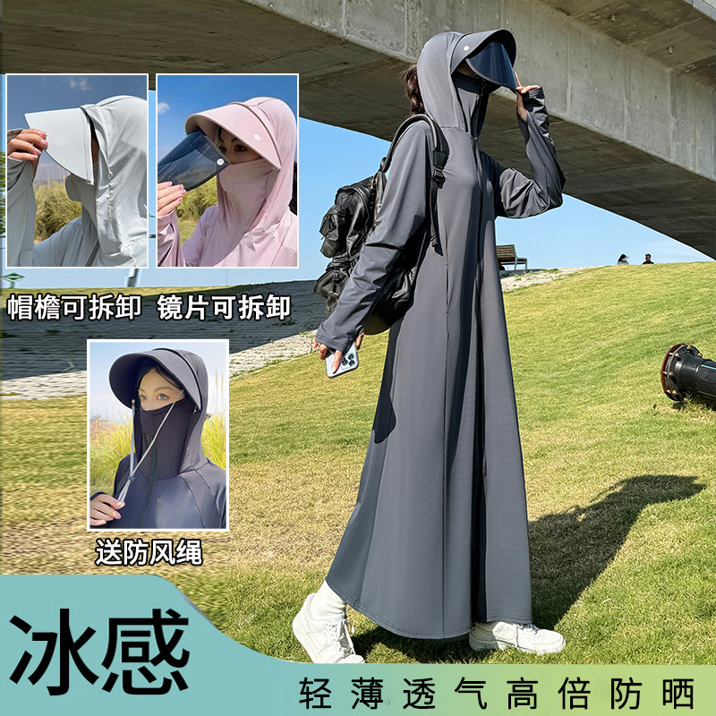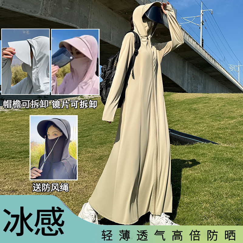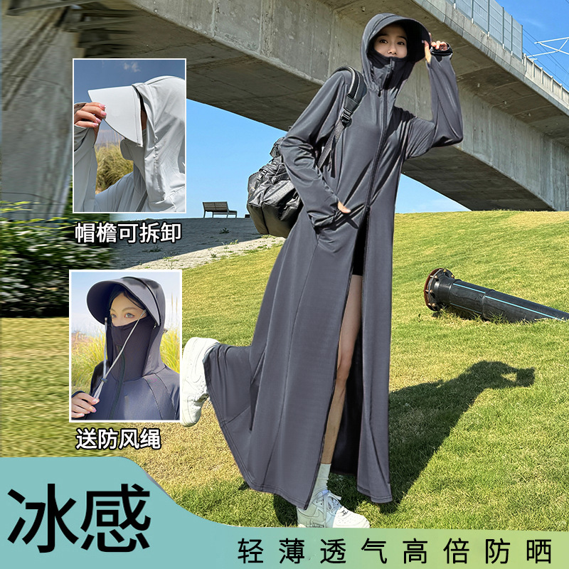 2026年新超长款冰丝防晒衣女生夏季大帽檐可拆防紫外线全身防晒