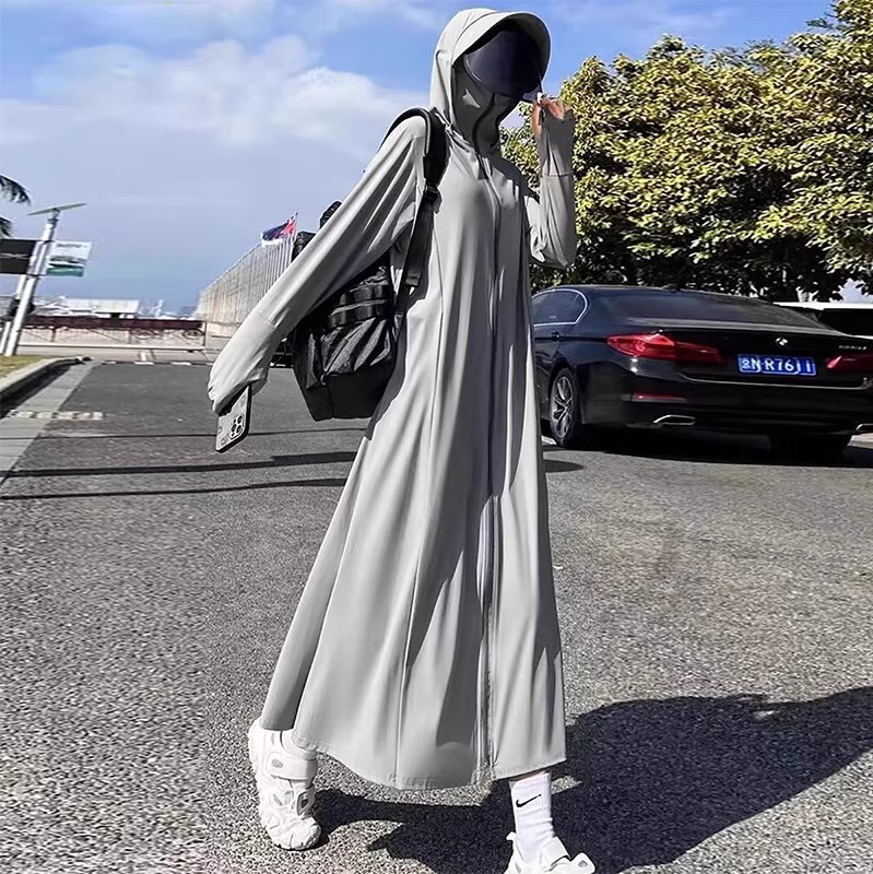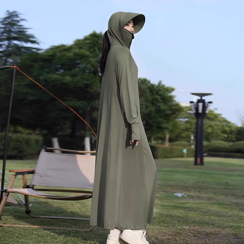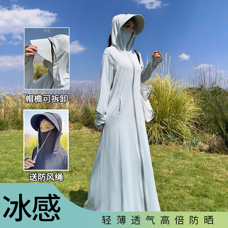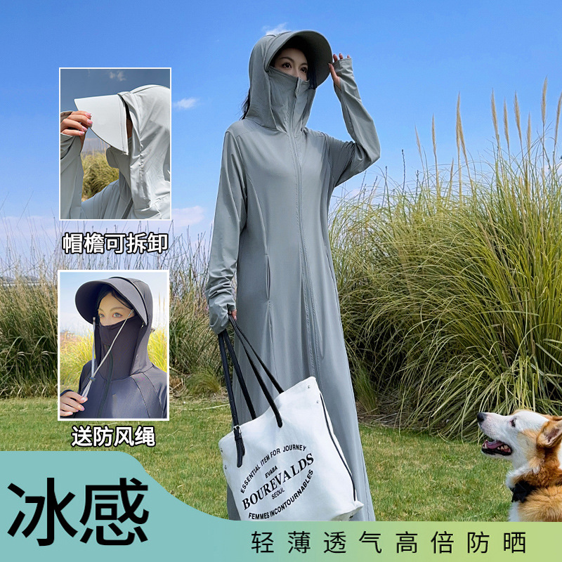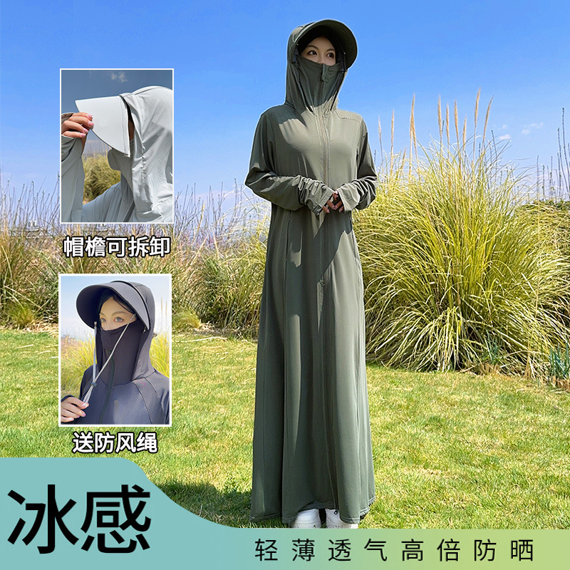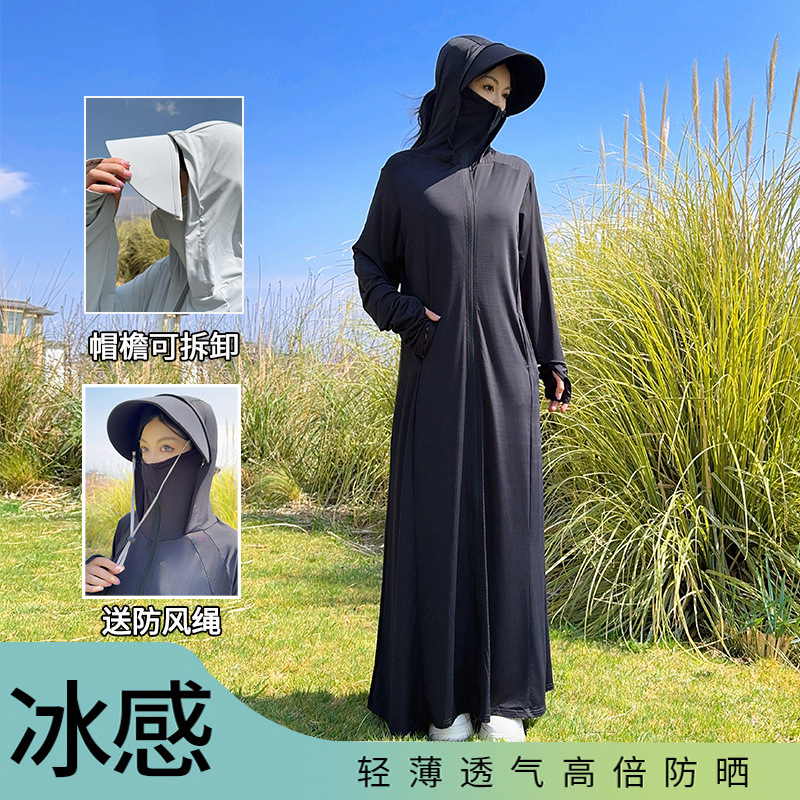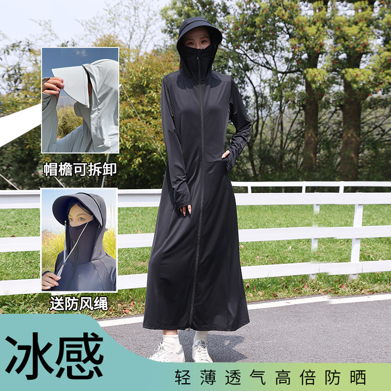 2026年新超长款冰丝防晒衣女生夏季大帽檐可拆防紫外线全身防晒