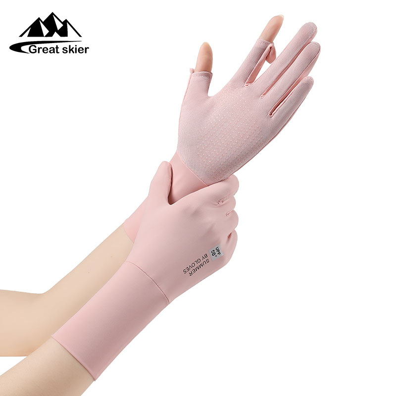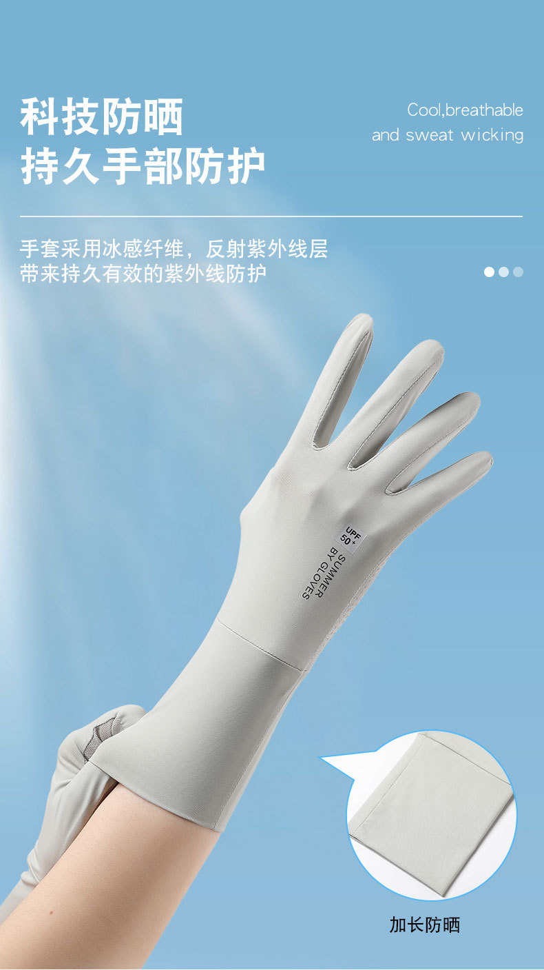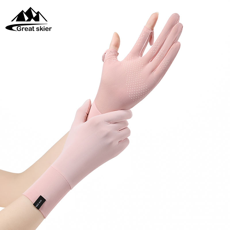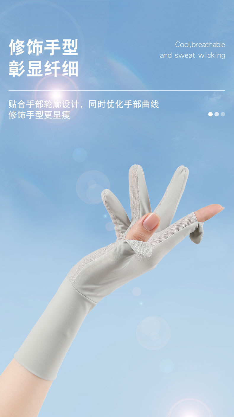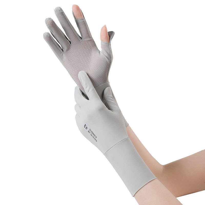防晒手套户外骑行防滑翻盖触屏防紫外线女士冰丝薄款透气手套批发