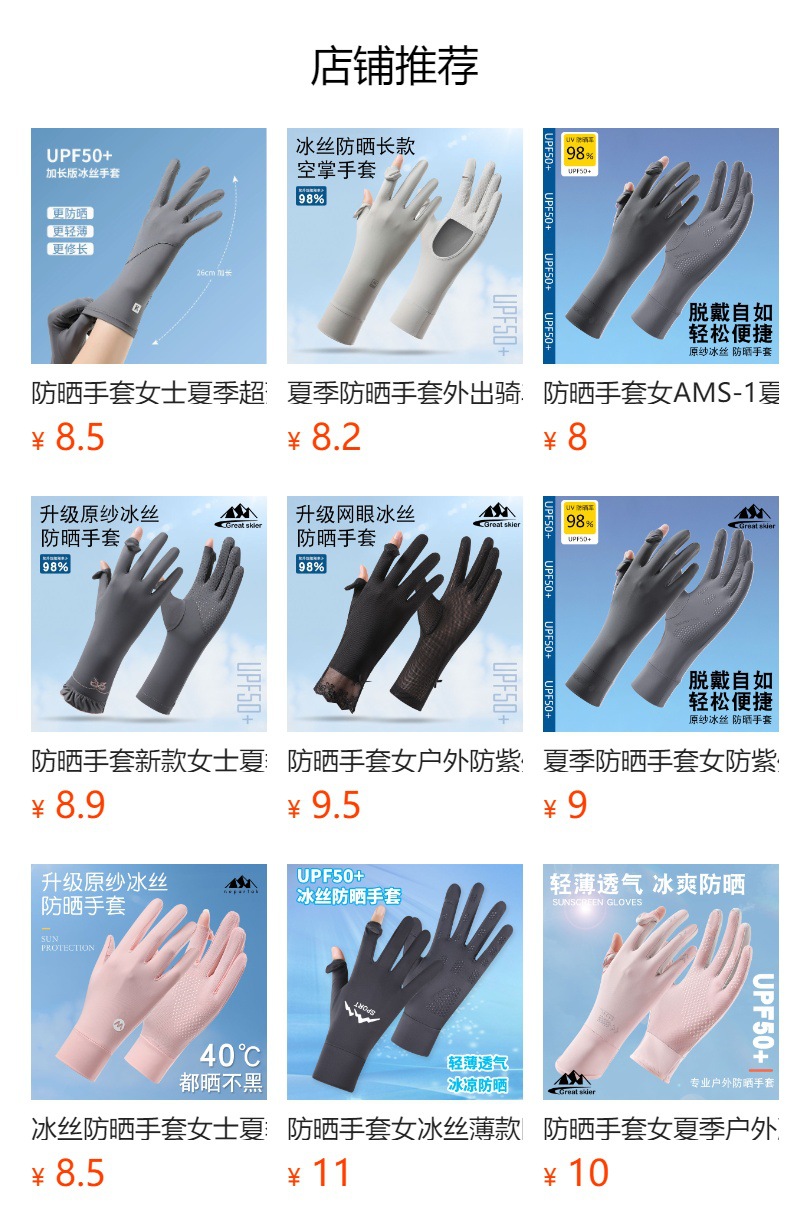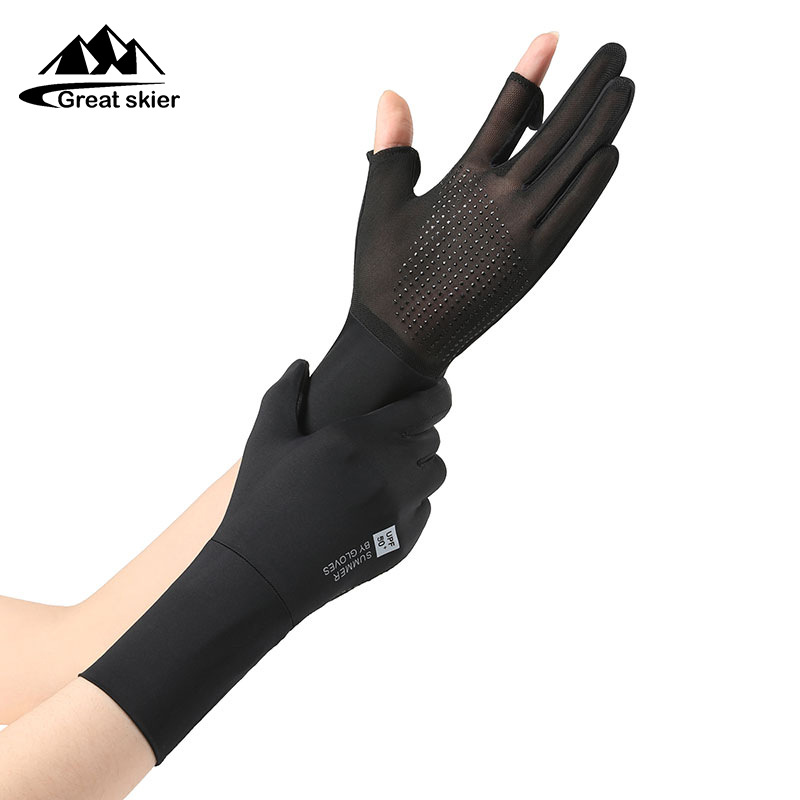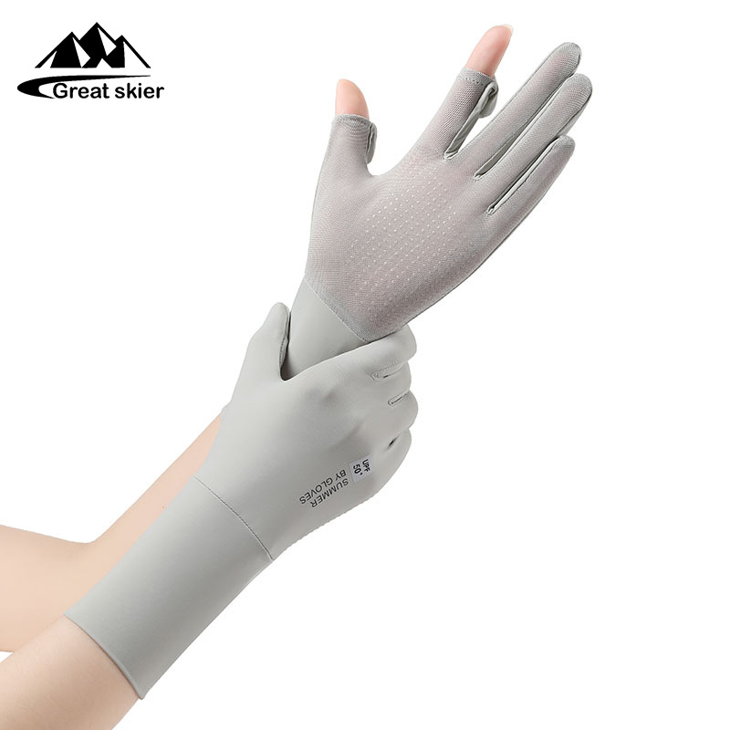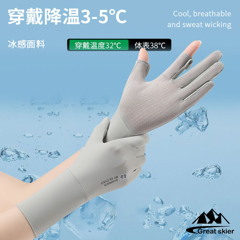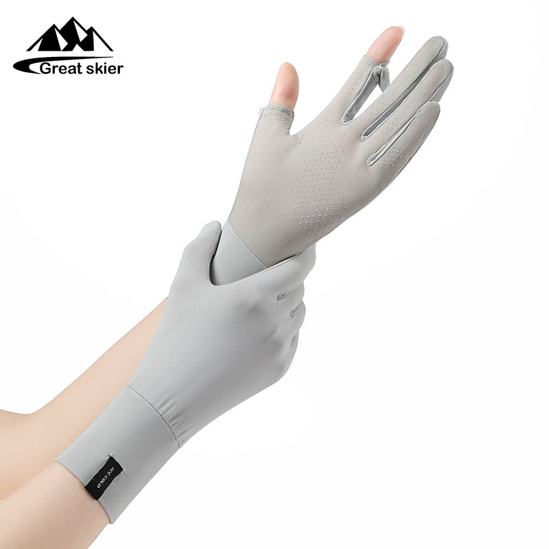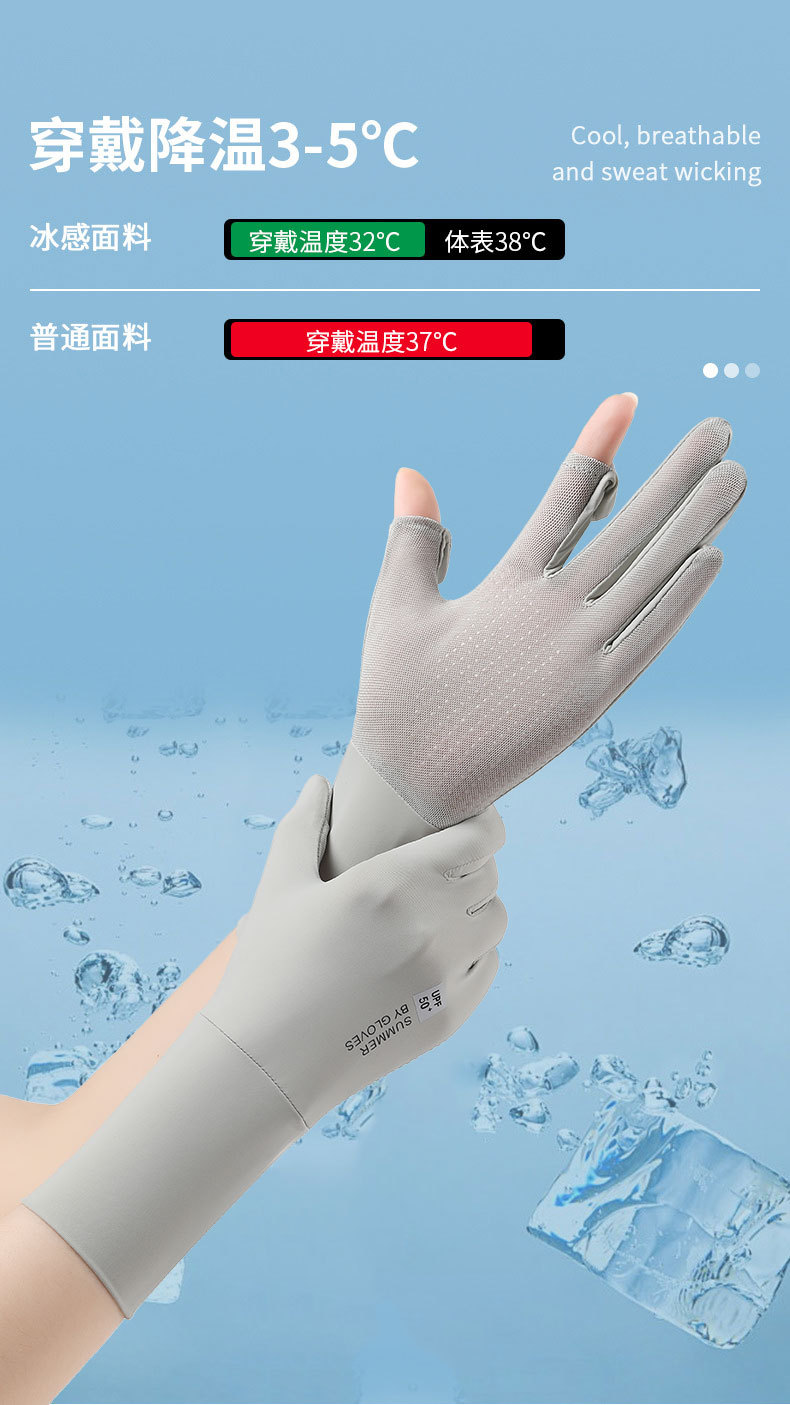 防晒手套户外骑行防滑翻盖触屏防紫外线女士冰丝薄款透气手套批发