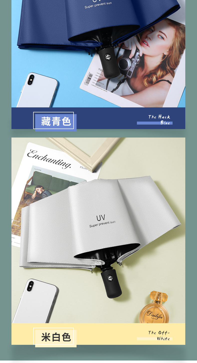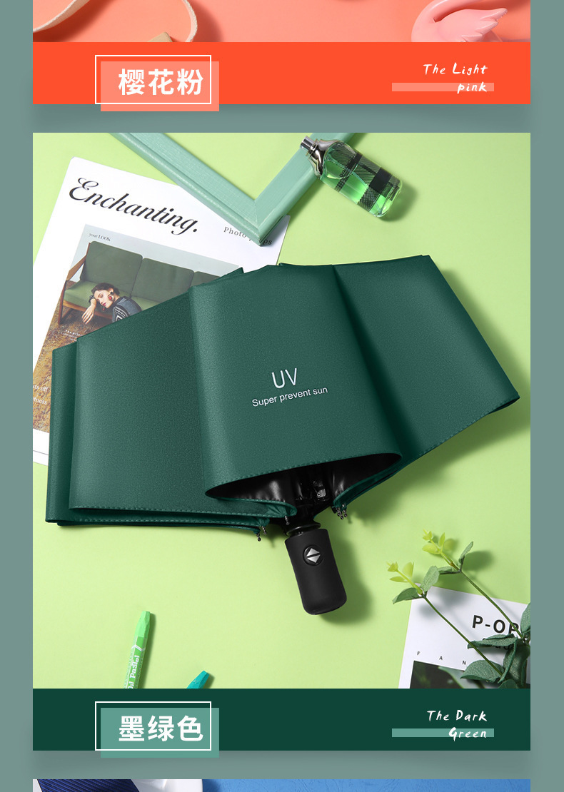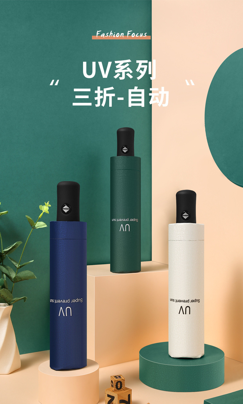 全自动雨伞批货女学生黑胶晴雨伞遮阳伞三折伞企业礼品定制印LOGO