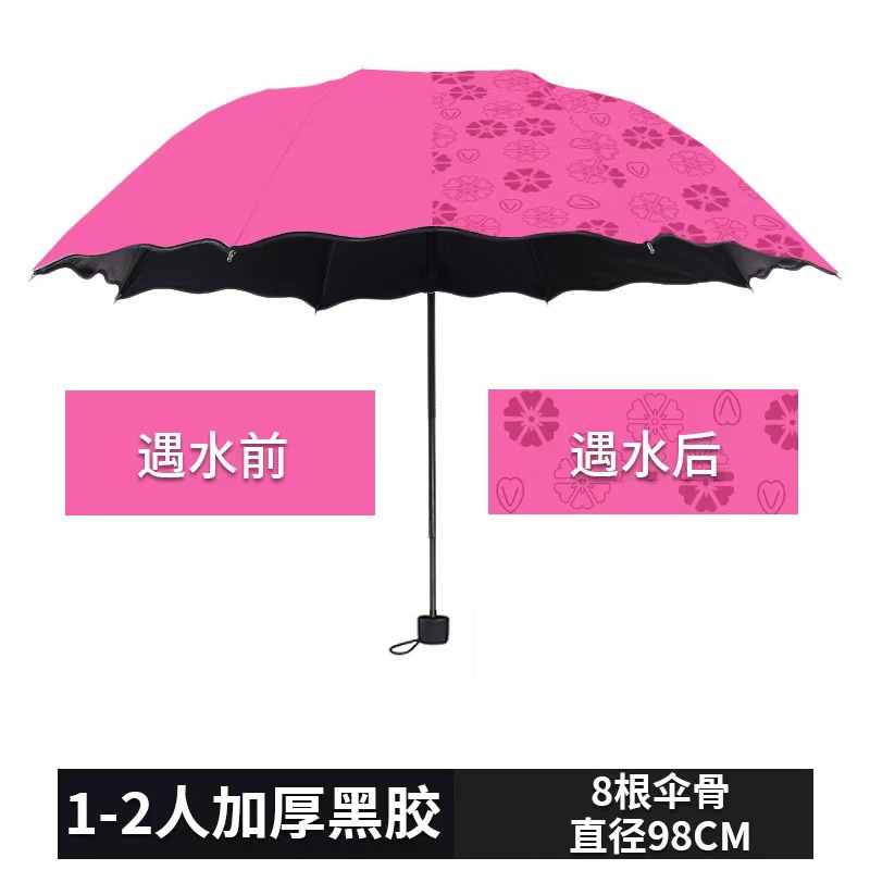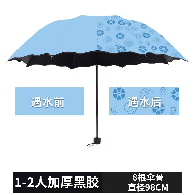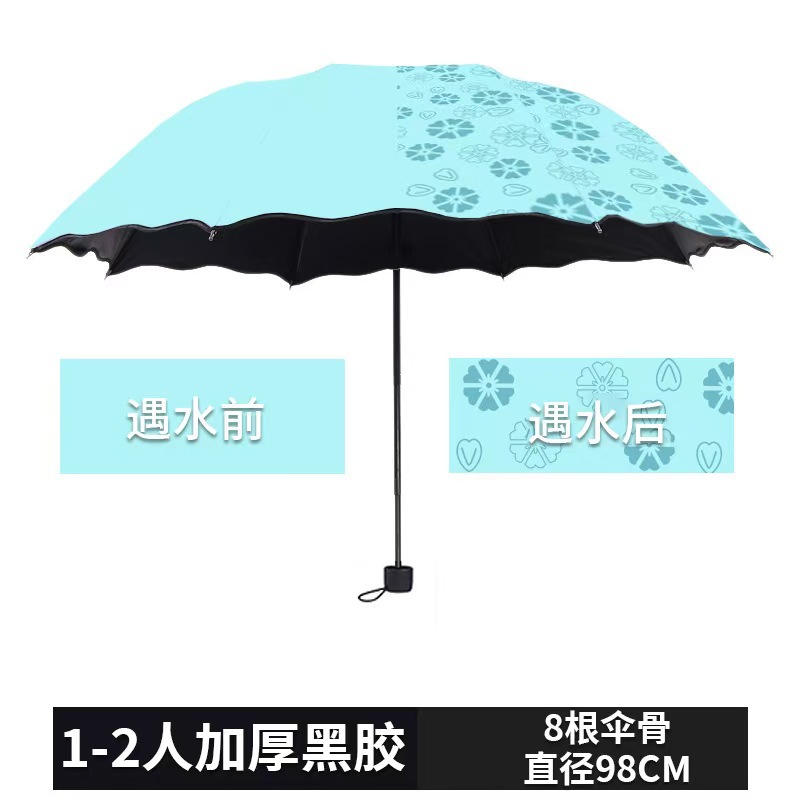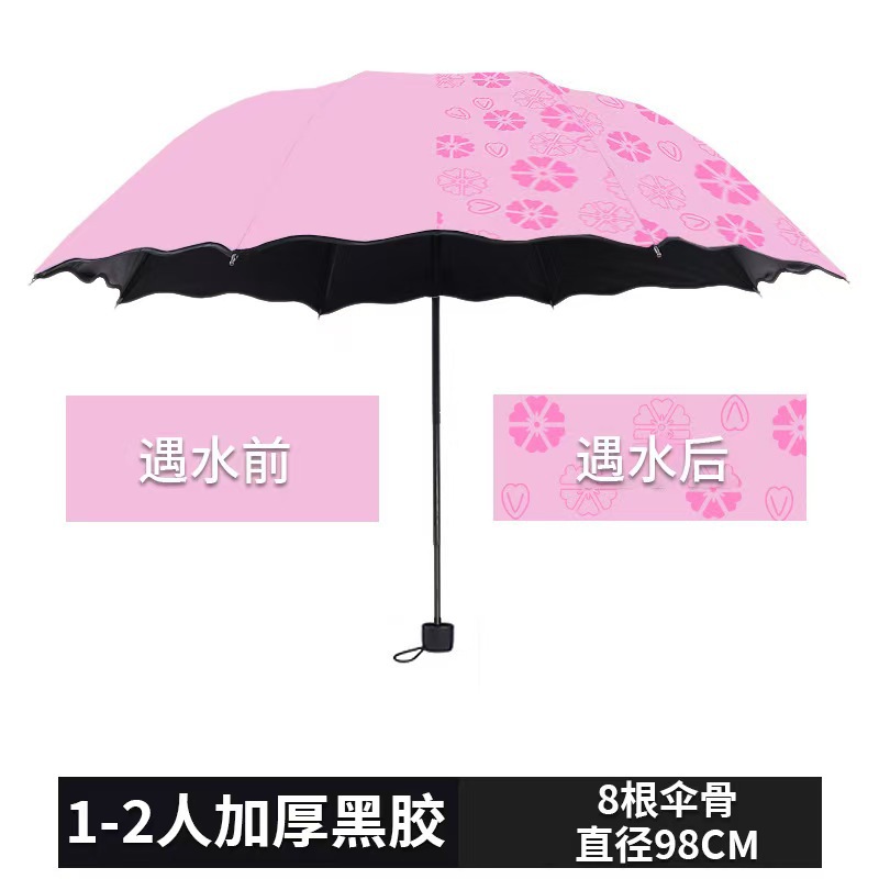 遇水开花伞女士黑胶防晒晴雨两用三折叠太阳伞雨伞印刷logo便携