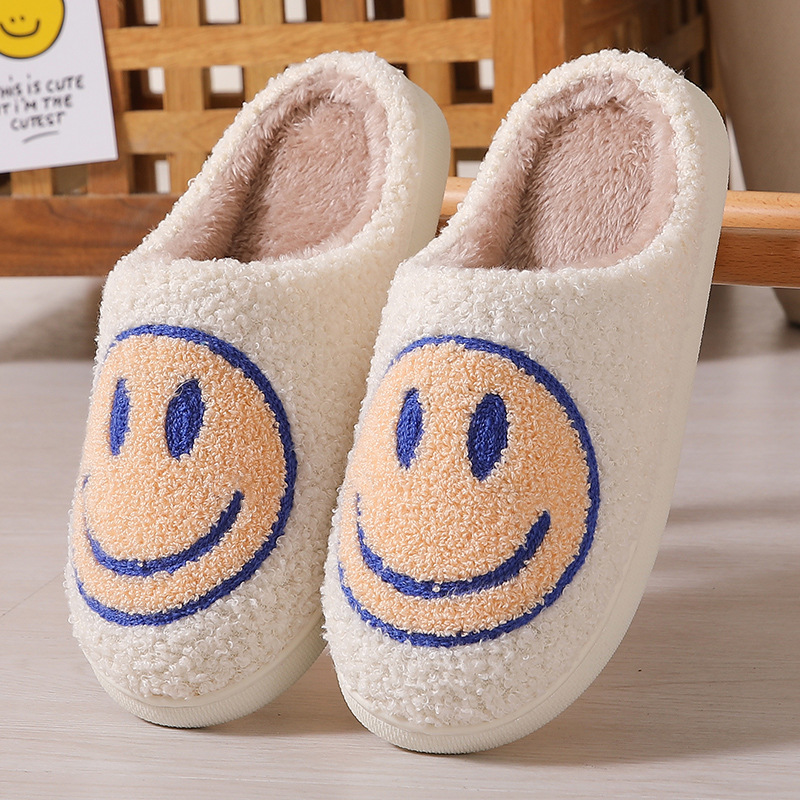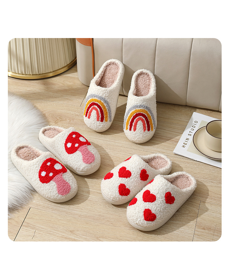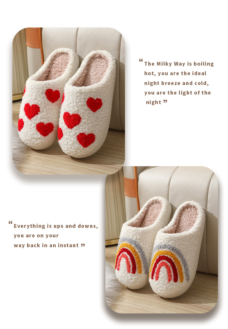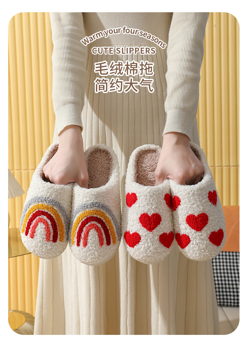 跨境爆款冬季爱心彩虹笑脸棉拖鞋女批发家用室内防滑保暖拖鞋家居