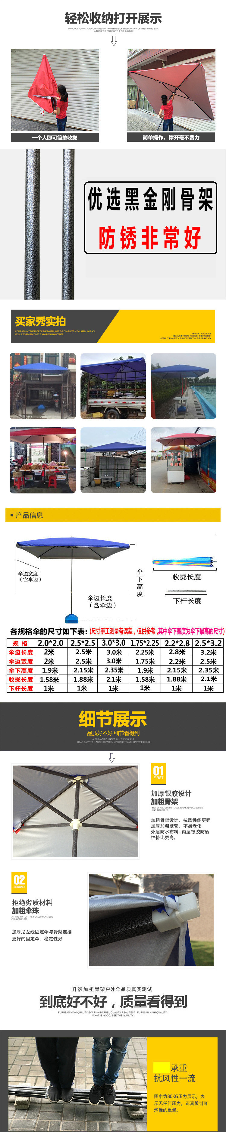 遮阳伞太阳伞大号户外大雨伞大伞摆摊伞四方长方形地摊伞庭院3米