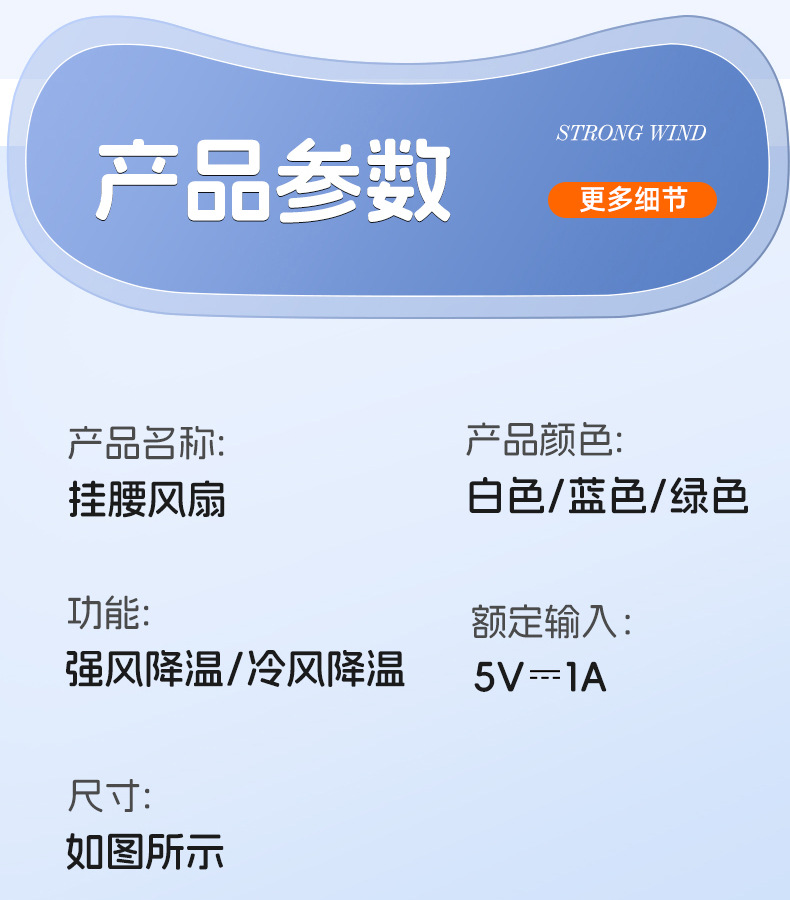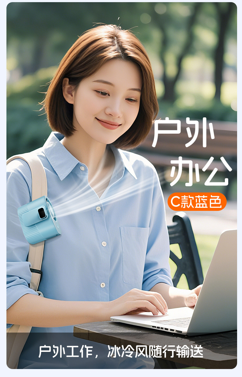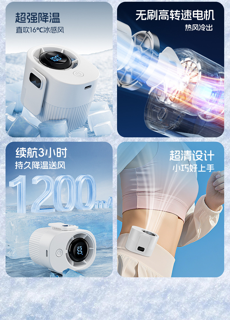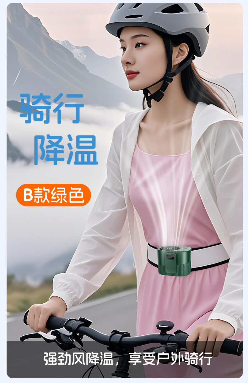 新款挂腰风扇高温作业户外工地便携迷你充电扇学生背带USB小风扇