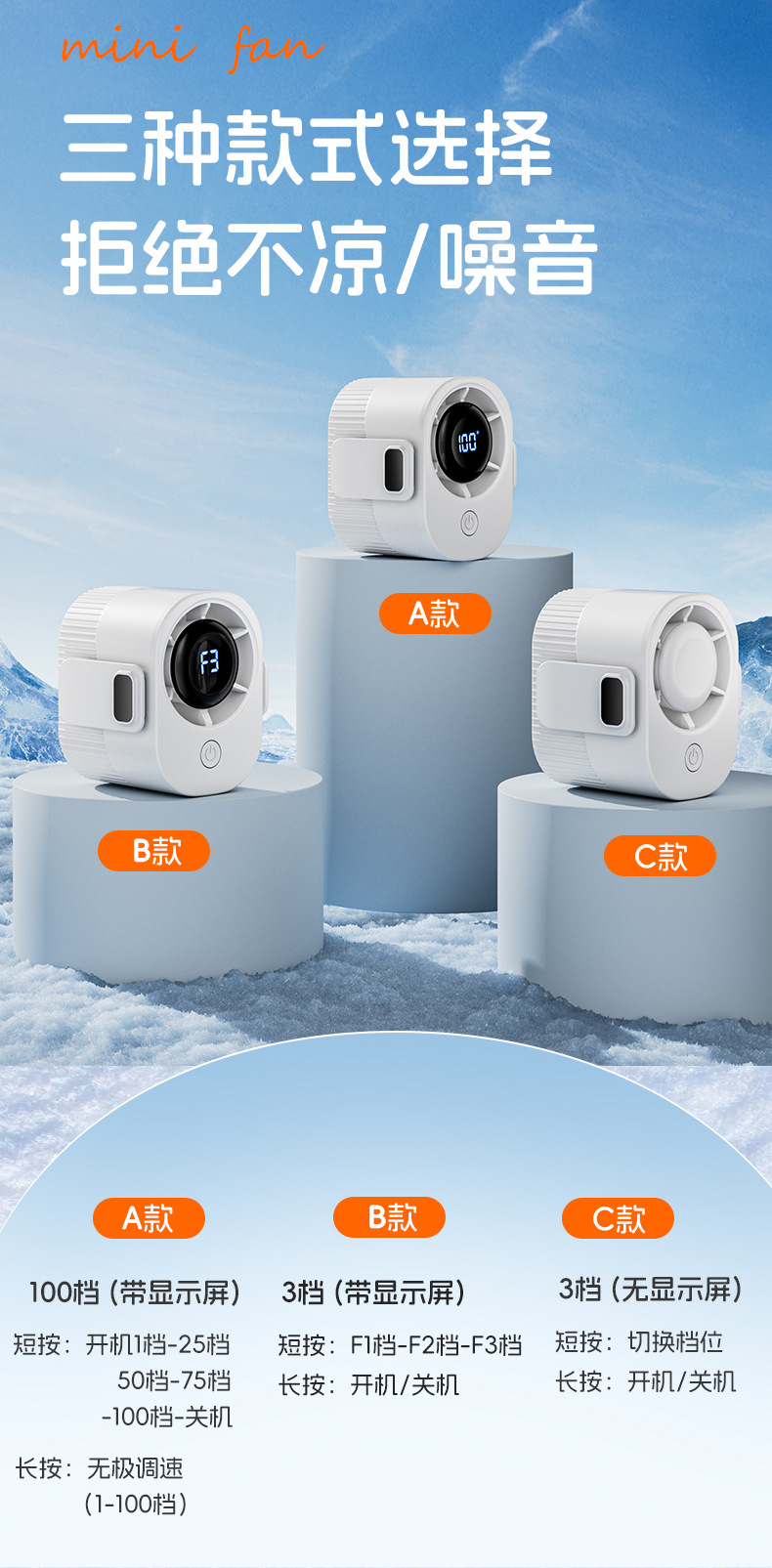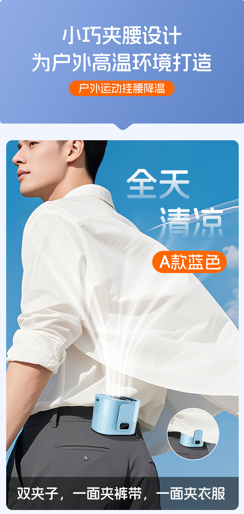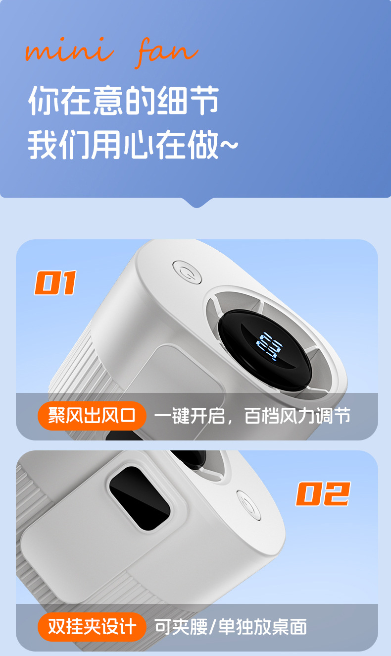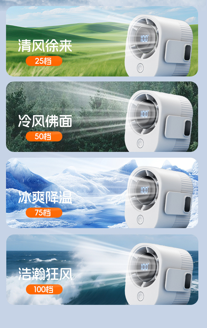 新款挂腰风扇高温作业户外工地便携迷你充电扇学生背带USB小风扇