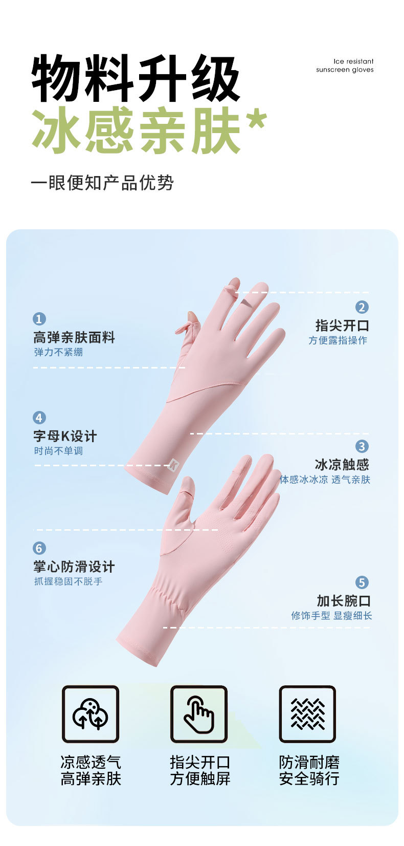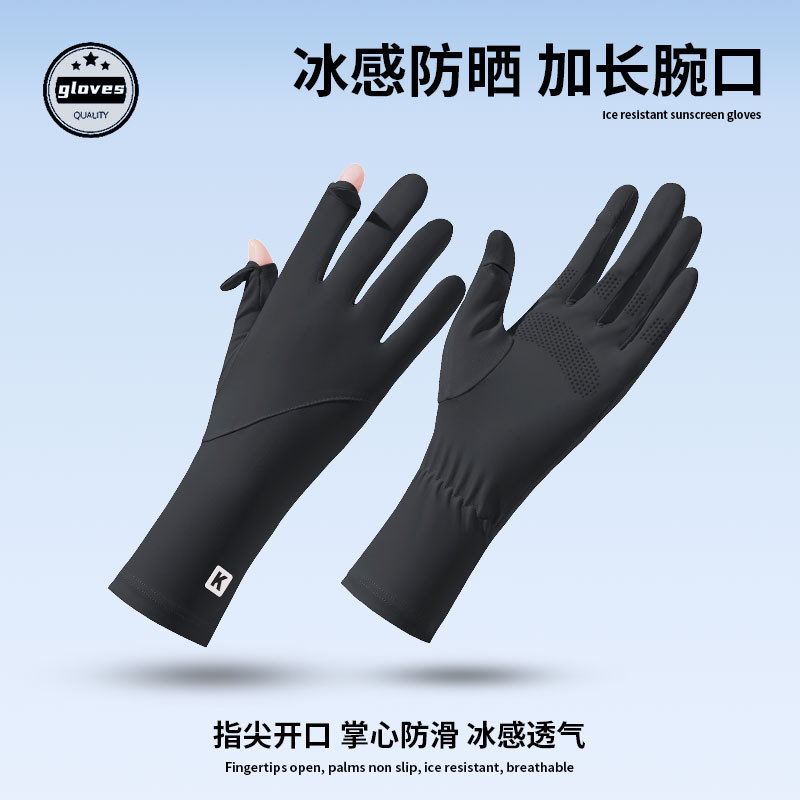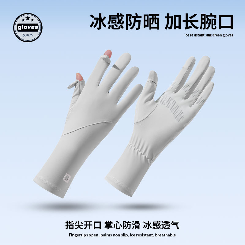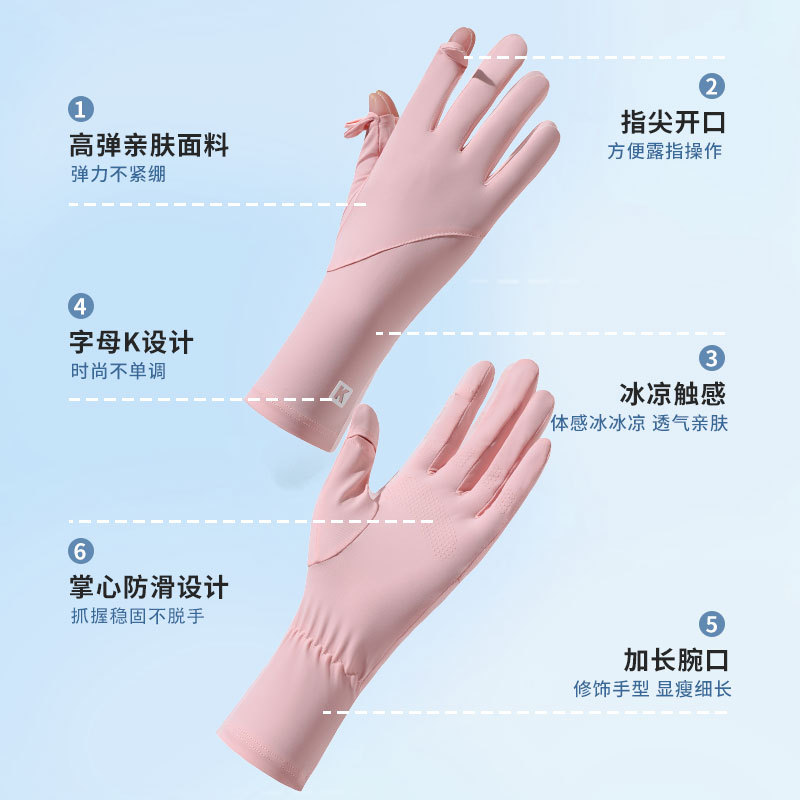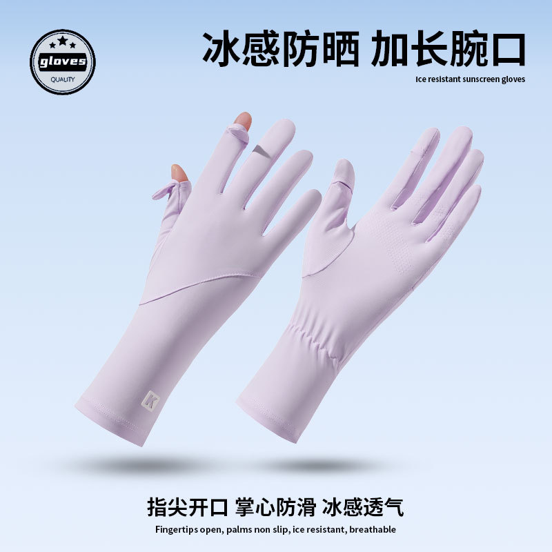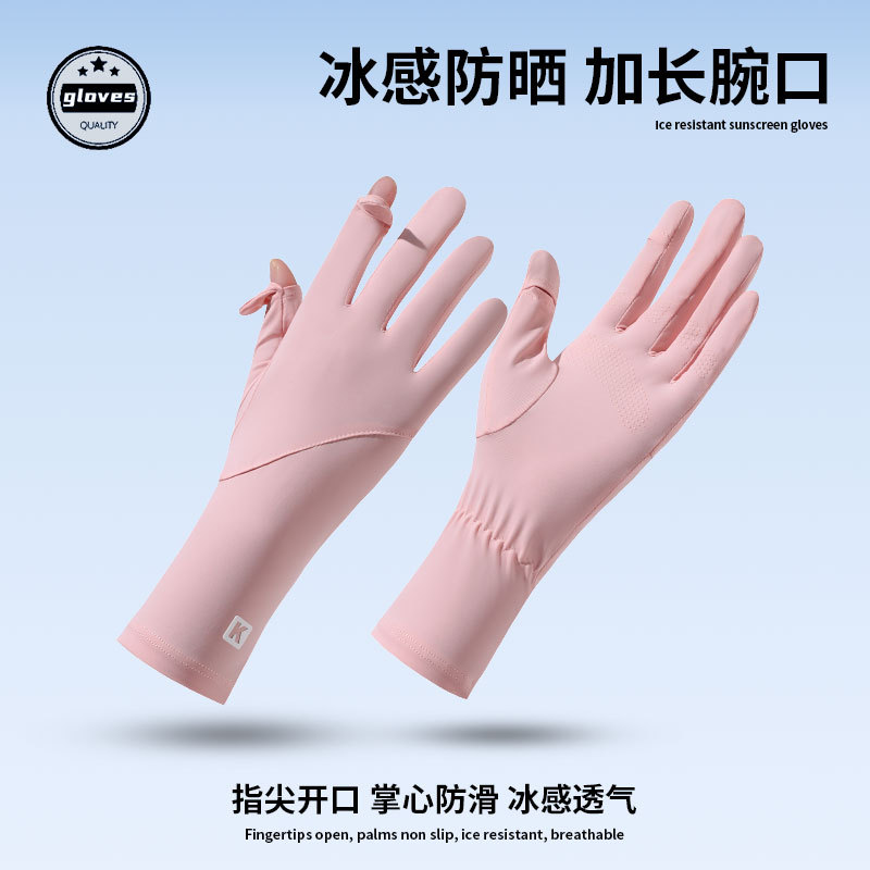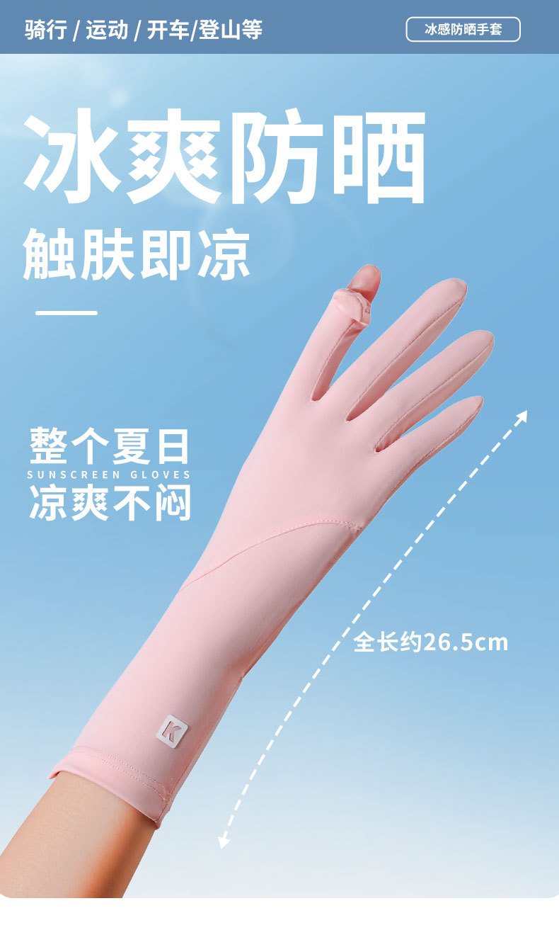 女士夏季防晒手套长款速干冰丝防晒防紫外线开车骑行漏指触屏手套