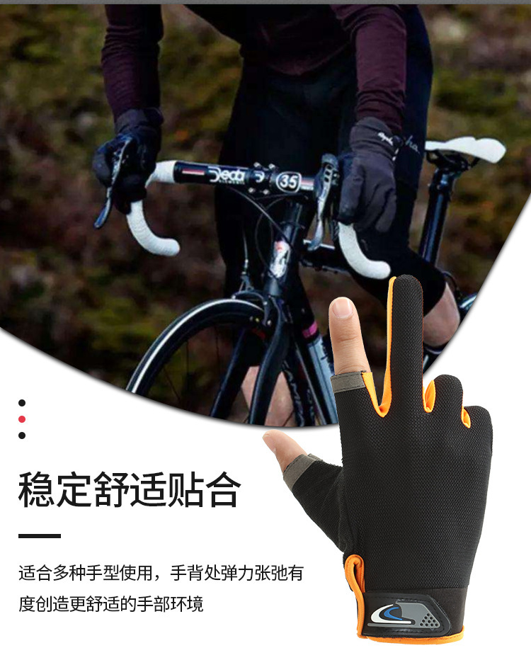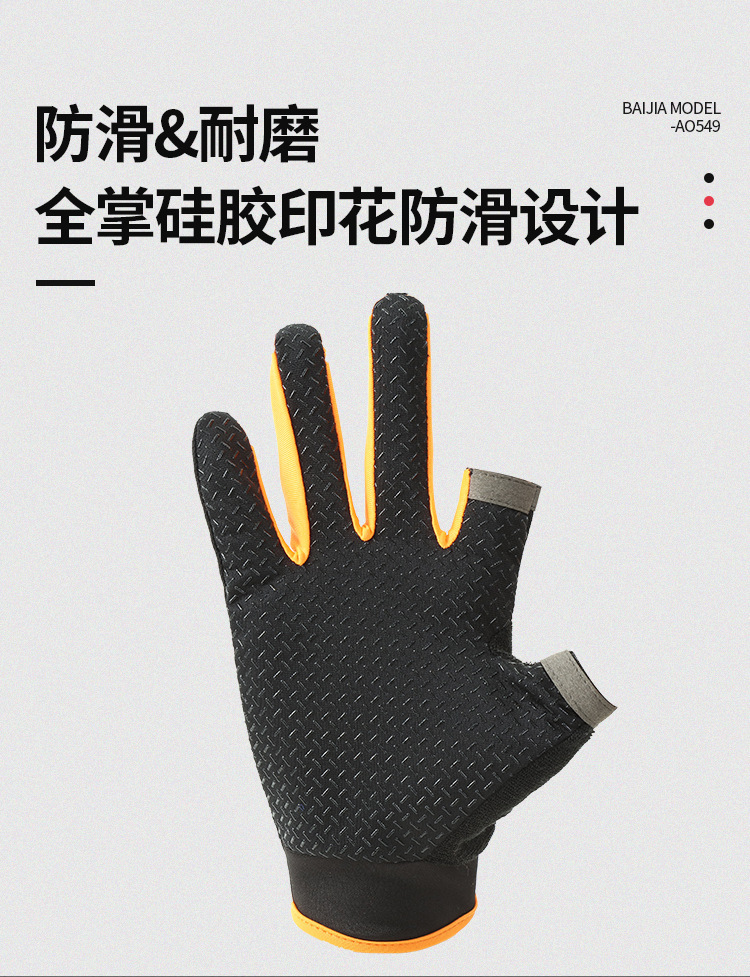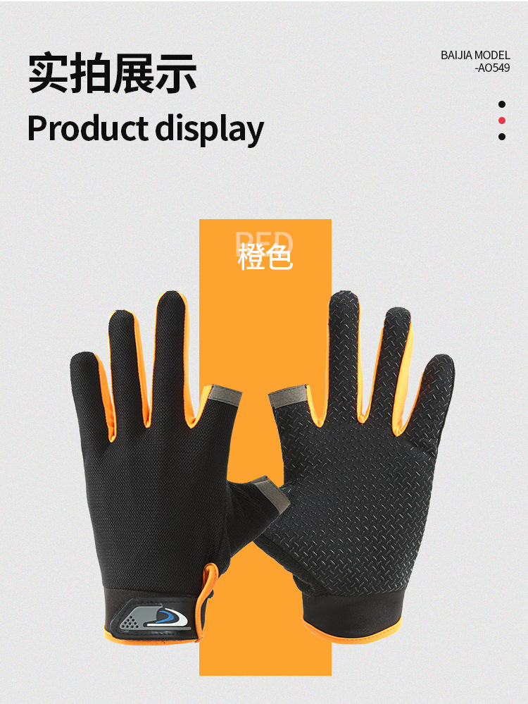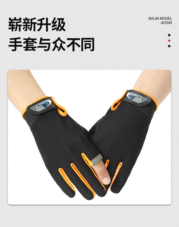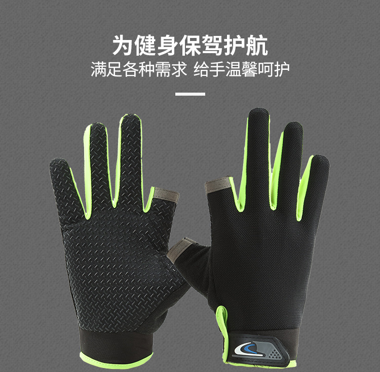 钓鱼手套户外防晒防滑飞嗑路亚透气露二指触屏运动自行车骑行手套