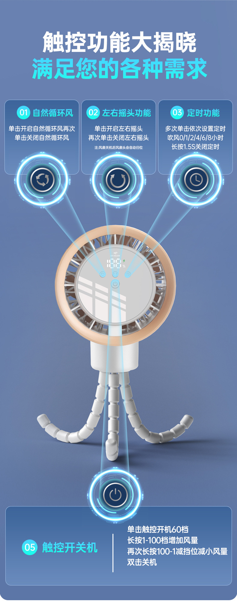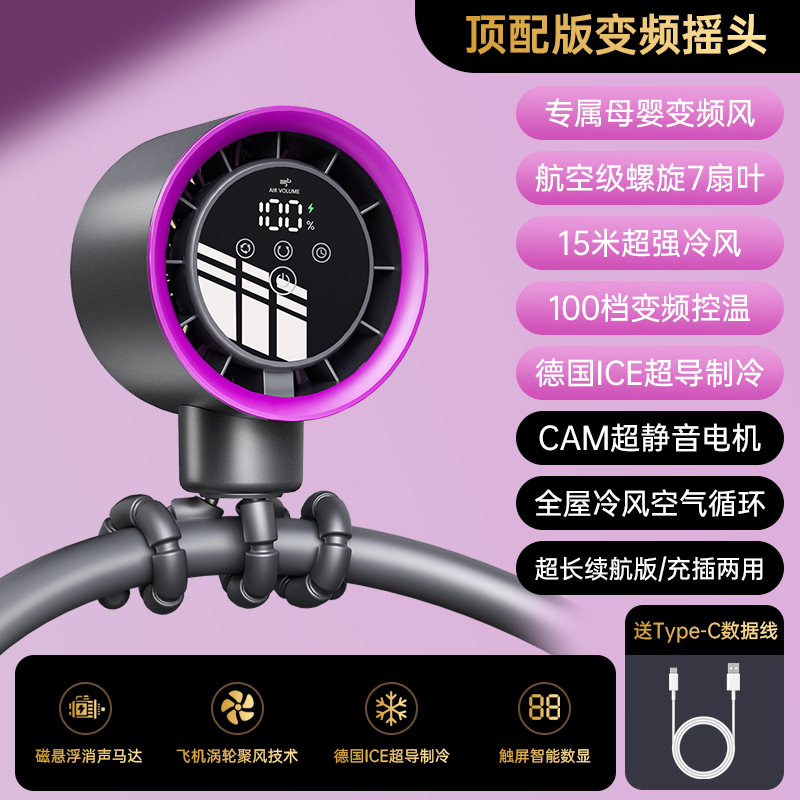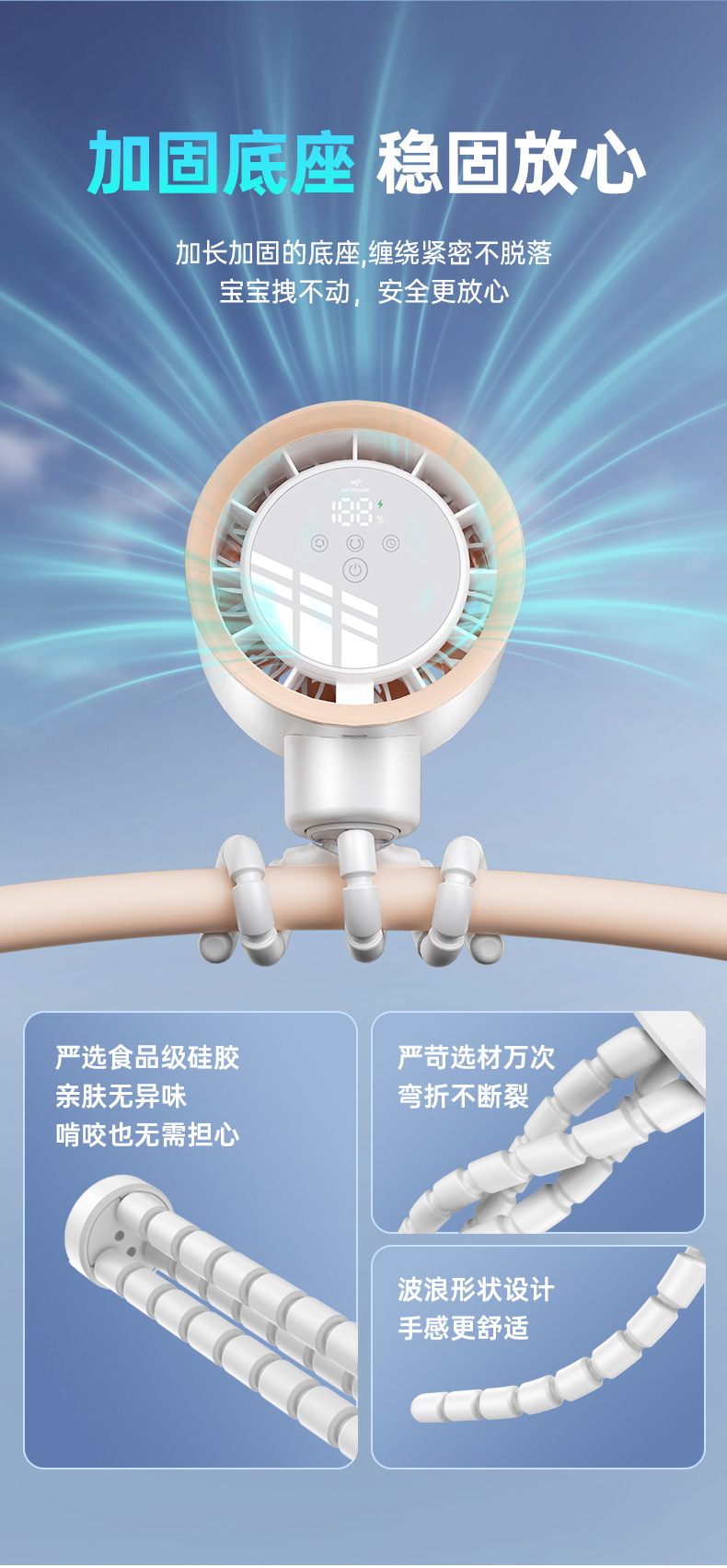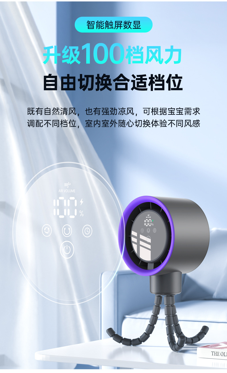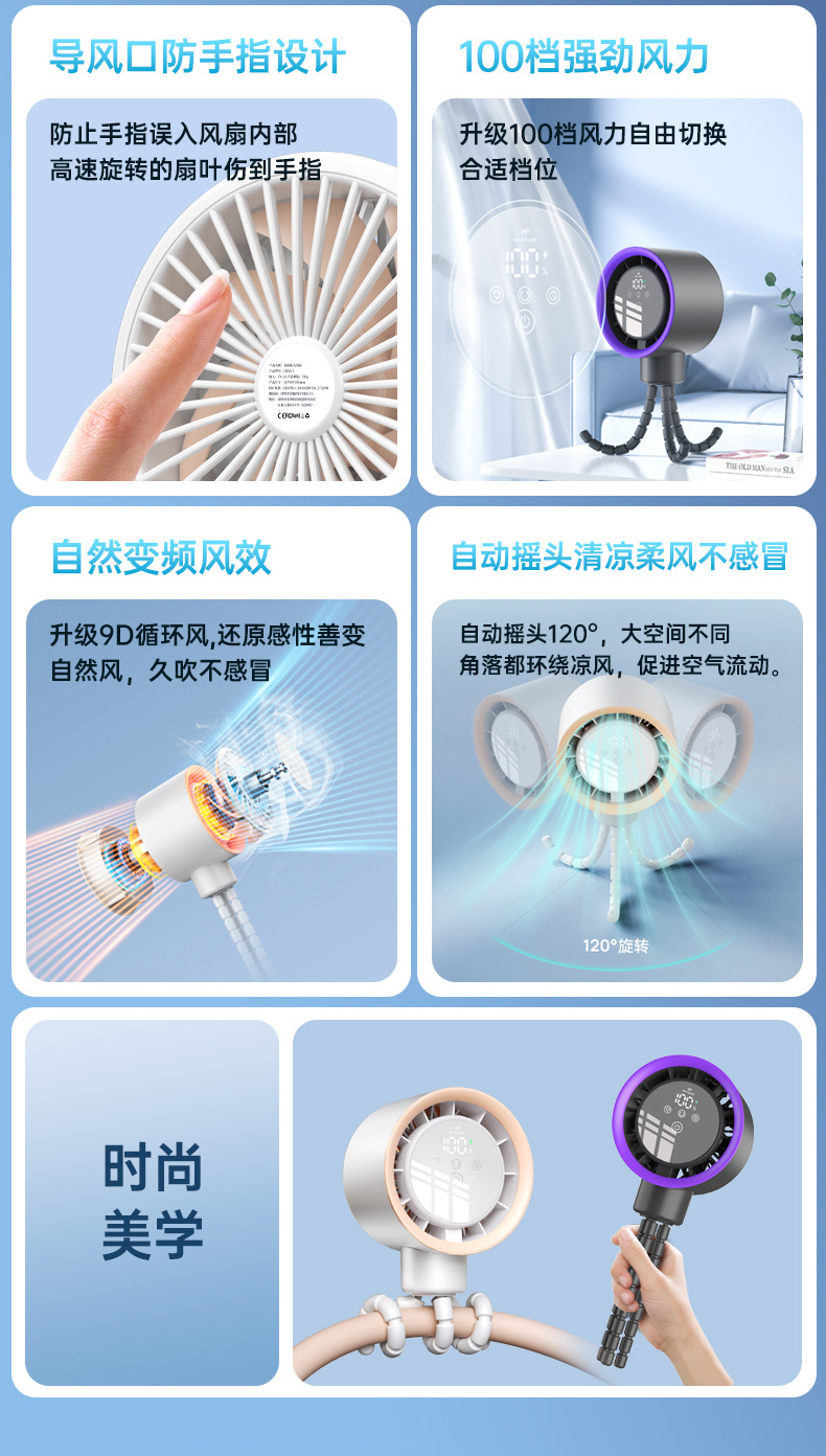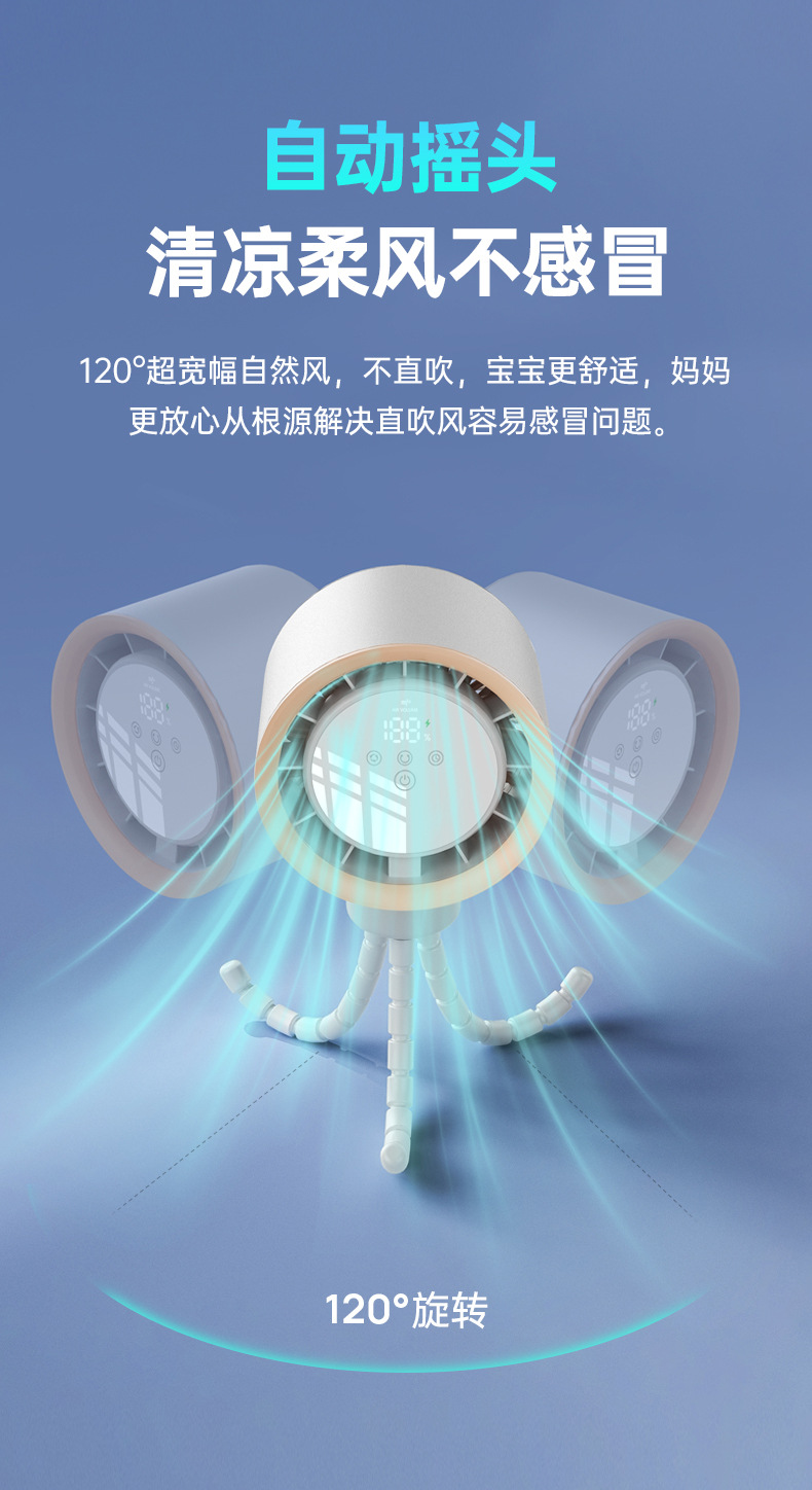 2026跨境八爪鱼风扇自动摇头100档大容量床头宿舍桌面婴儿车风扇