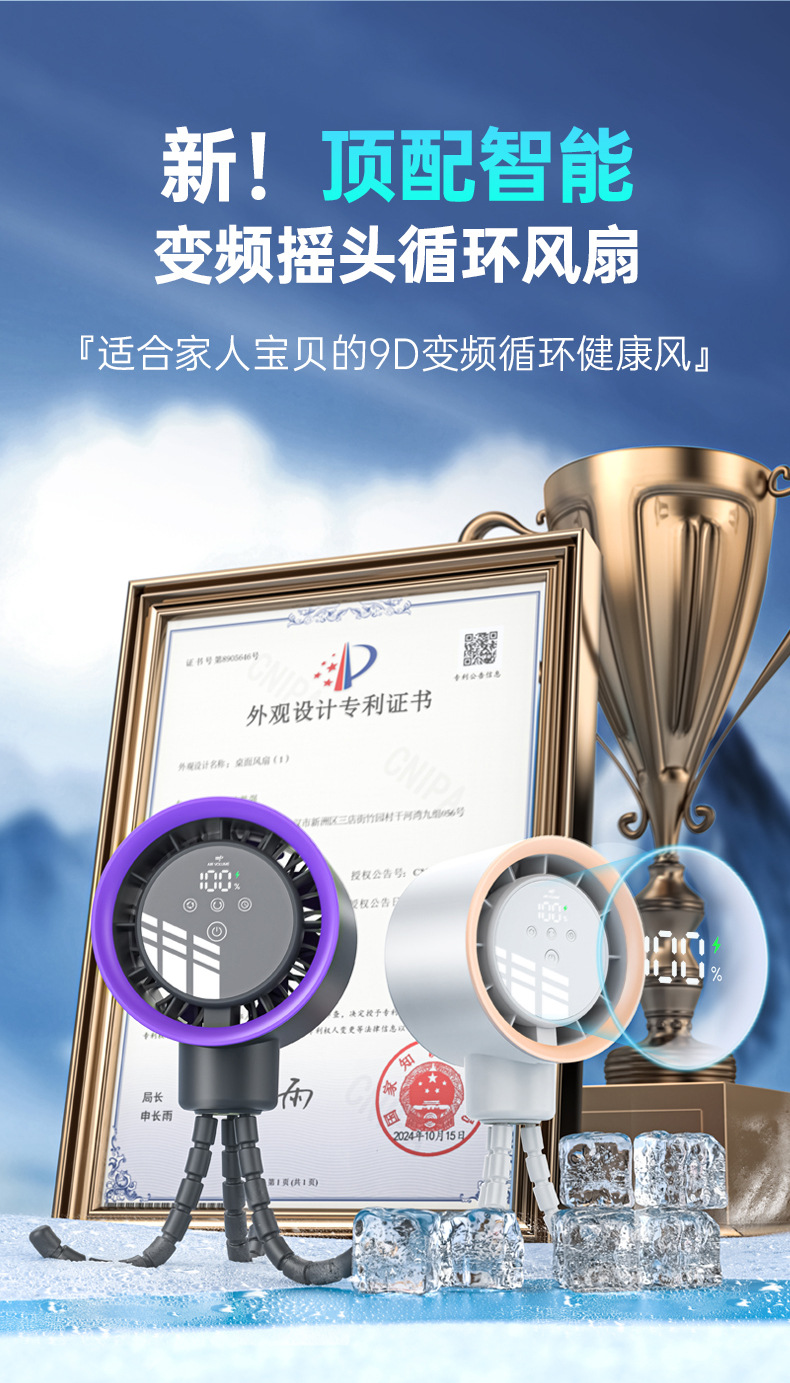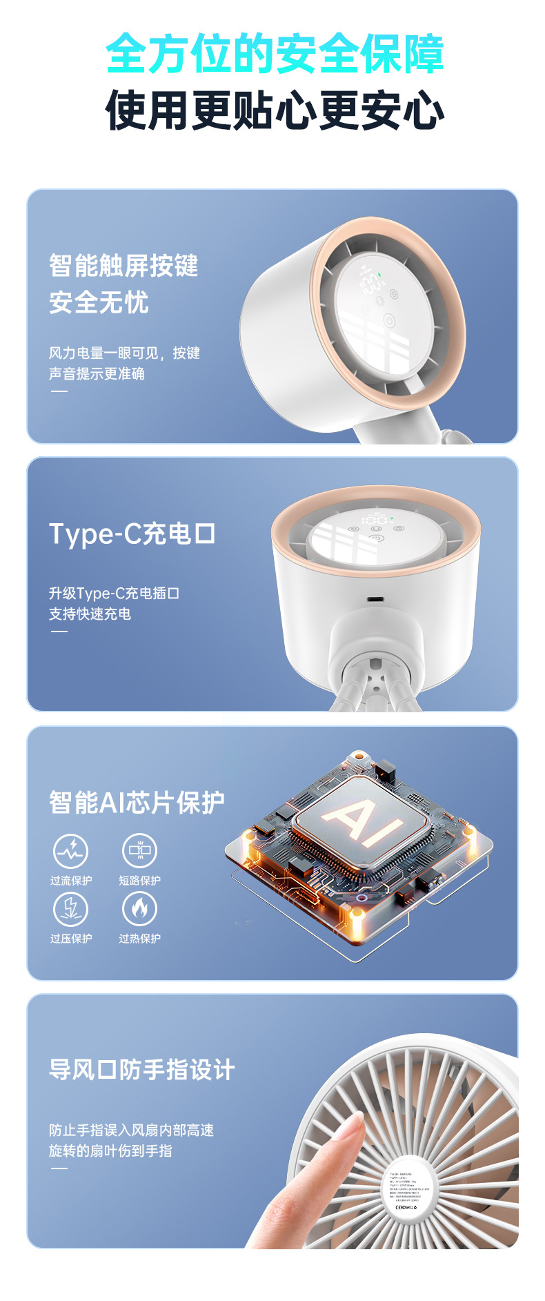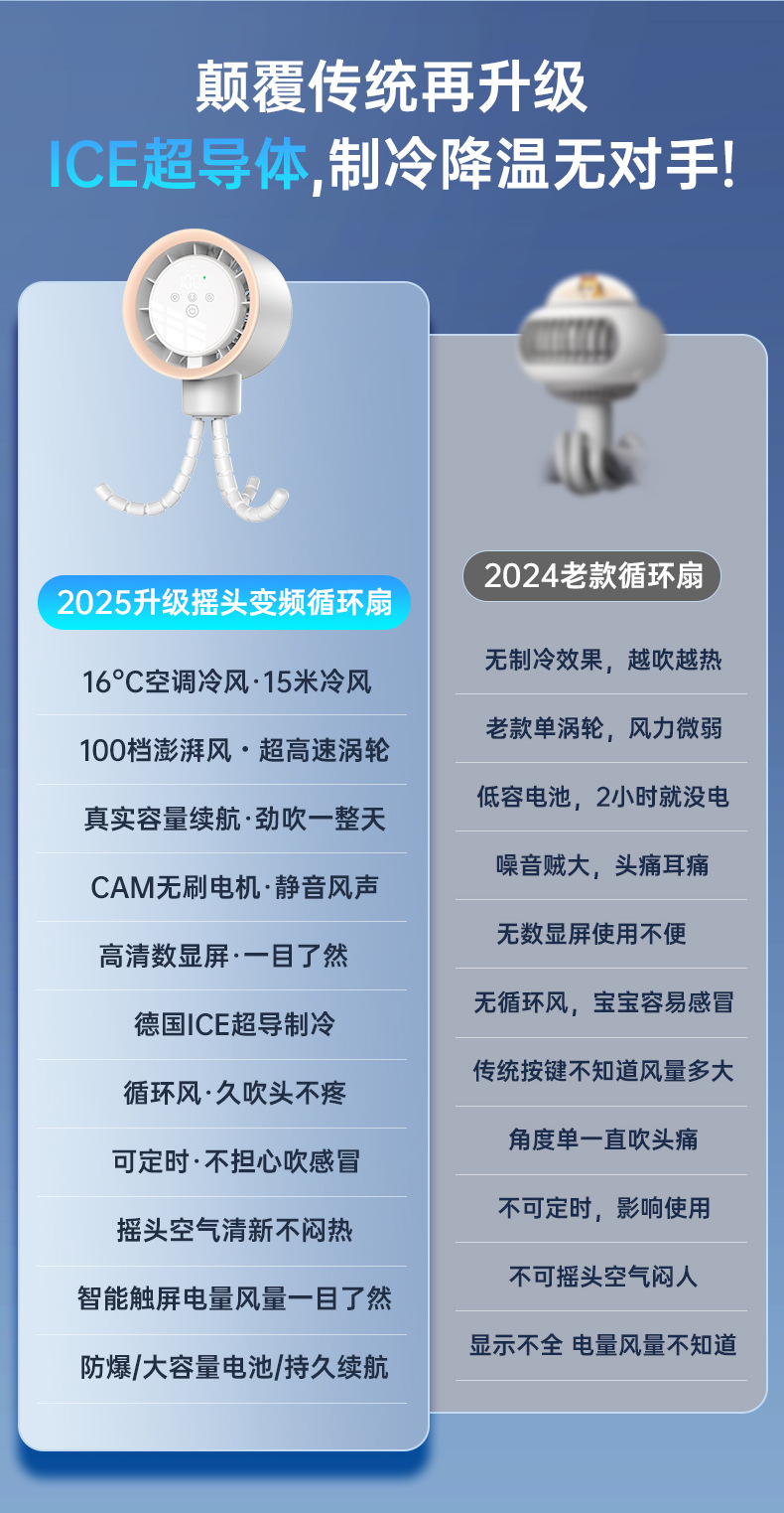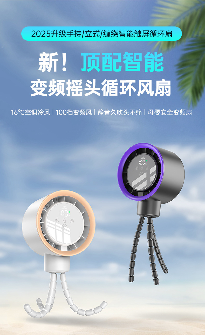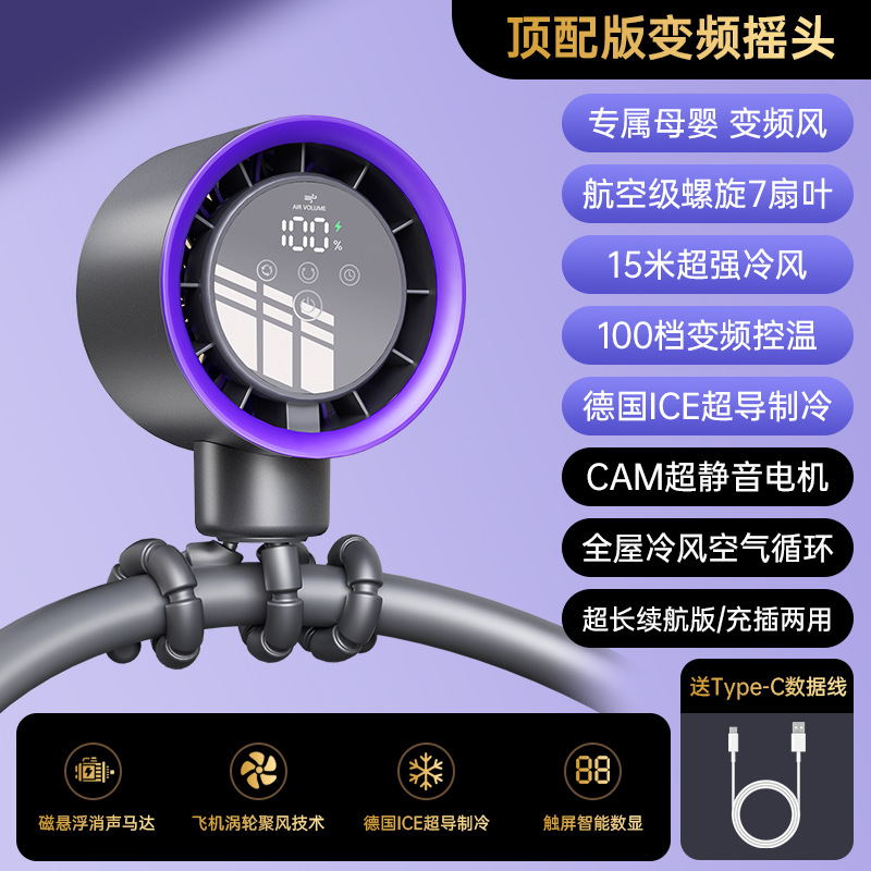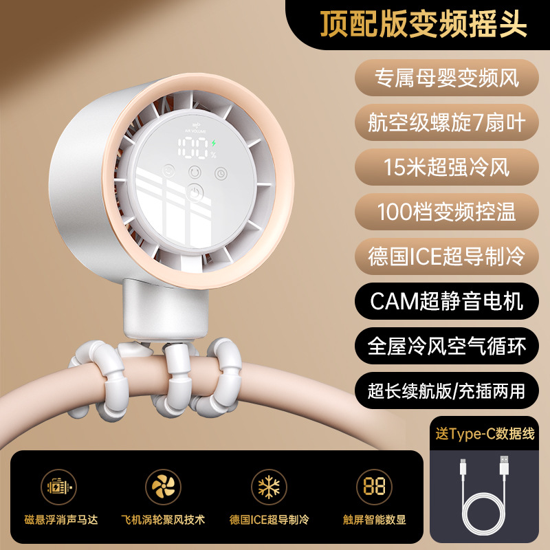 2026跨境八爪鱼风扇自动摇头100档大容量床头宿舍桌面婴儿车风扇