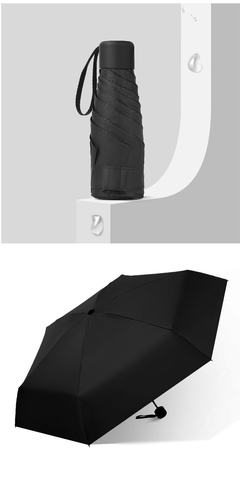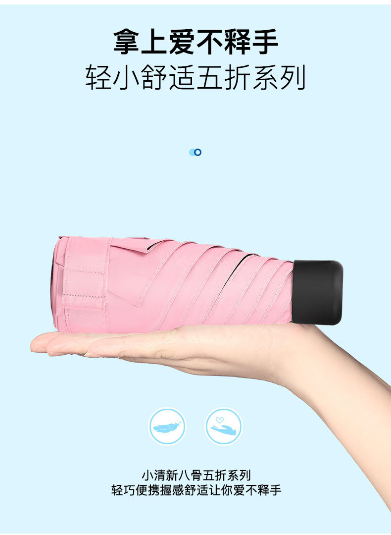 创意迷你五折胶囊伞清新黑胶防晒遮阳太阳伞袖珍超亲小巧迷你伞