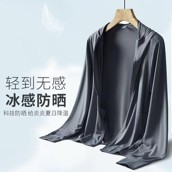 跨境防晒衣女纯色夏季冰感速干防紫外线防晒衣连帽户外情侣防晒服