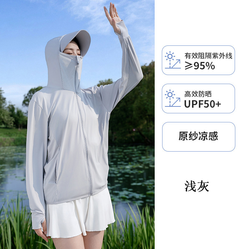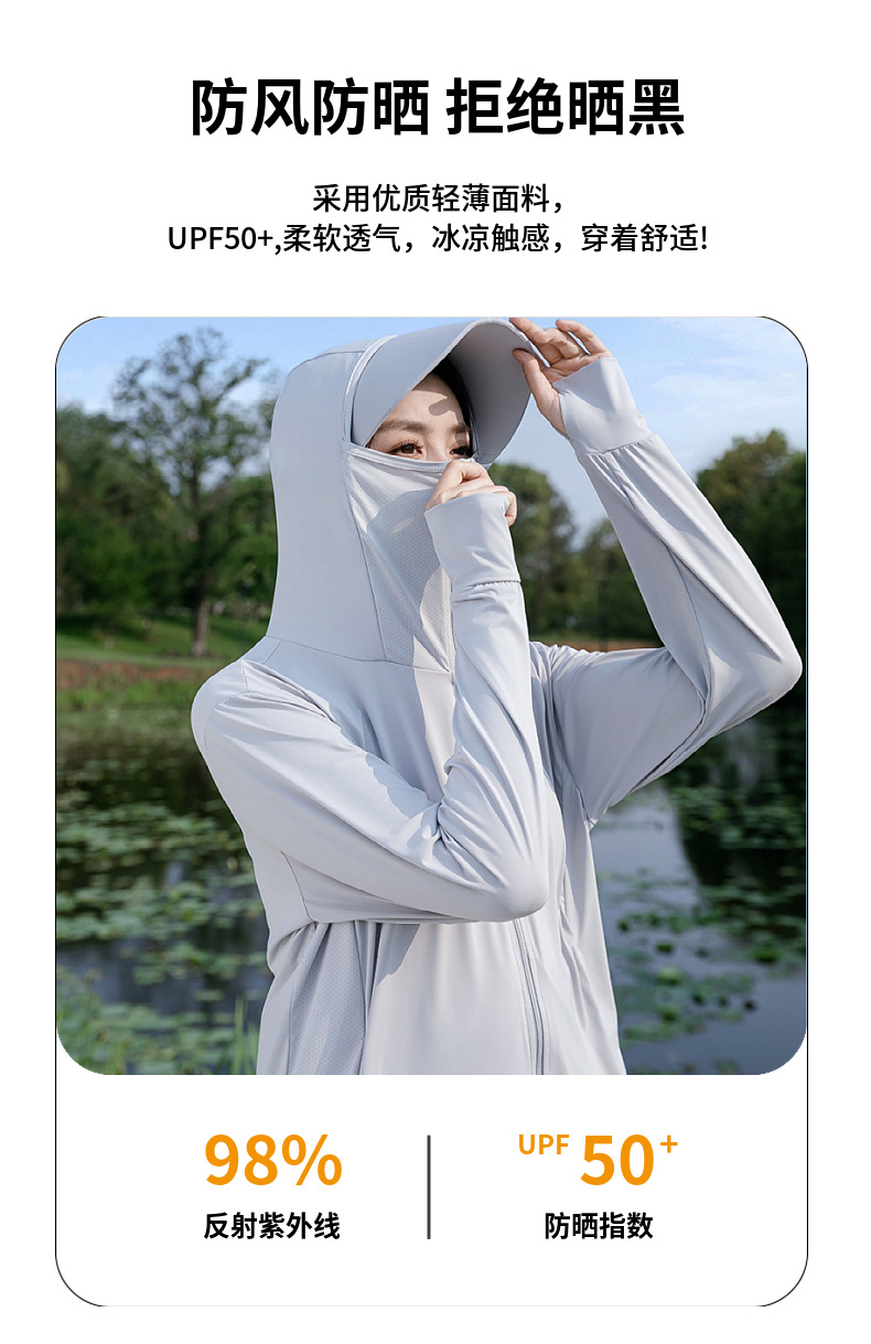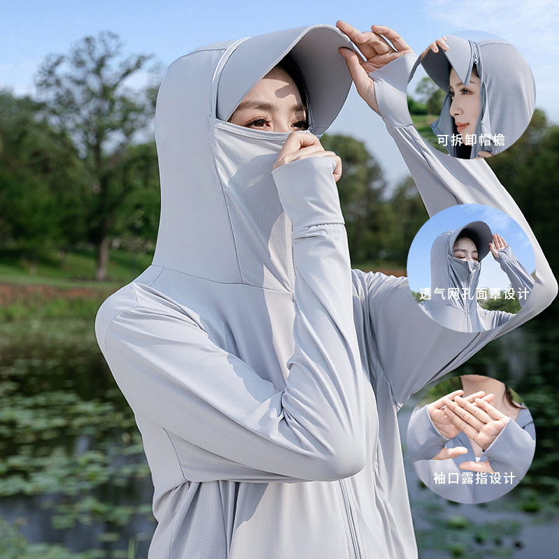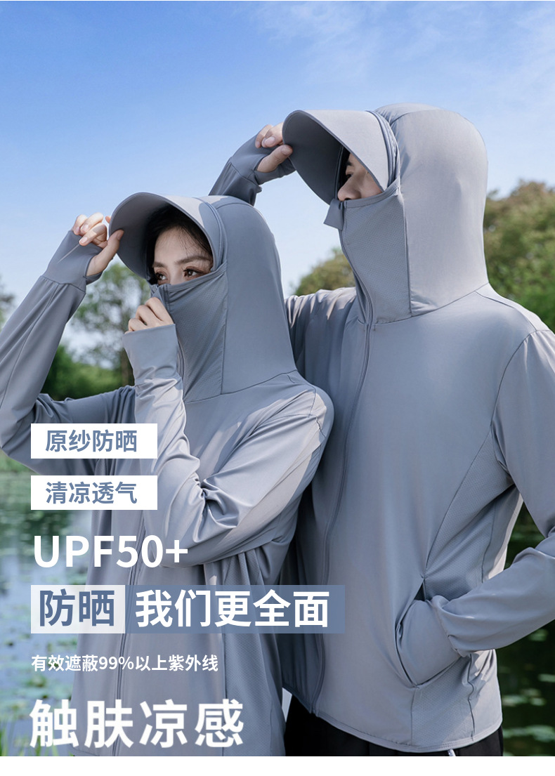 原纱防晒衣外套女UPF50+冰丝防晒服男夏季薄款防紫外线可拆帽檐