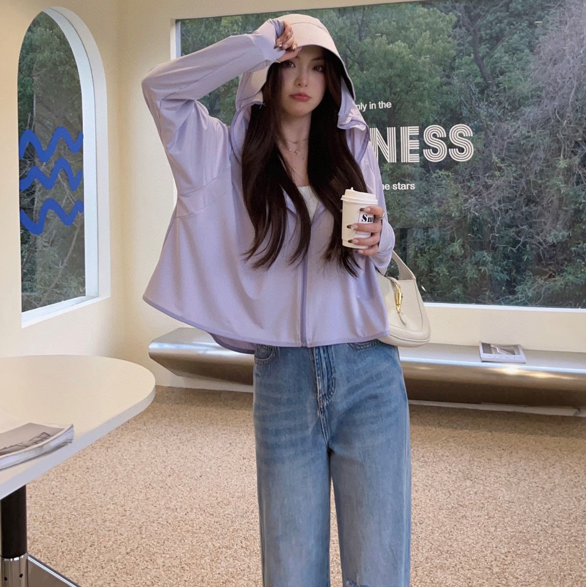 户外周全防护!果冻冰感时尚防晒衣帽檐隔绝紫外线冰丝降温透气