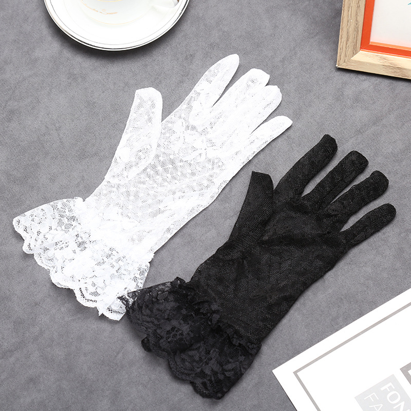 跨境 女士夏季防晒手套 网纱蝴蝶结黑色蕾丝礼仪手套 婚纱手套