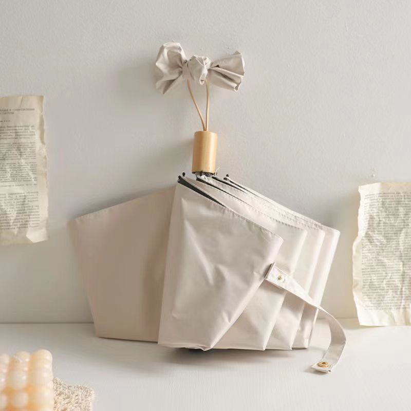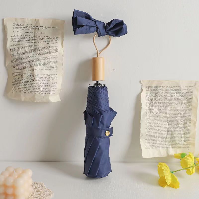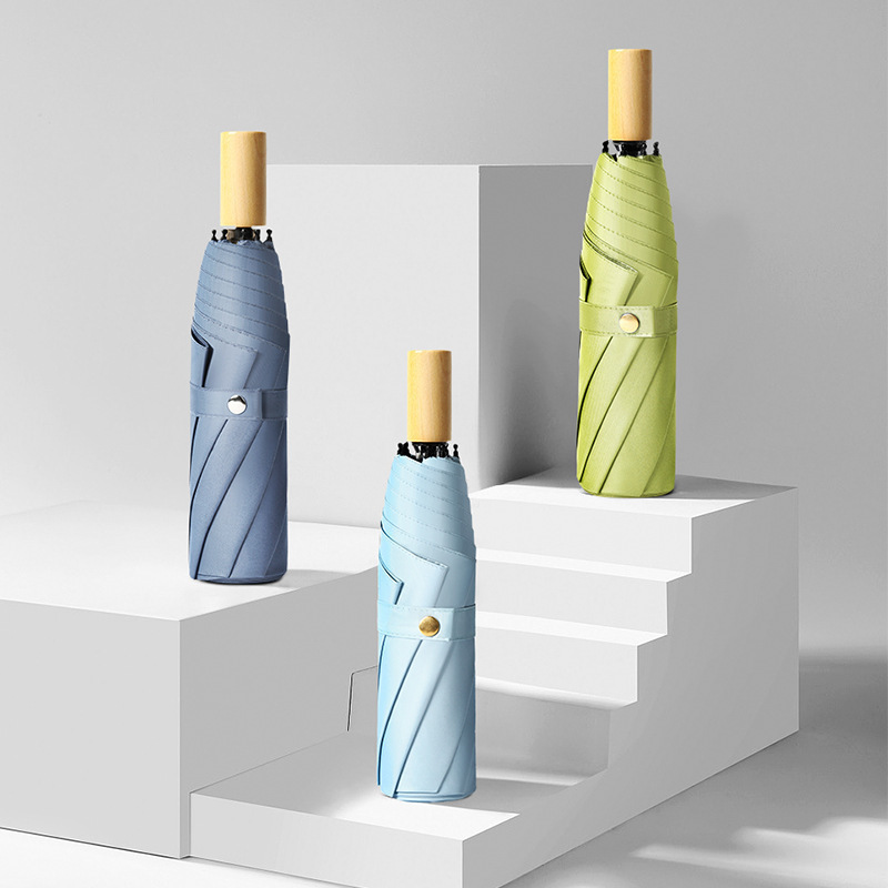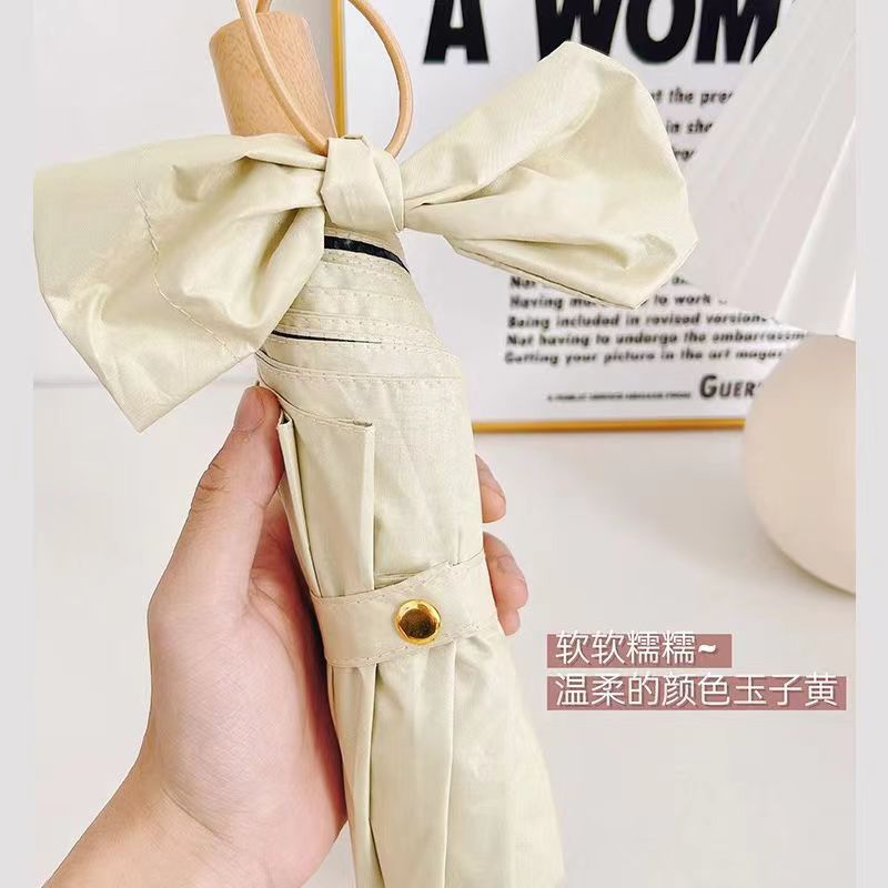 三折叠黑胶实木手柄学生女晴雨伞小清新时尚太阳伞简约高颜值雨伞