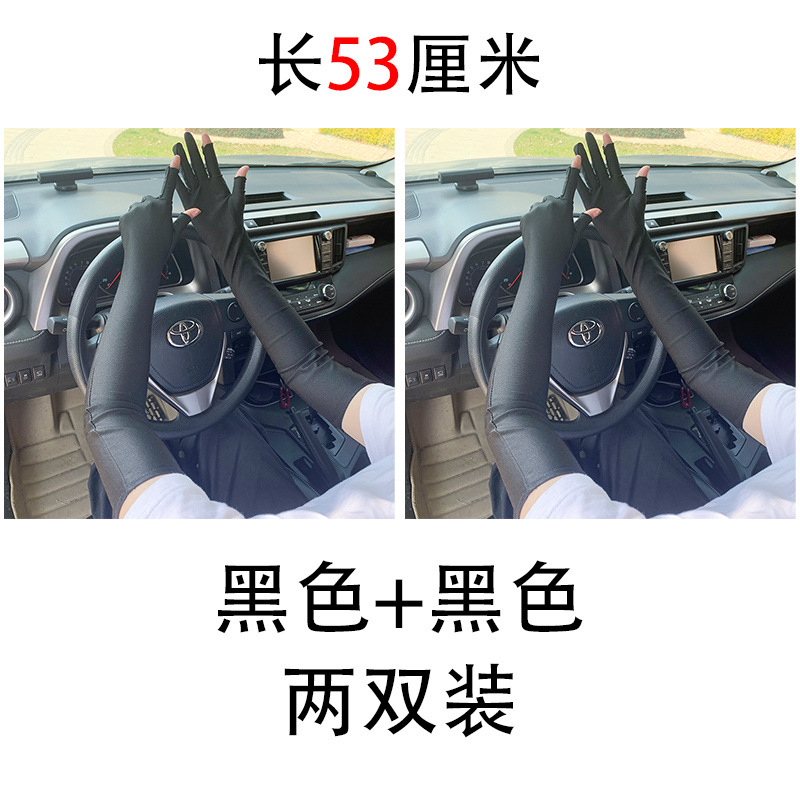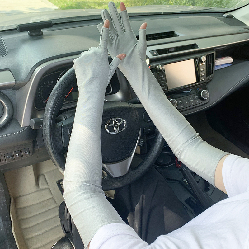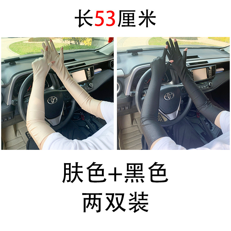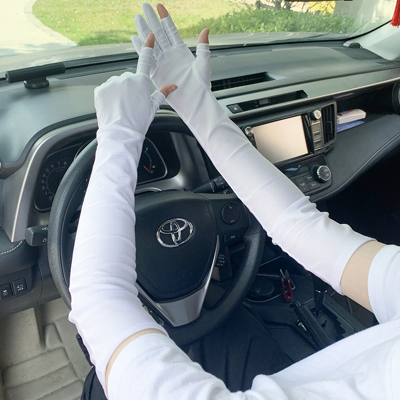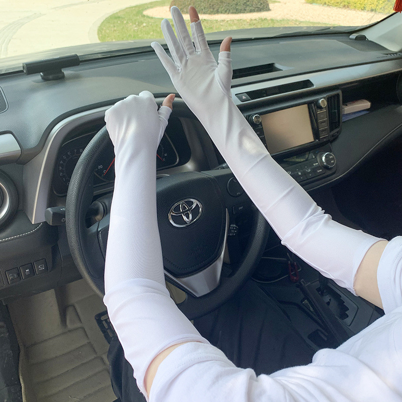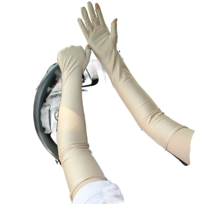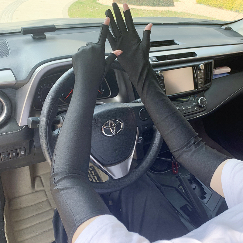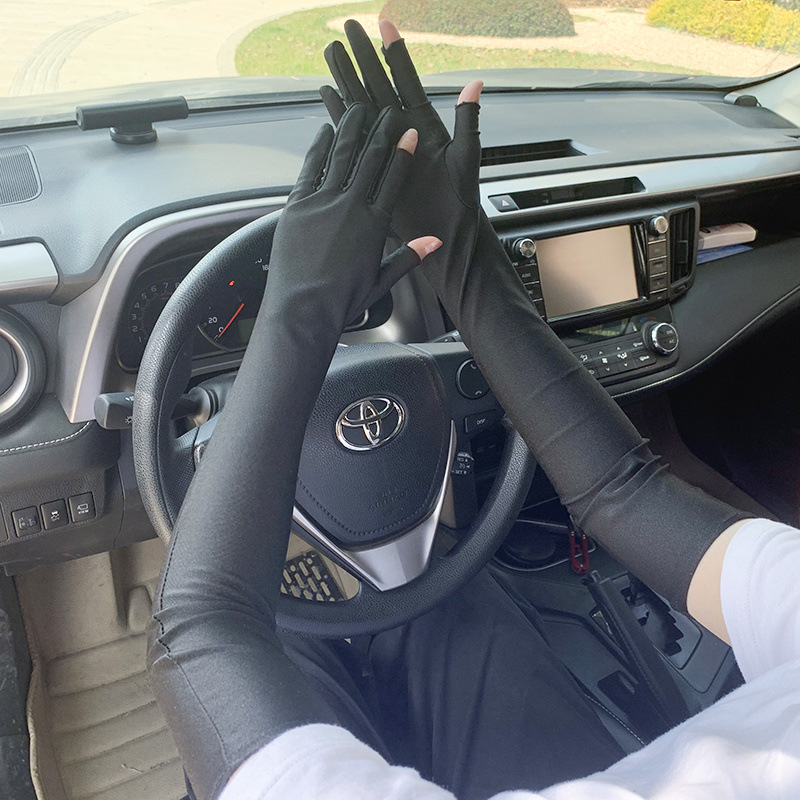 春夏季加长款防晒漏二指手套女薄款透气弹力防紫外线骑行开车护手