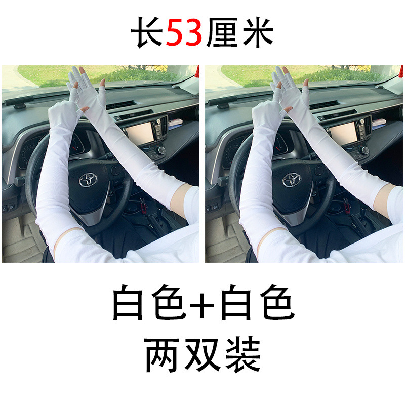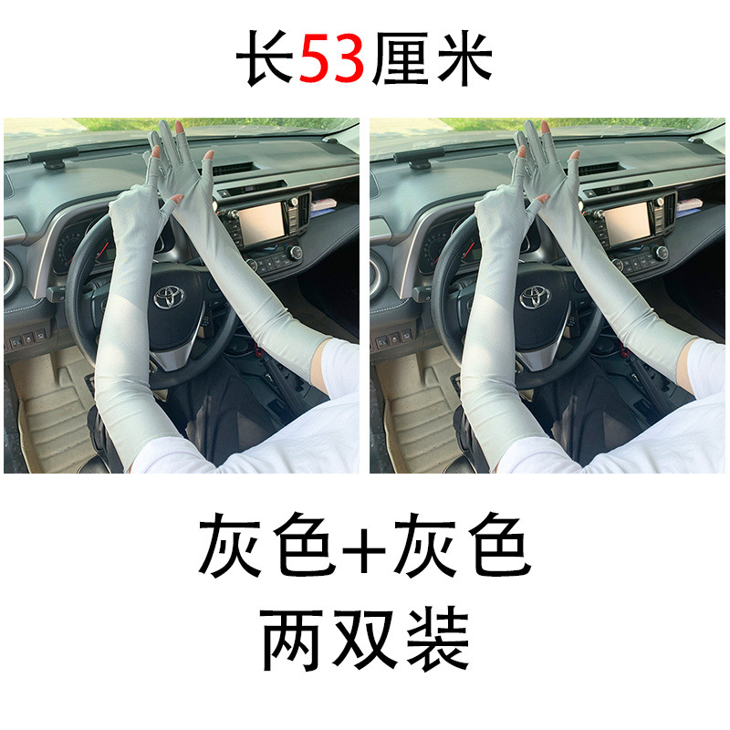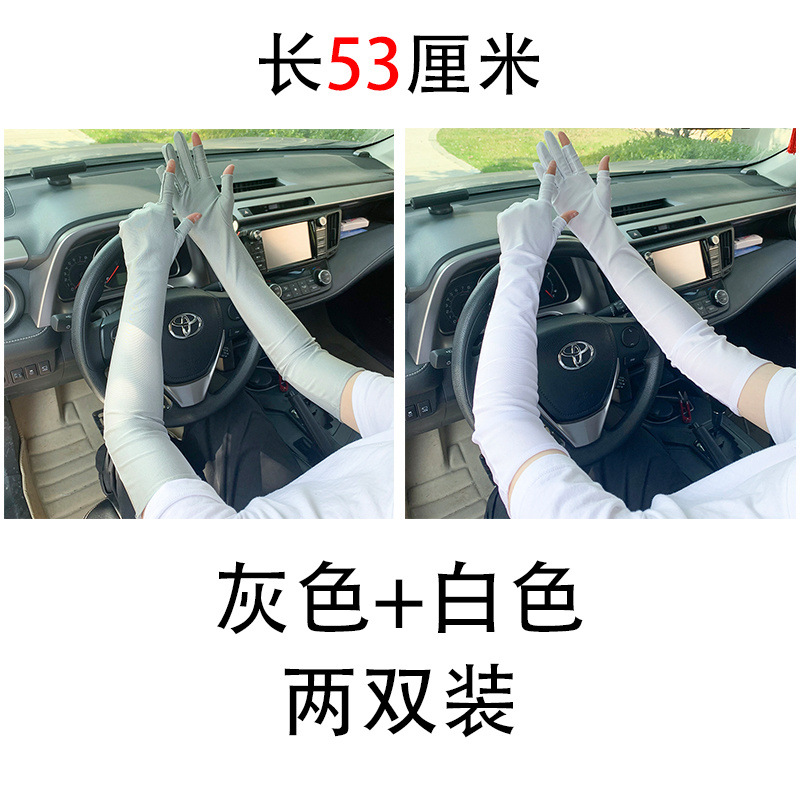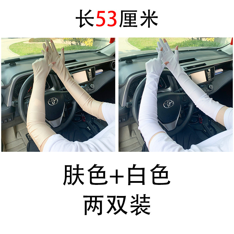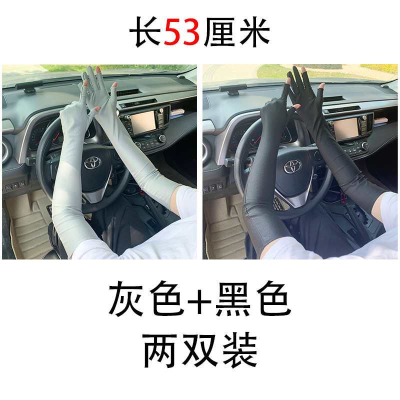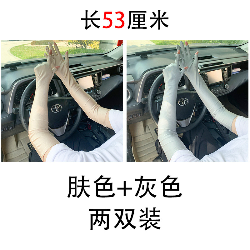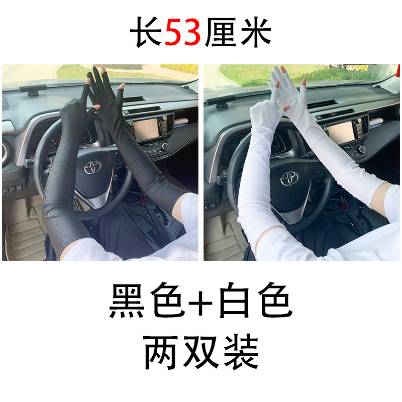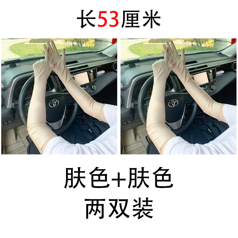 春夏季加长款防晒漏二指手套女薄款透气弹力防紫外线骑行开车护手