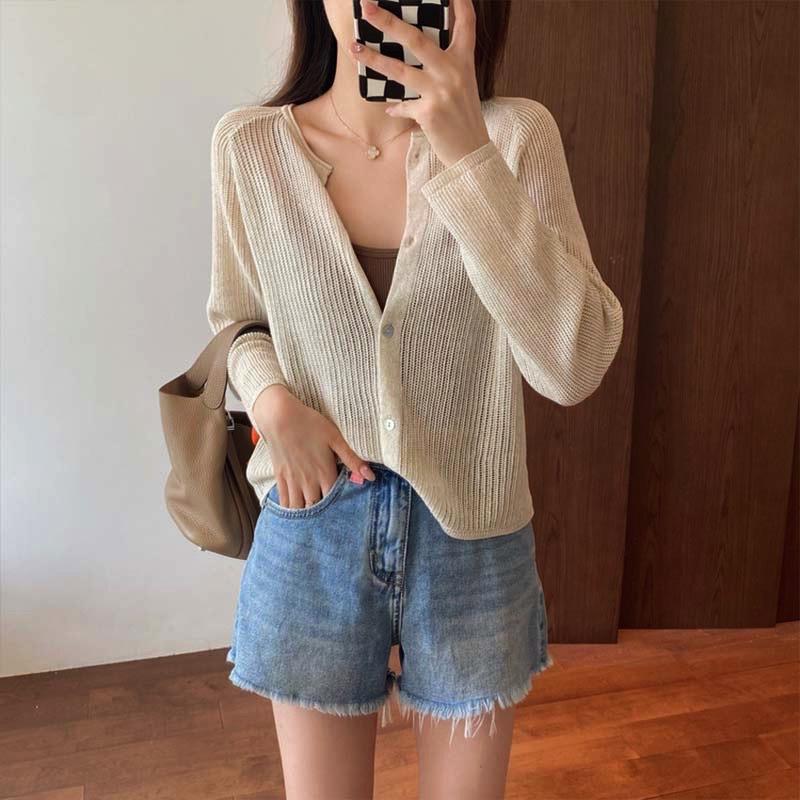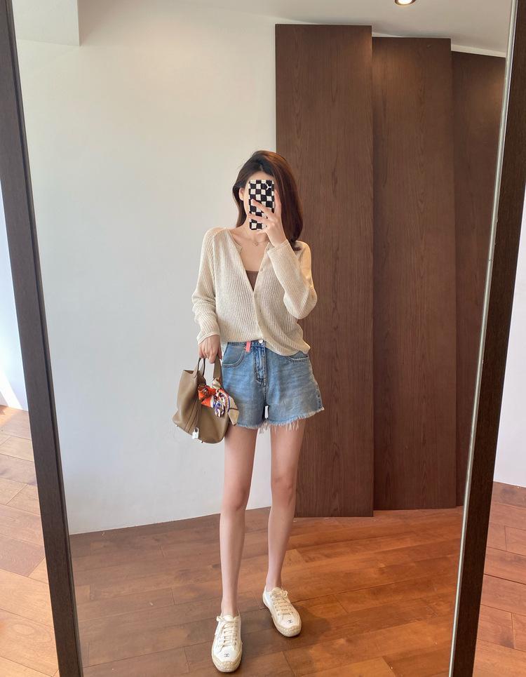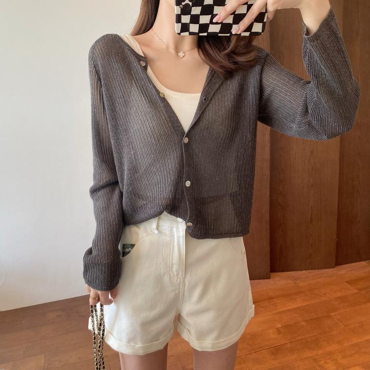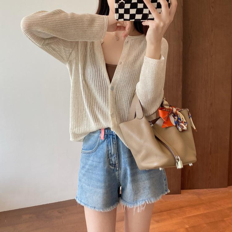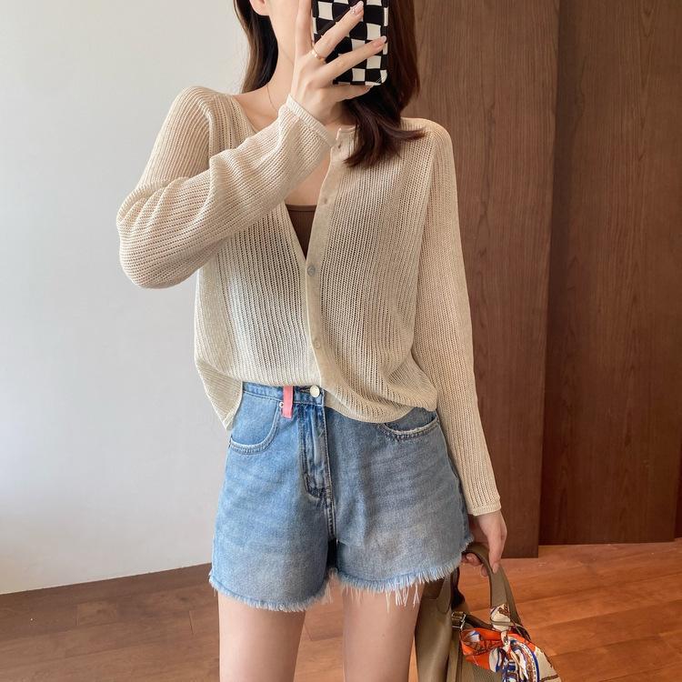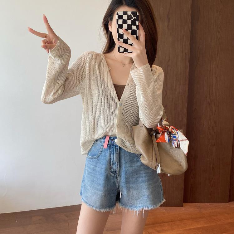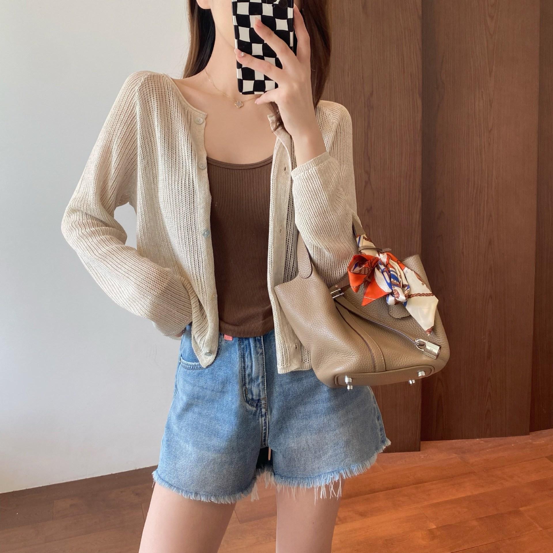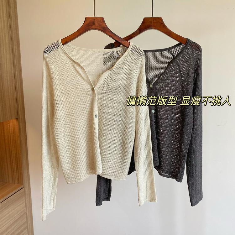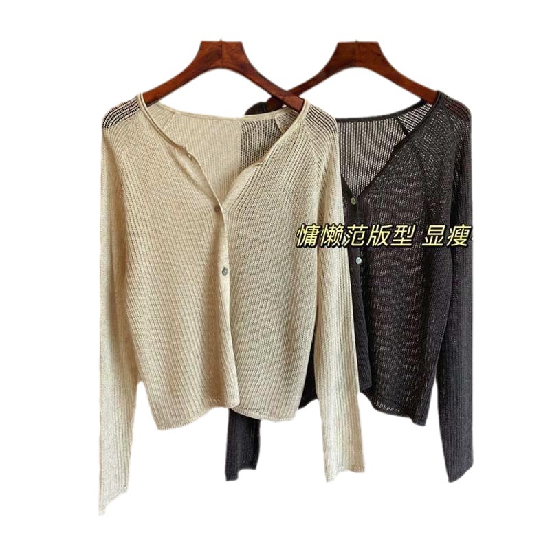 外搭冰丝V领亚麻披肩防晒衣女薄款坎肩配吊带裙针织开衫外套遮阳