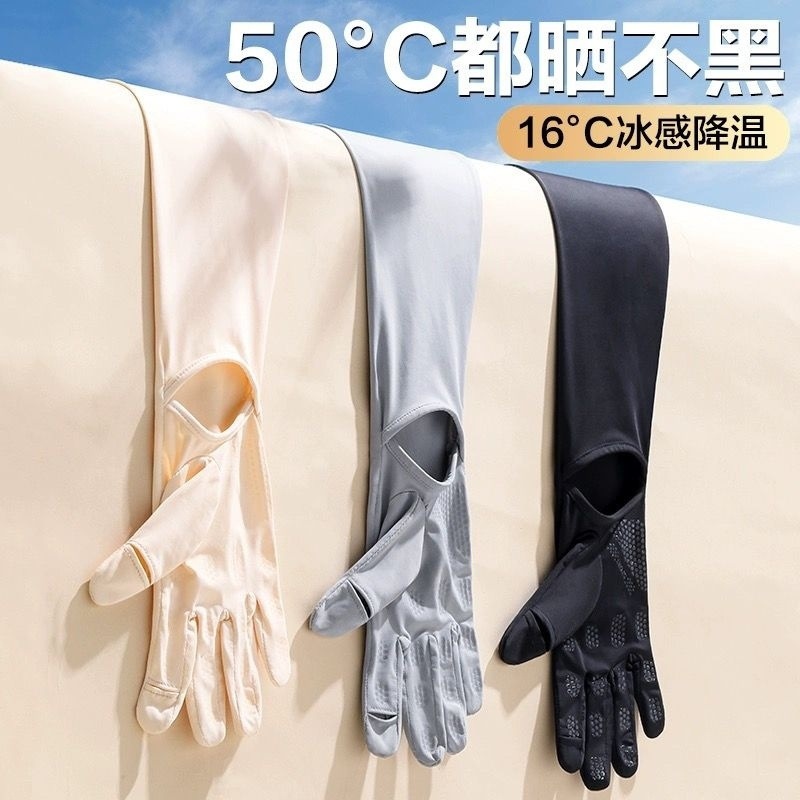 夏天防晒手套女防紫外线骑行电动车长款手指透气薄款开车冰丝袖套