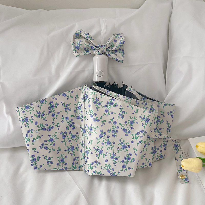 碎花全自动防晒太阳伞防紫外线女折叠晴雨两用黑胶超轻小巧遮阳伞