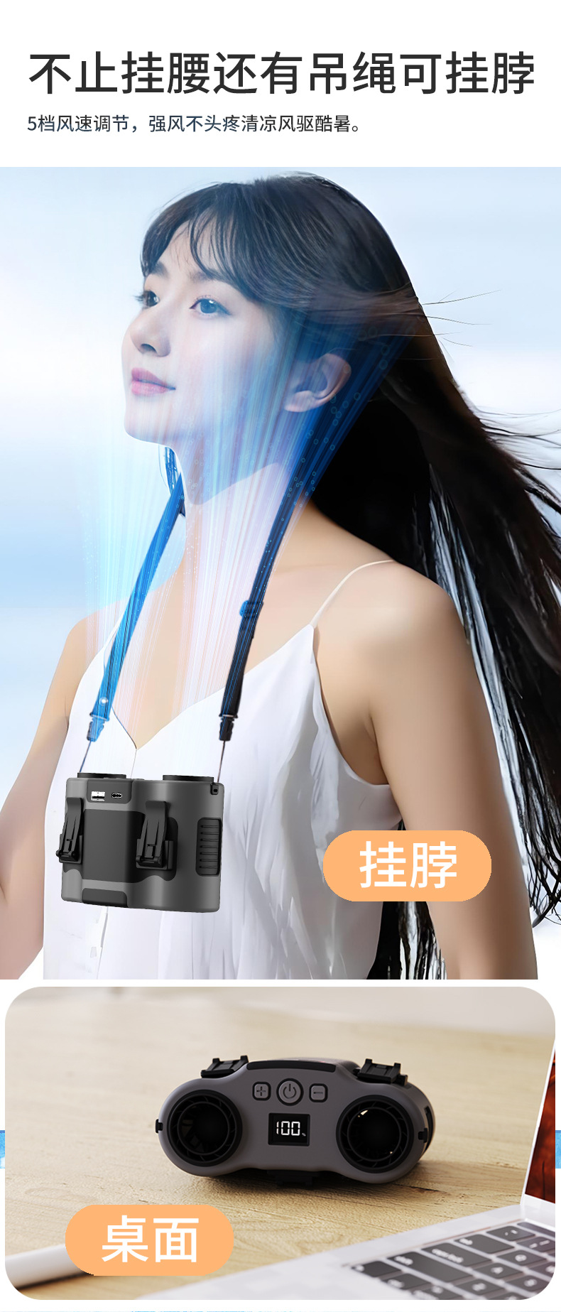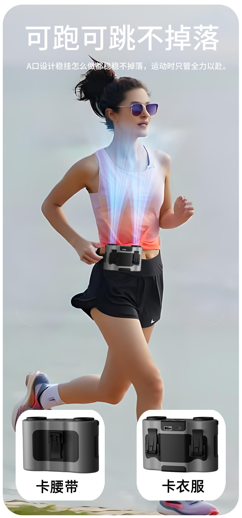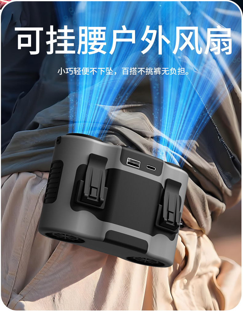 25新款挂腰风扇长续航户外露营风扇大风力工地便携迷你挂腰小风扇
