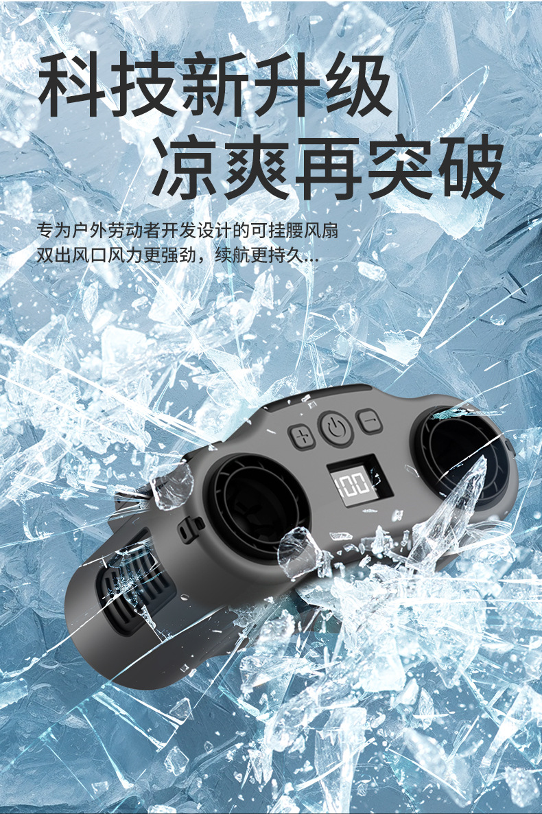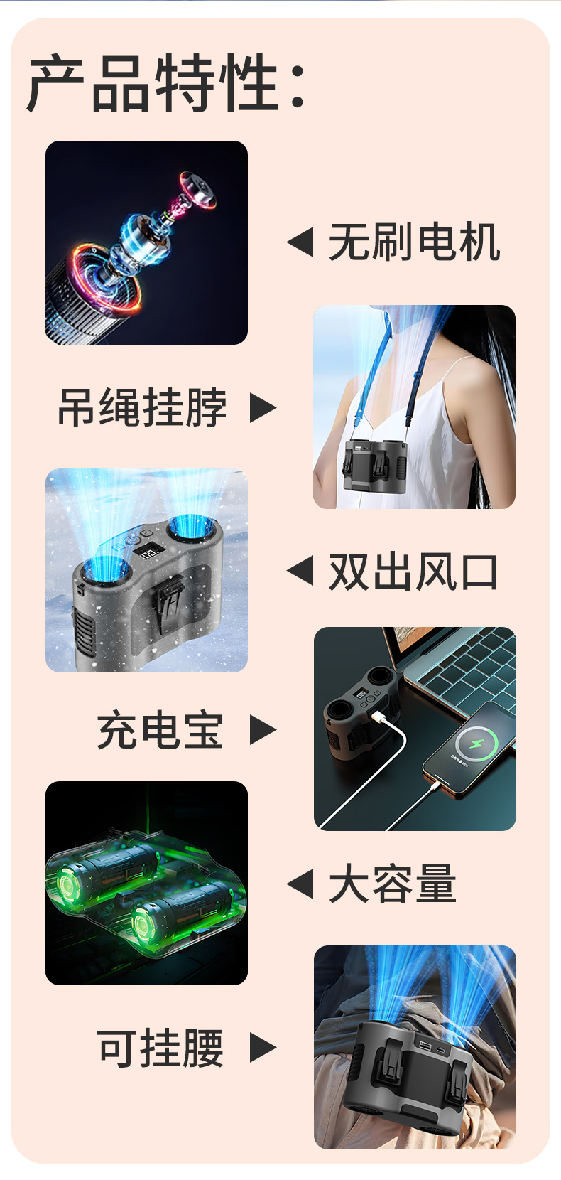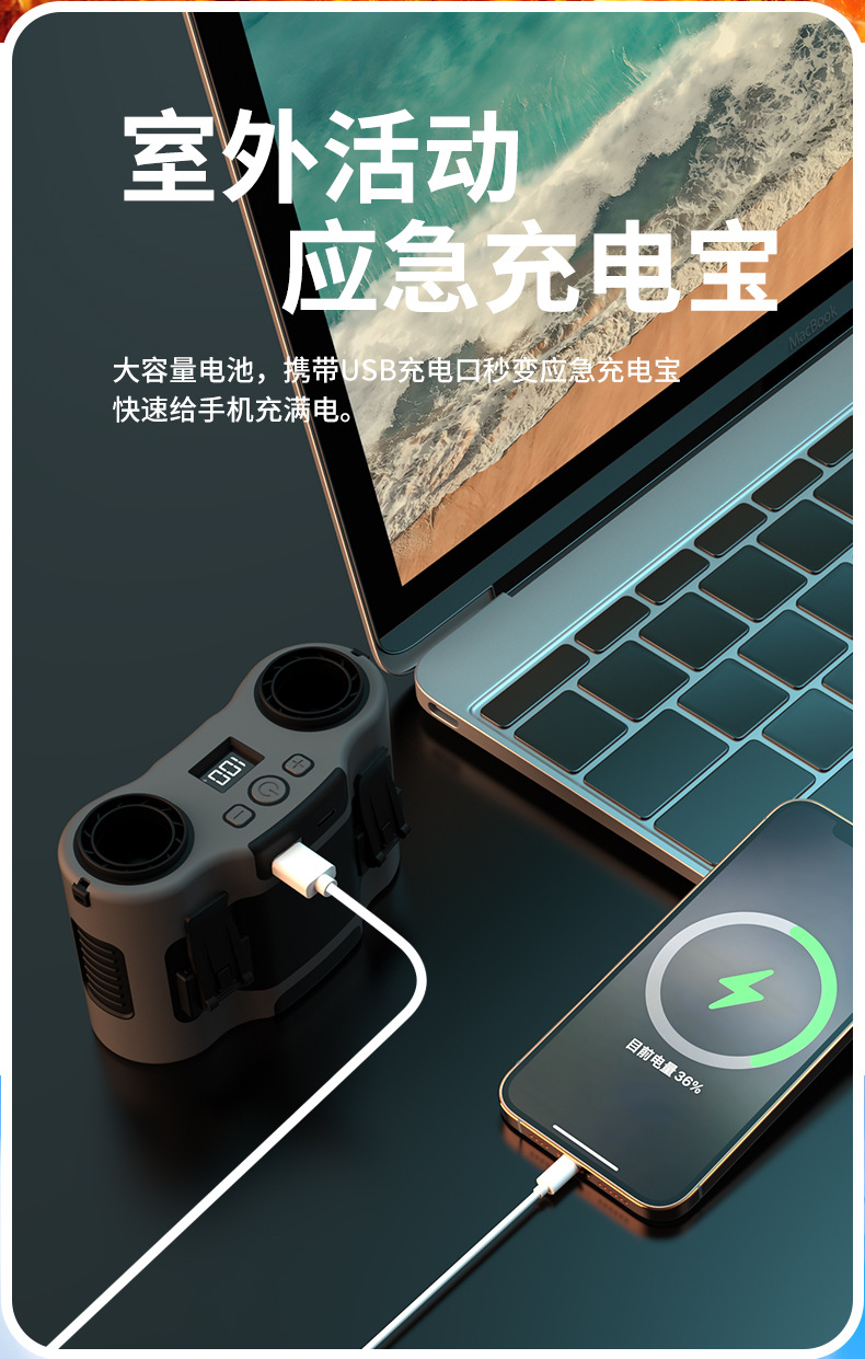 25新款挂腰风扇长续航户外露营风扇大风力工地便携迷你挂腰小风扇