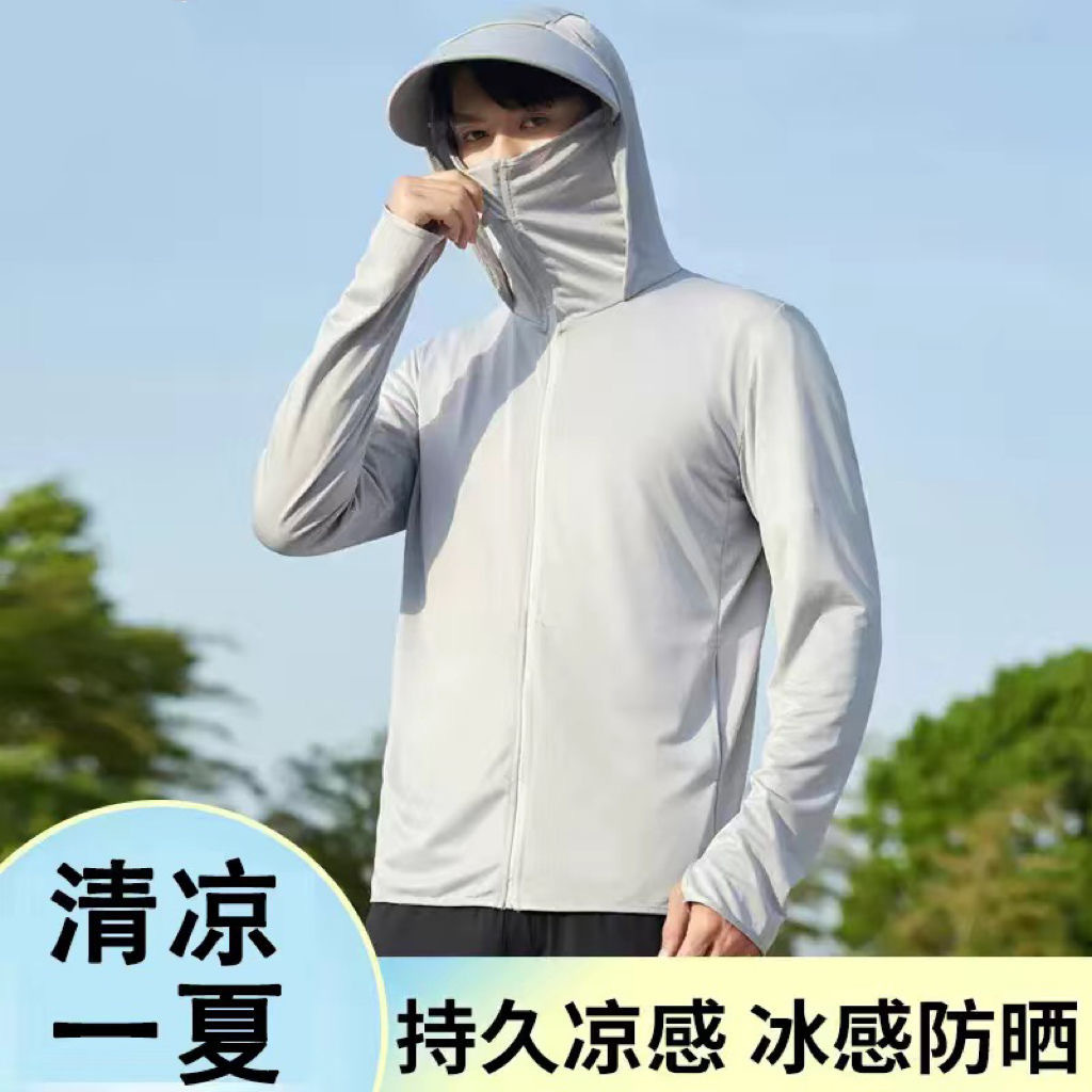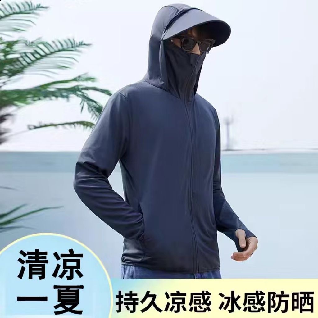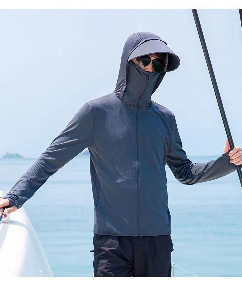冰丝防晒衣男士夏季连帽风衣超薄款透气户外钓鱼防晒服外套夹克