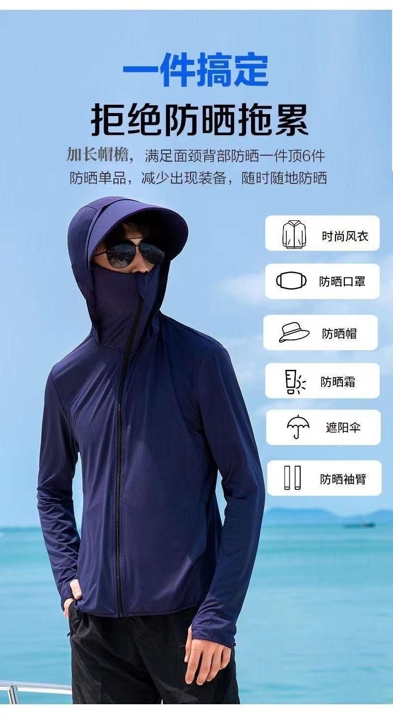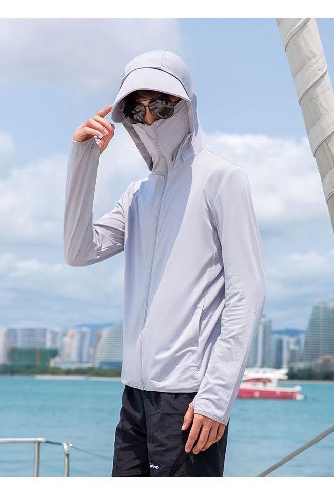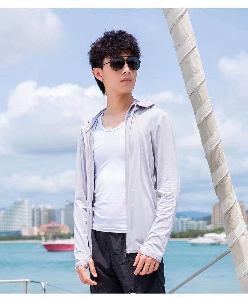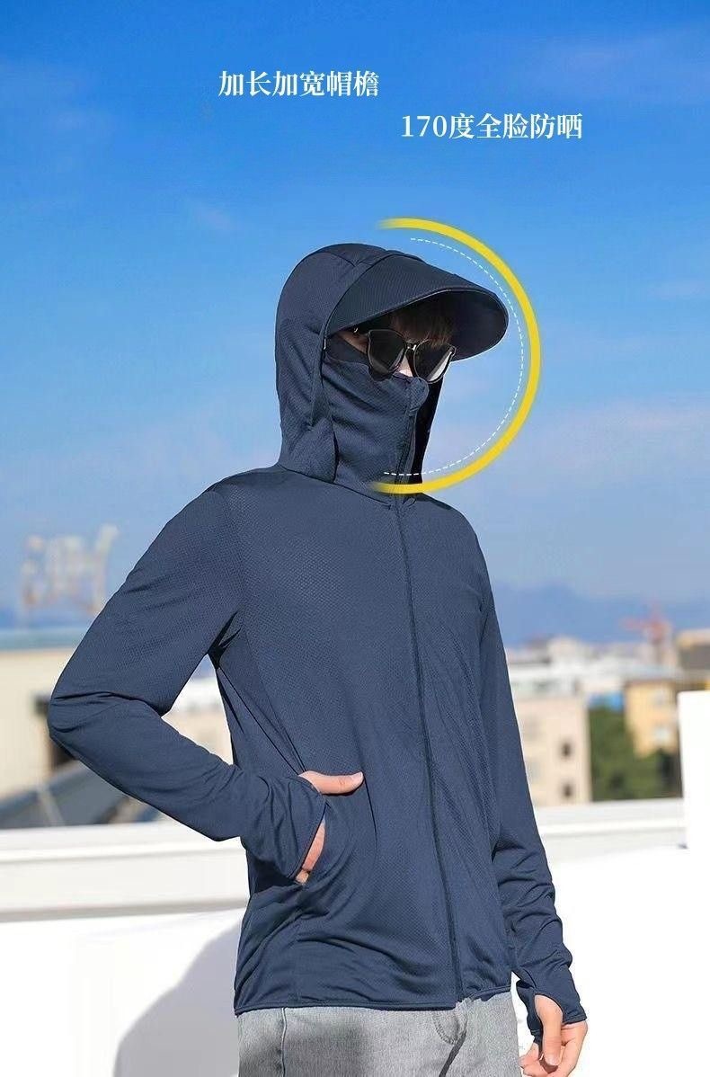 冰丝防晒衣男士夏季连帽风衣超薄款透气户外钓鱼防晒服外套夹克