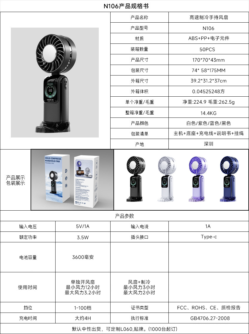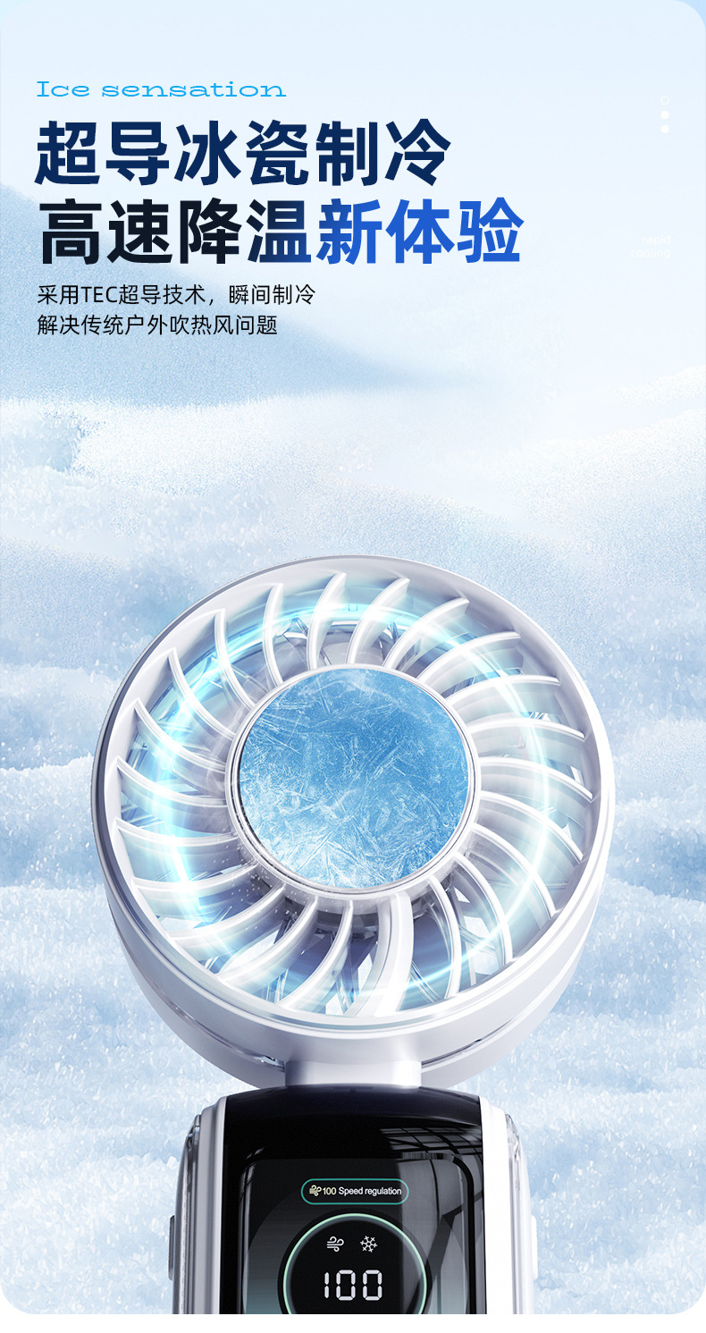 2026新款冰敷高速风扇半导体制冷手持风扇便携式充电折叠小风扇