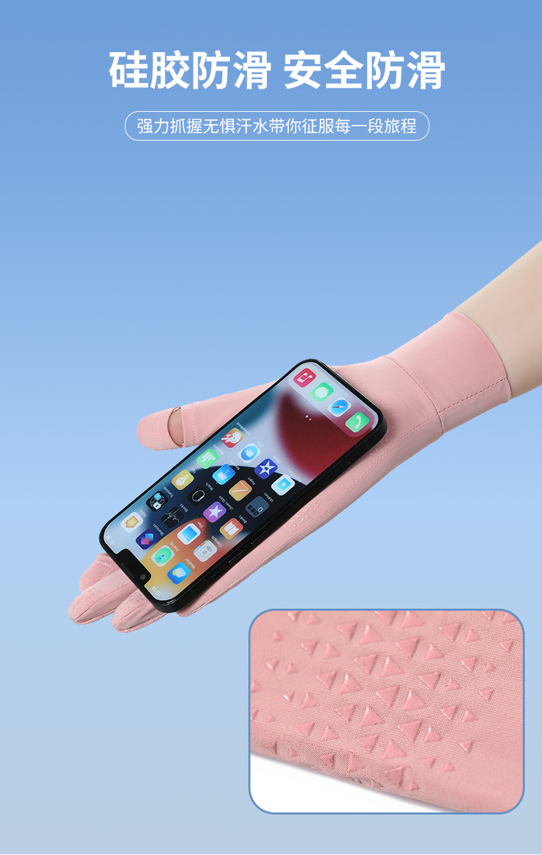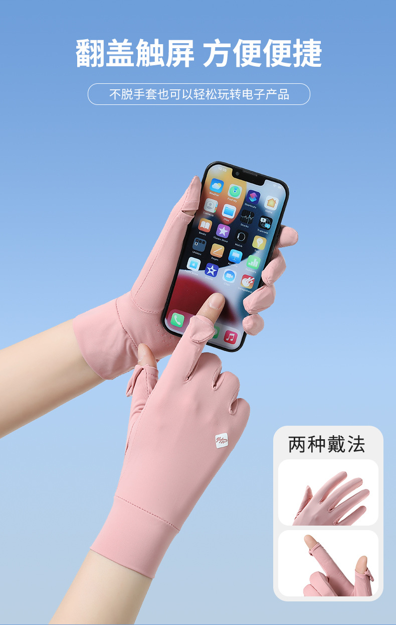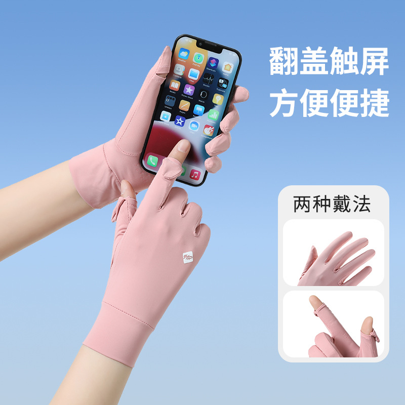 夏季冰丝手套女生薄款透气触屏防紫外线户外开车骑行防晒手套