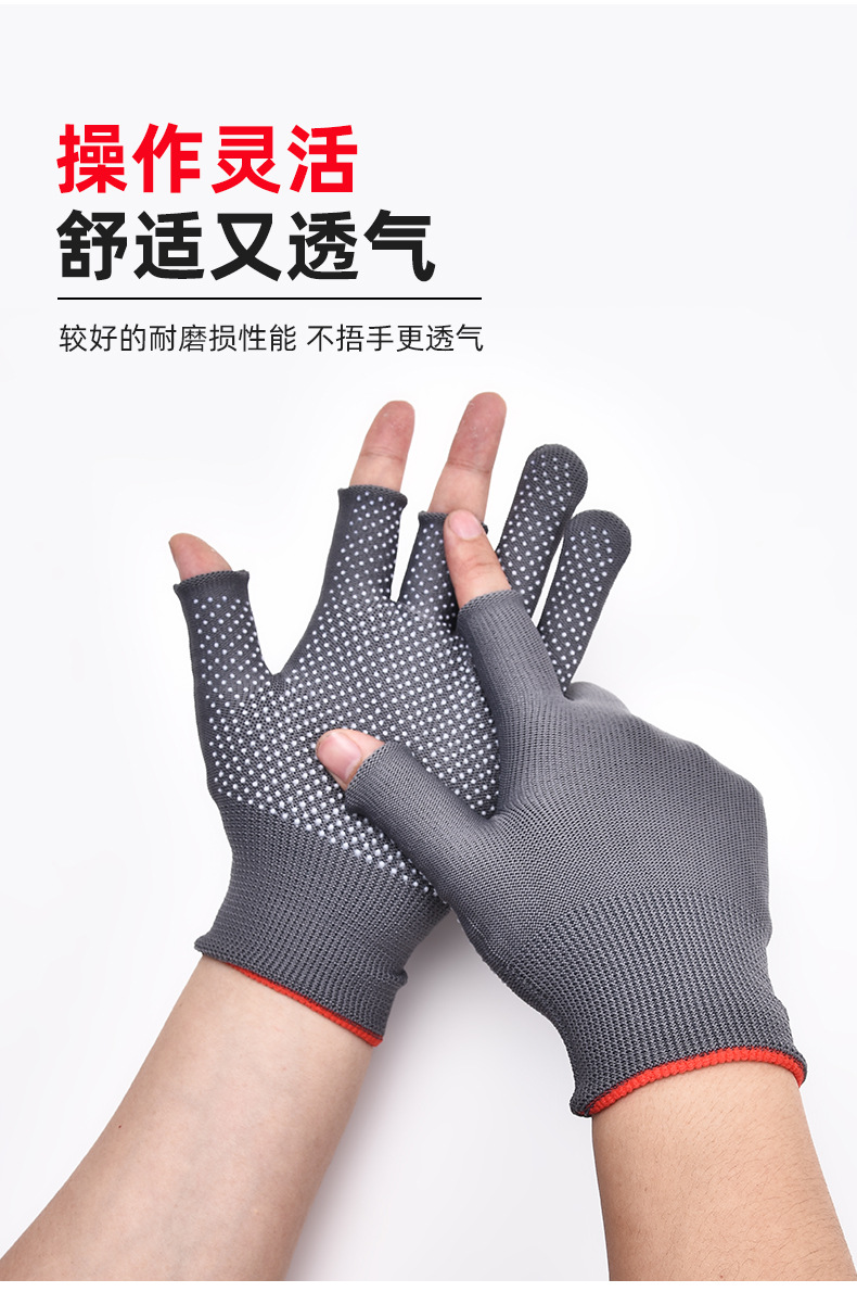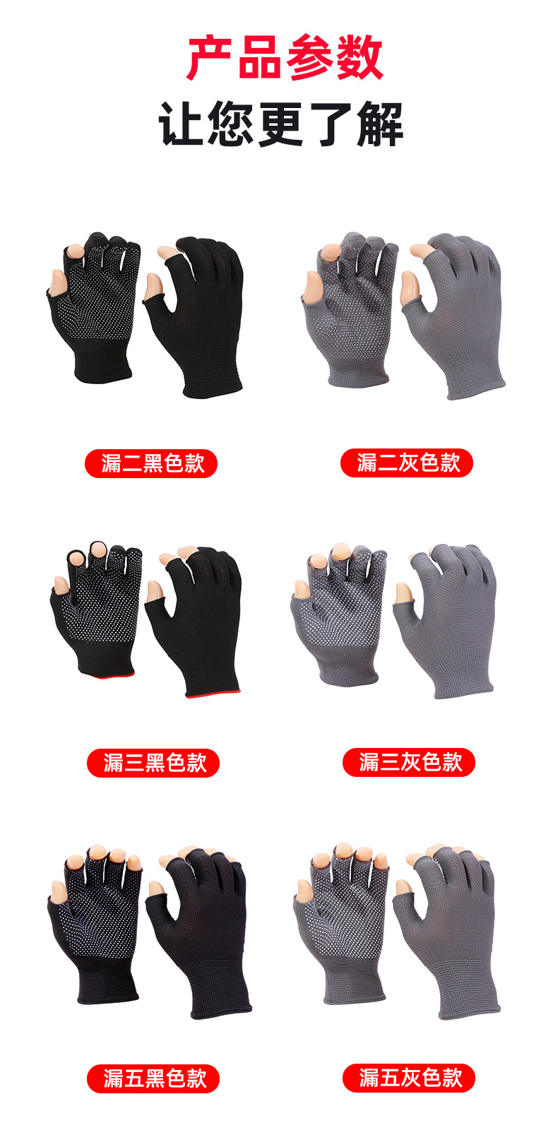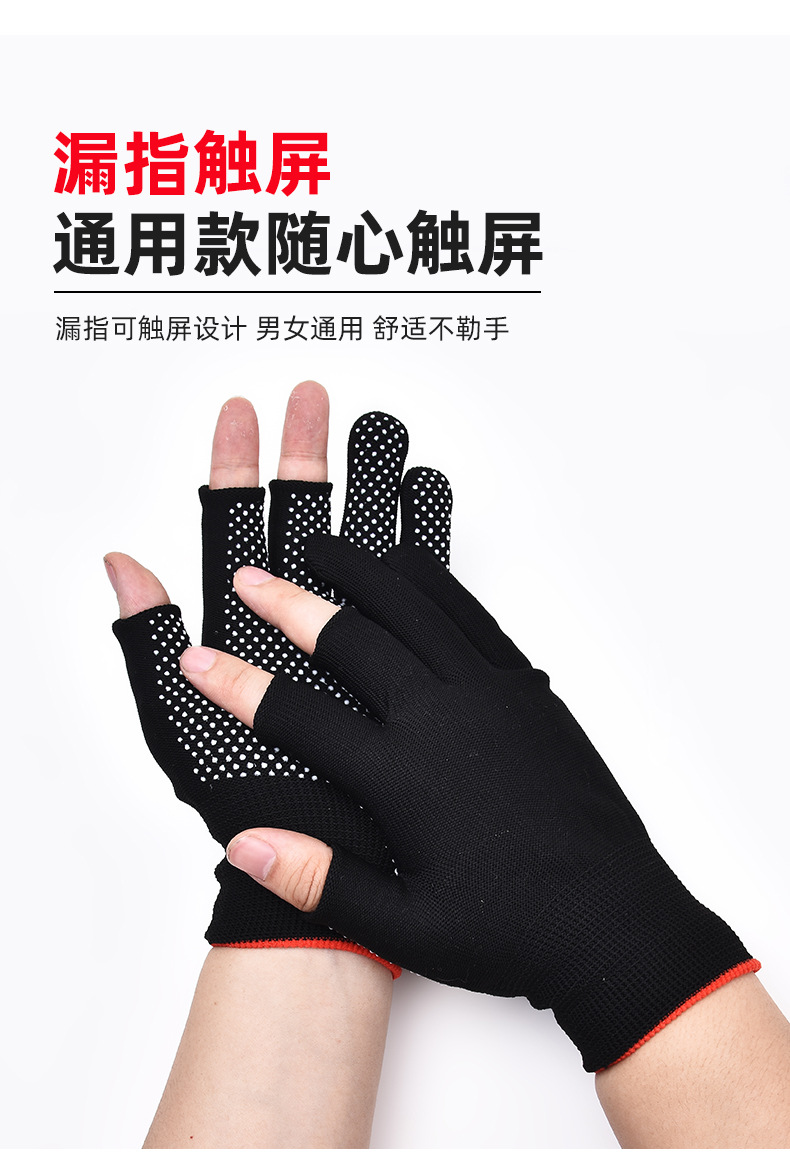 漏指五指半指点珠手套防滑防晒透气薄款男女尼龙劳保骑行点胶手套