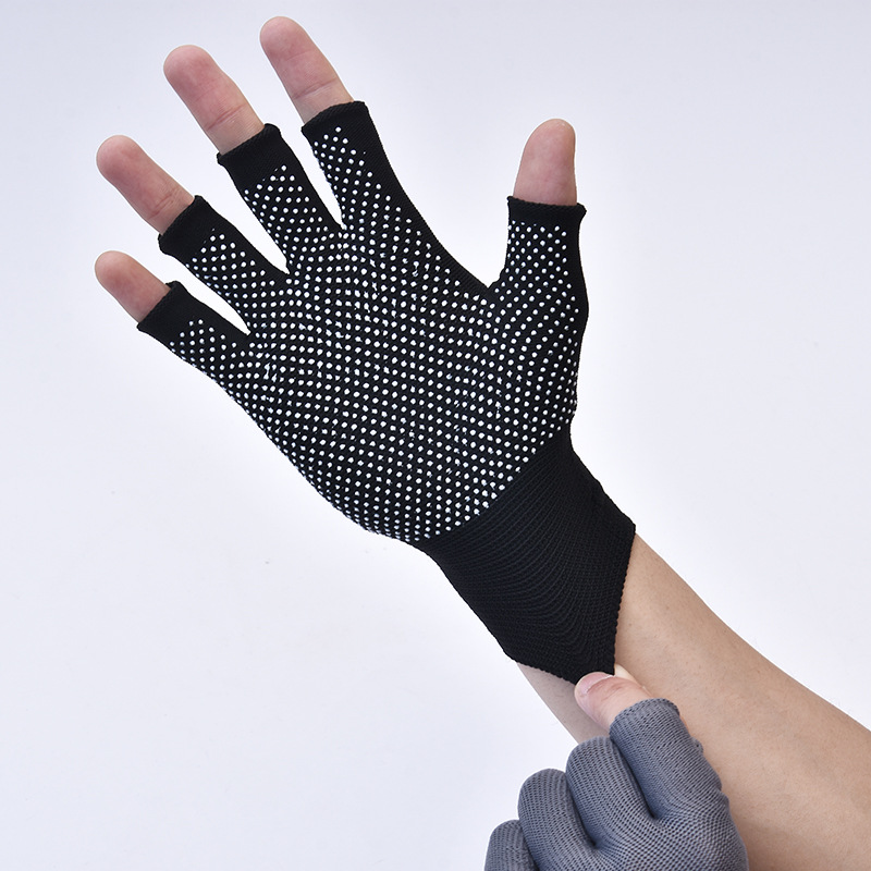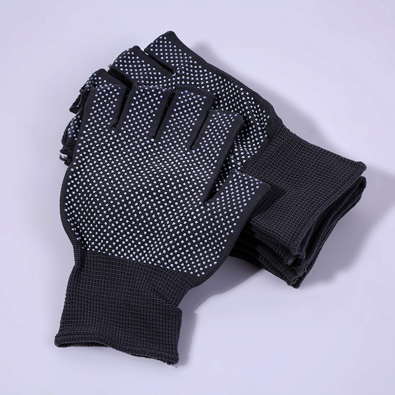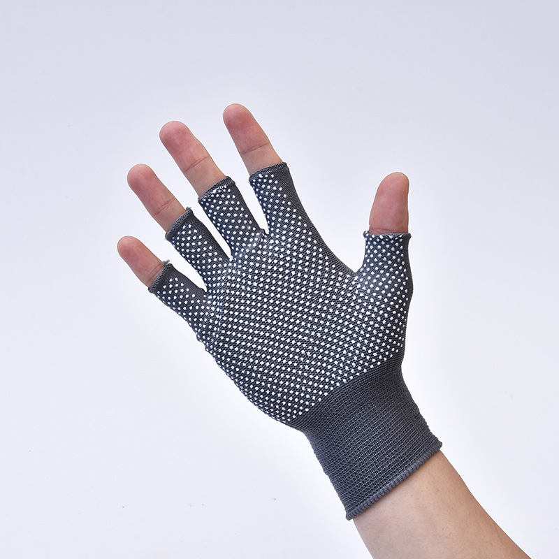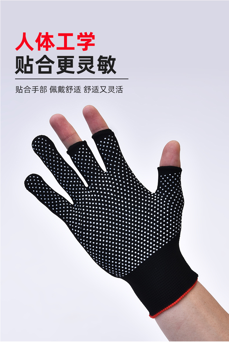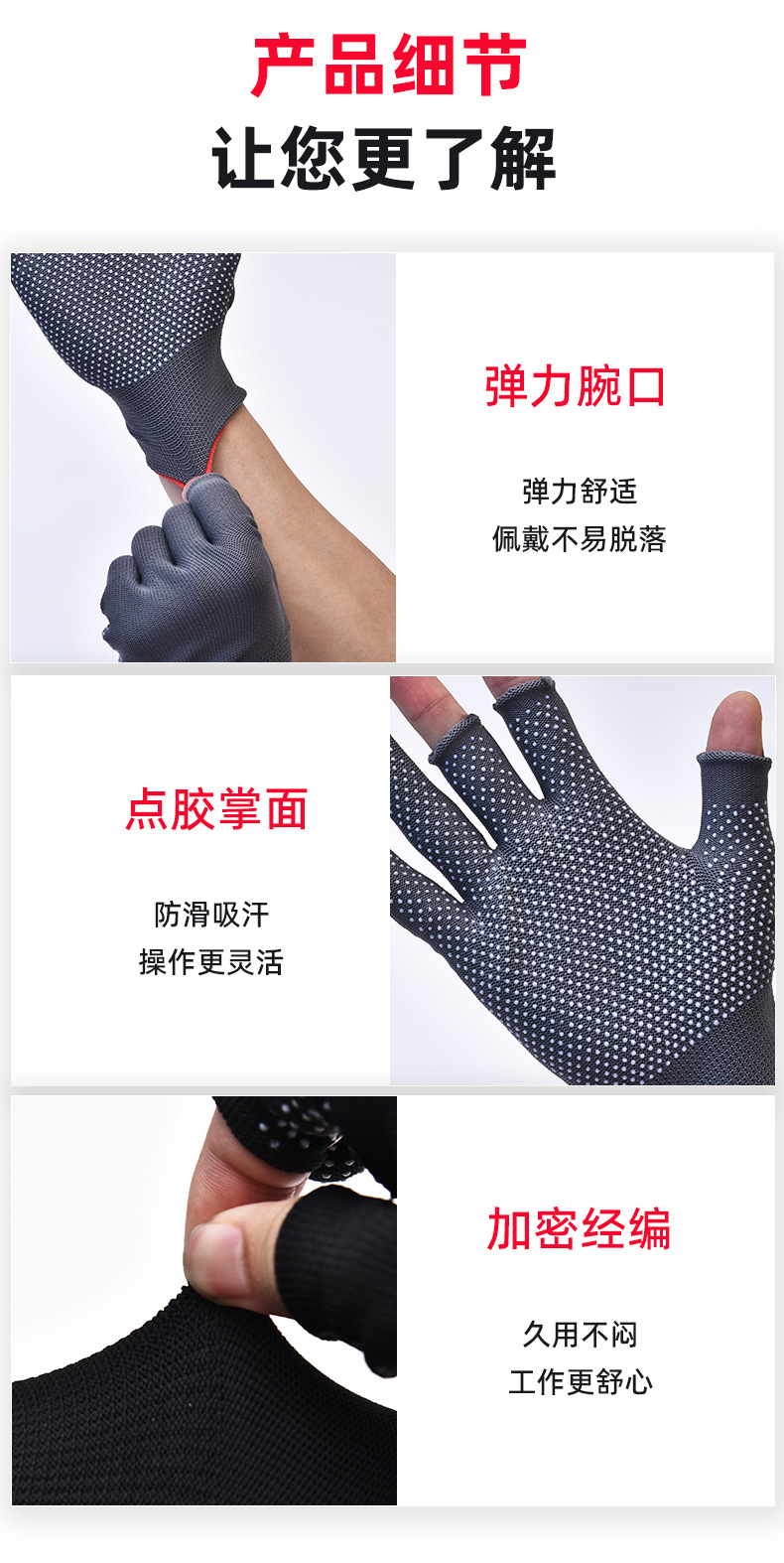漏指五指半指点珠手套防滑防晒透气薄款男女尼龙劳保骑行点胶手套
