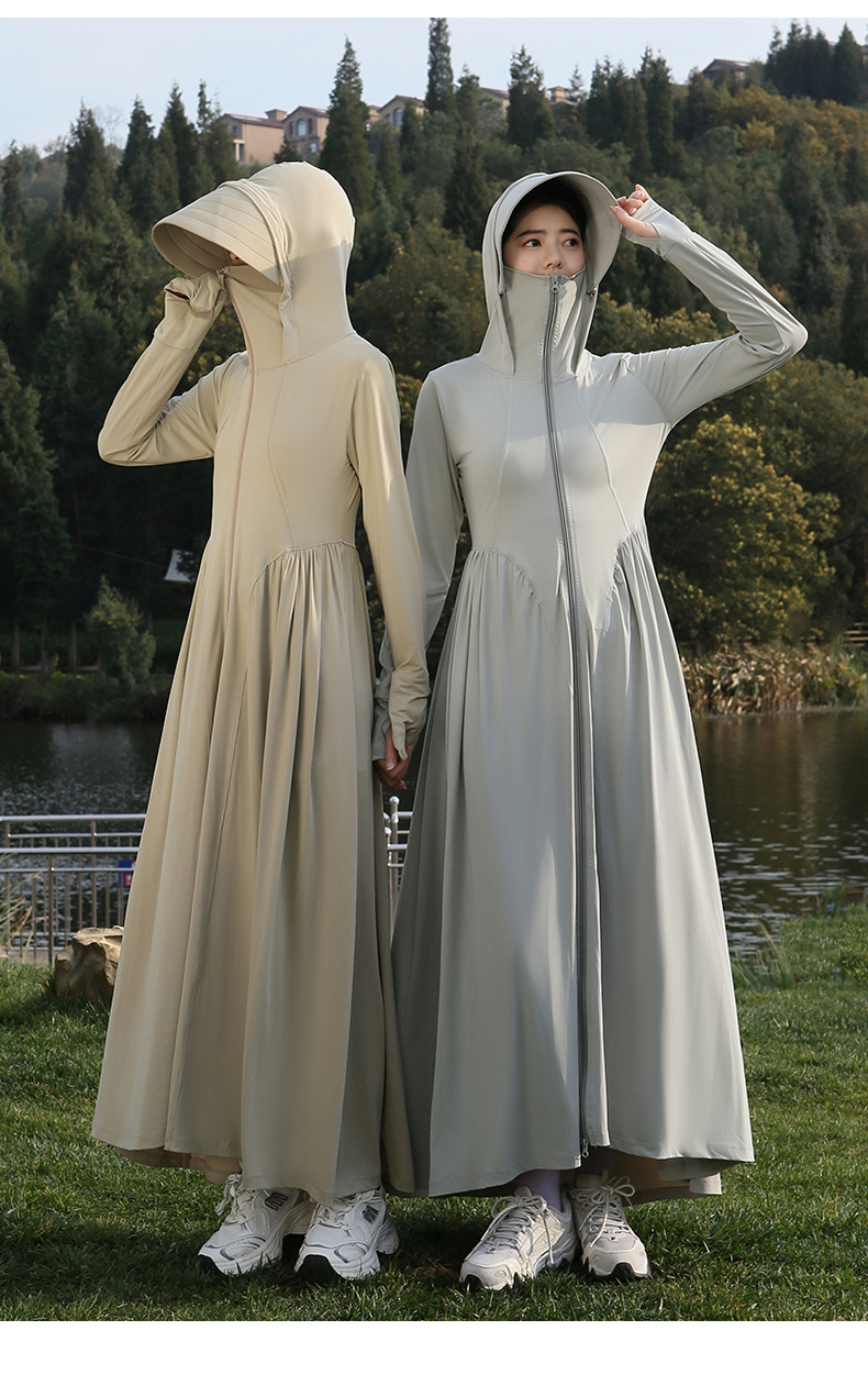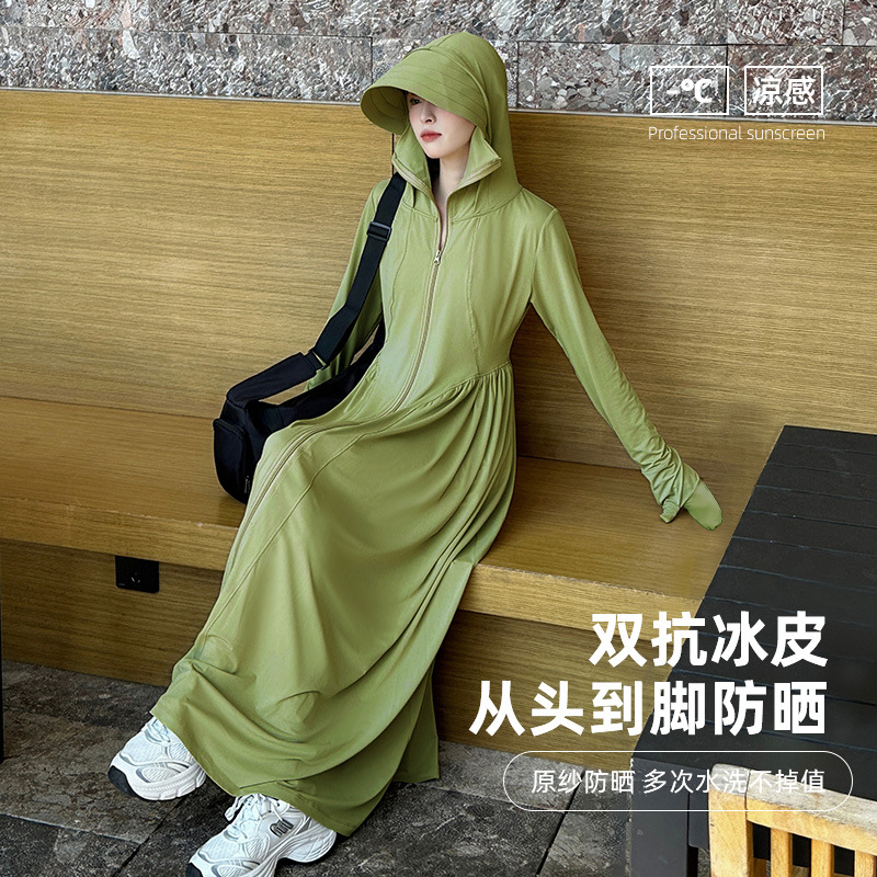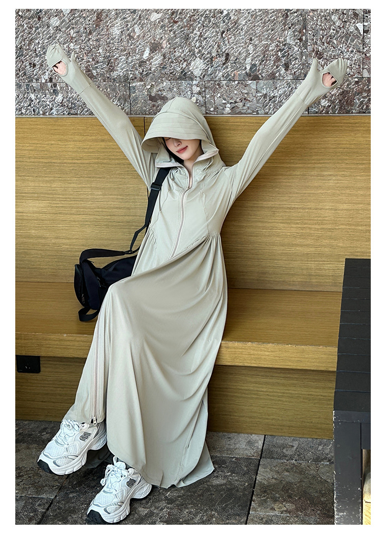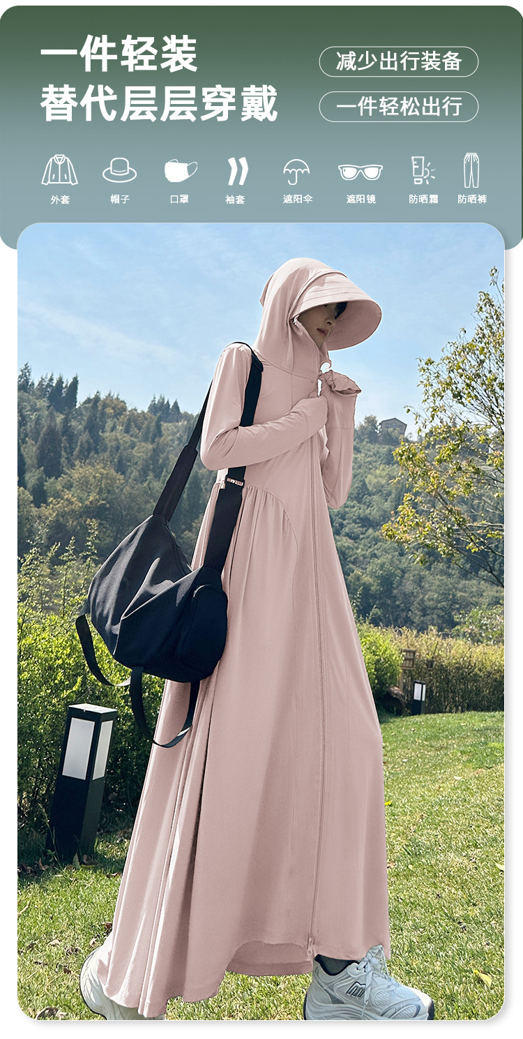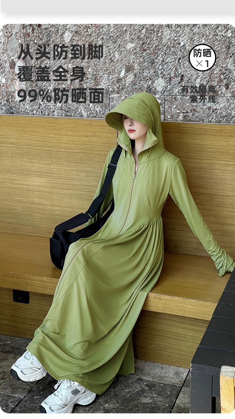 收腰长款冰丝防晒衣裙女夏季新款修身全身防紫外线轻薄连帽防晒服