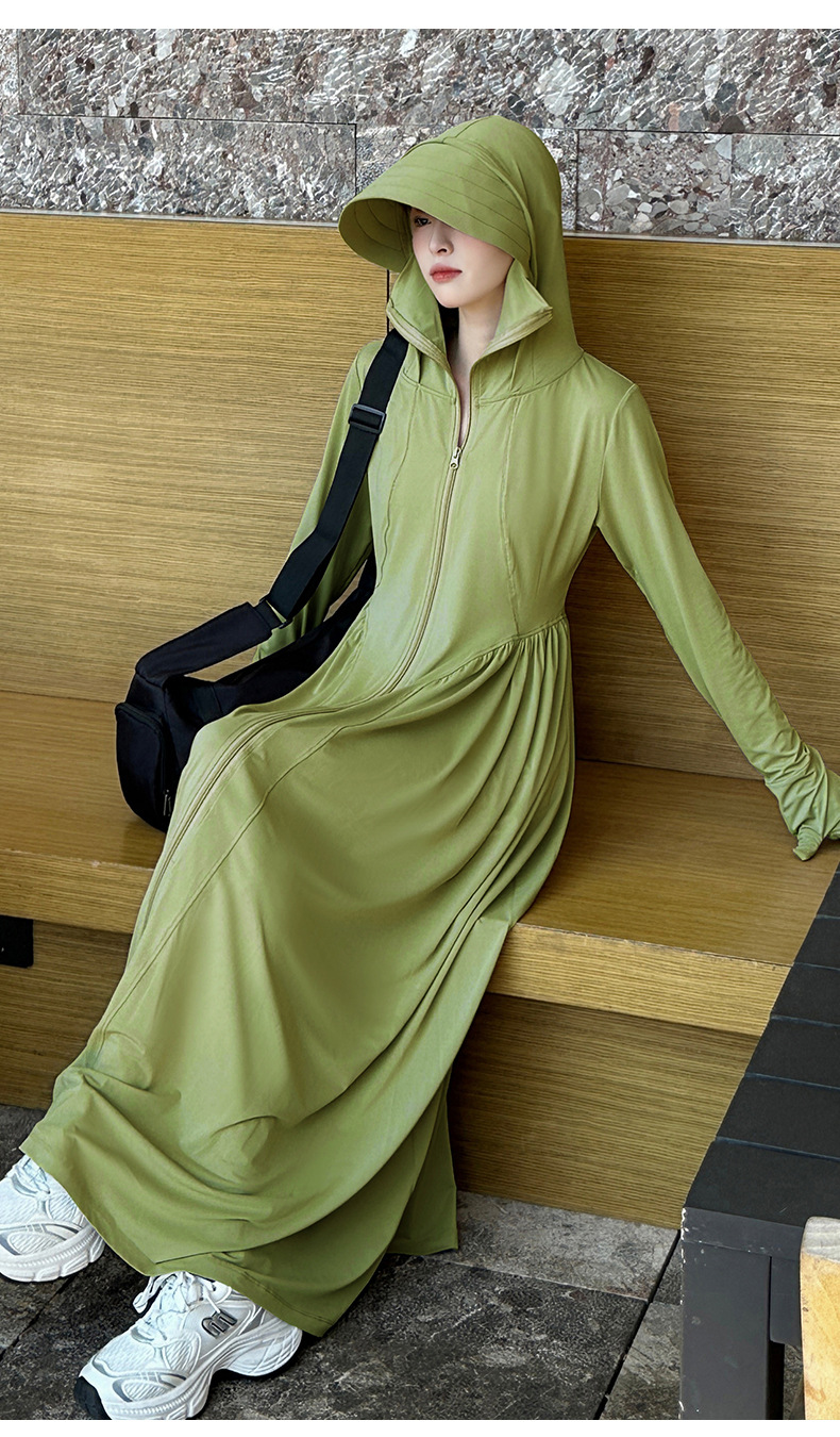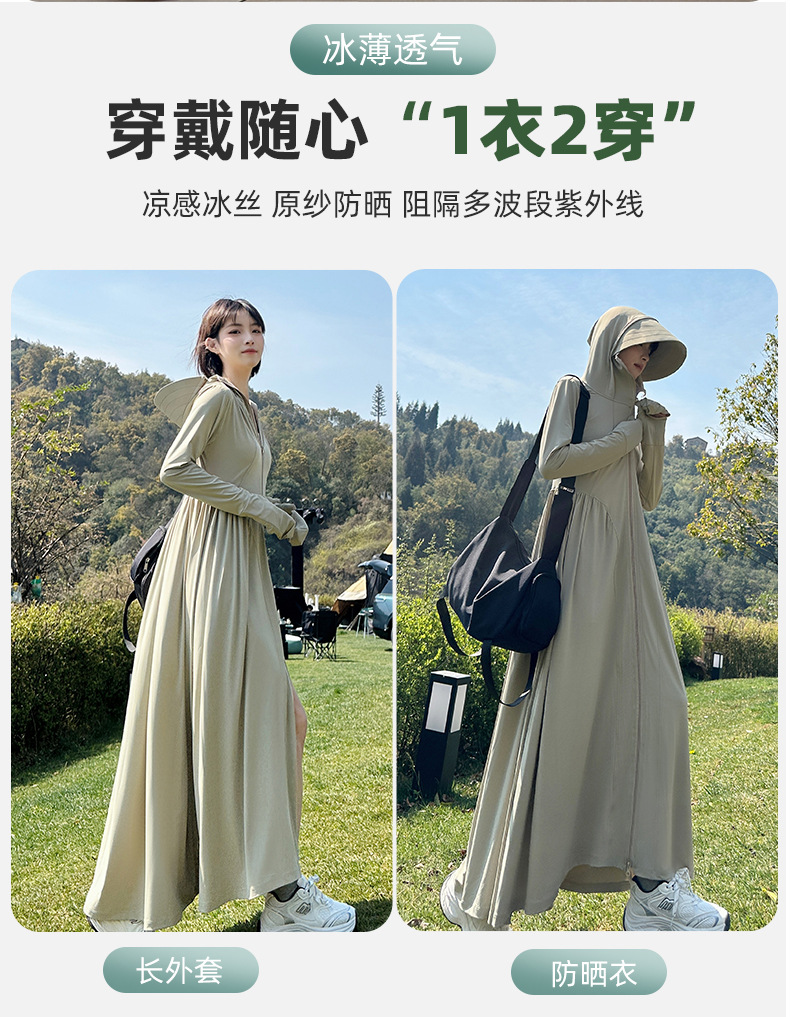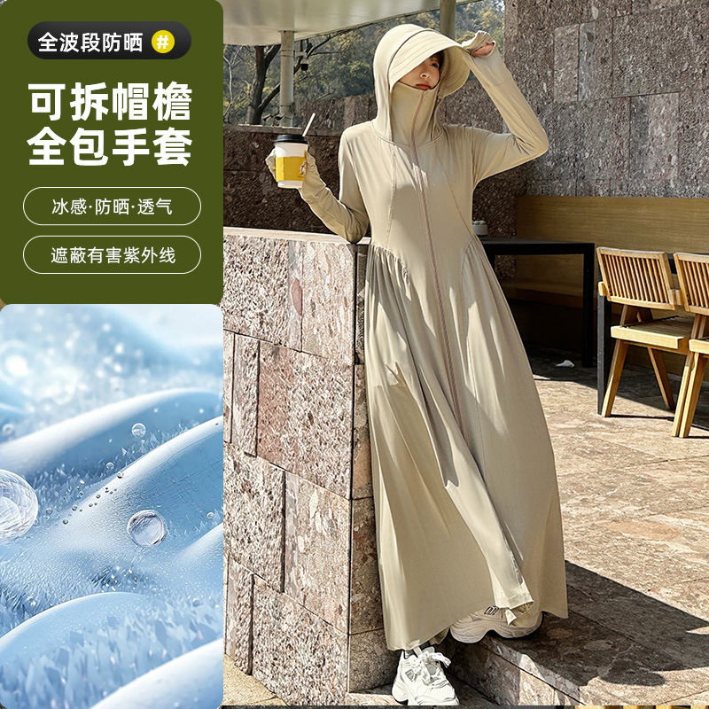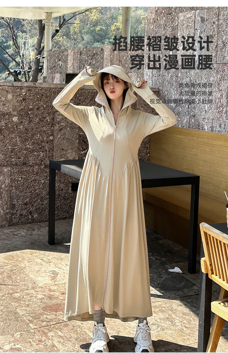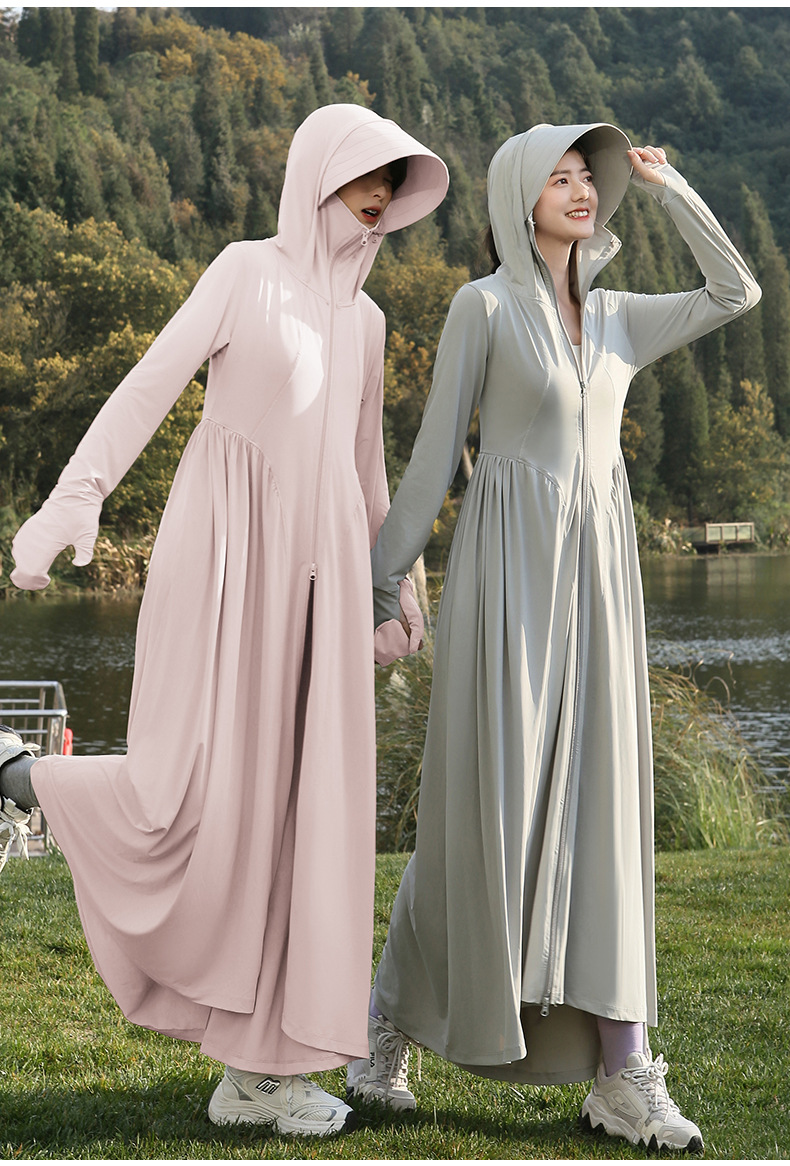 收腰长款冰丝防晒衣裙女夏季新款修身全身防紫外线轻薄连帽防晒服