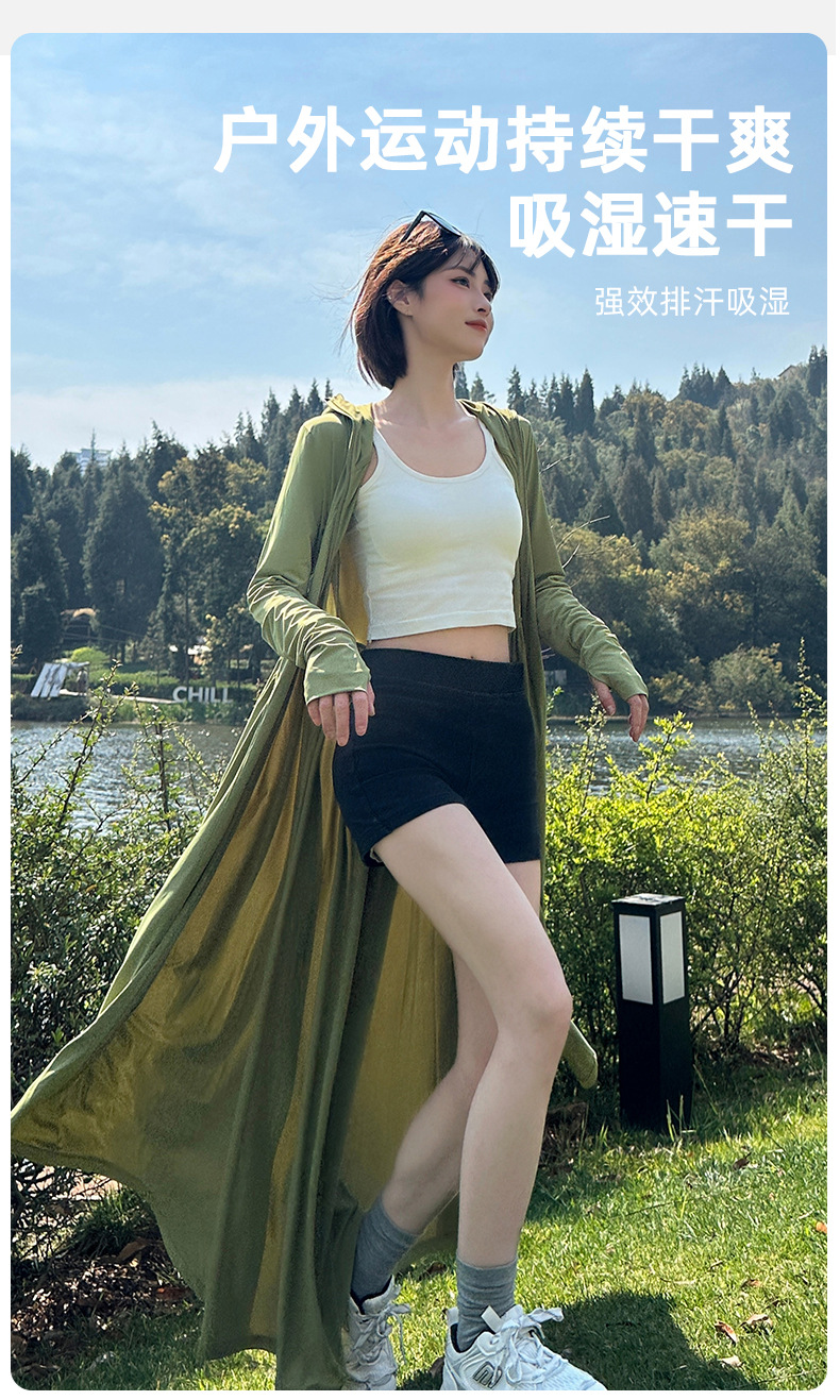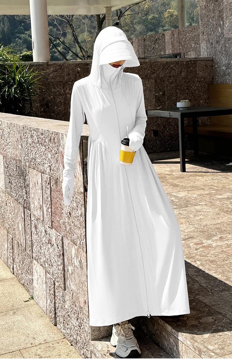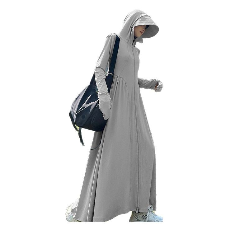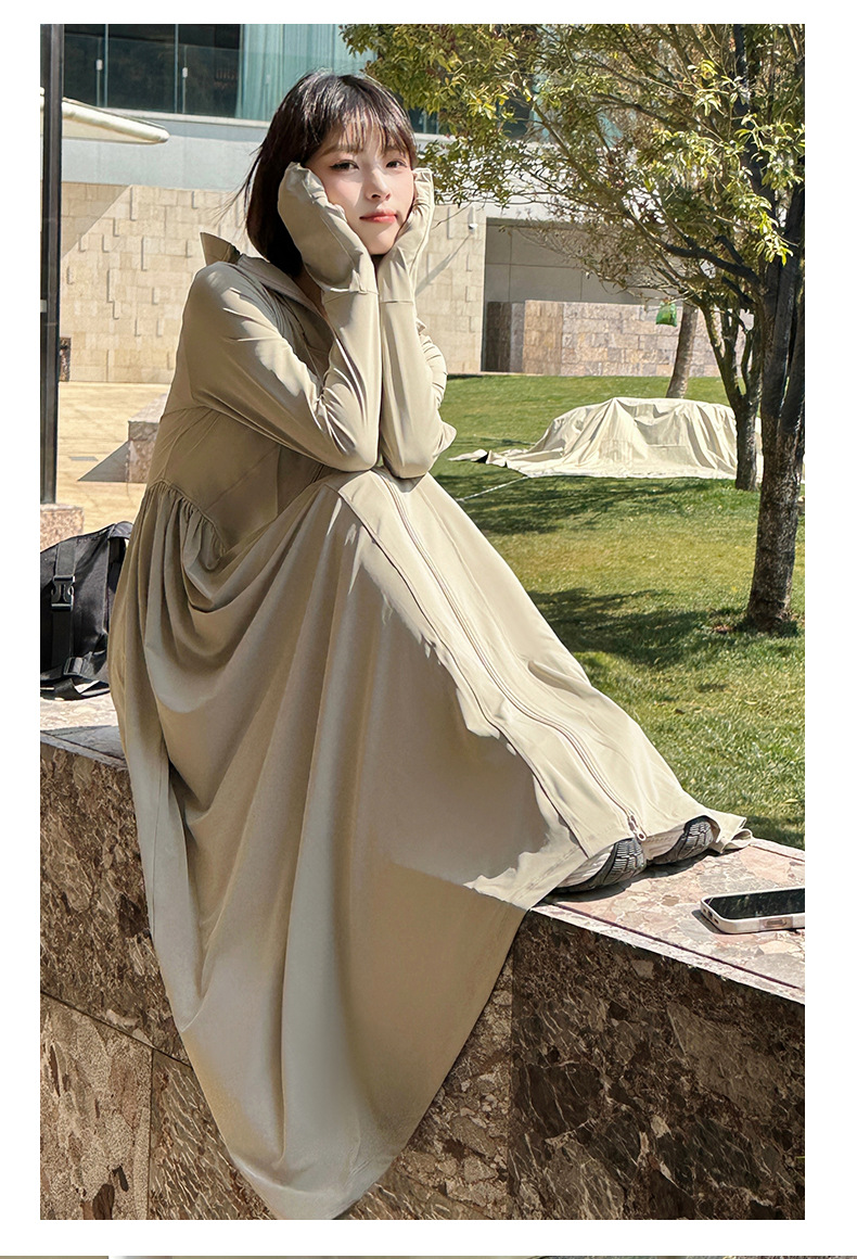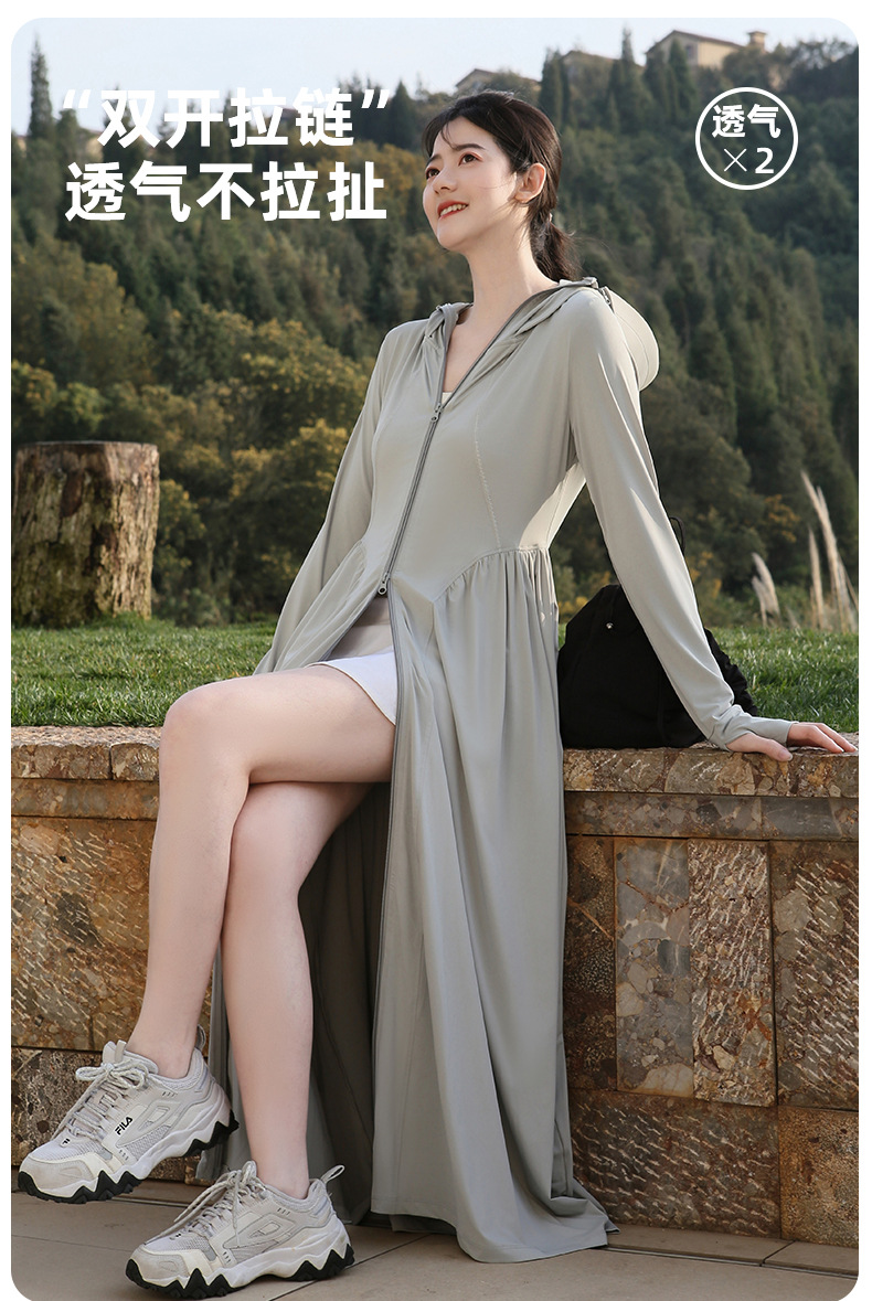 收腰长款冰丝防晒衣裙女夏季新款修身全身防紫外线轻薄连帽防晒服