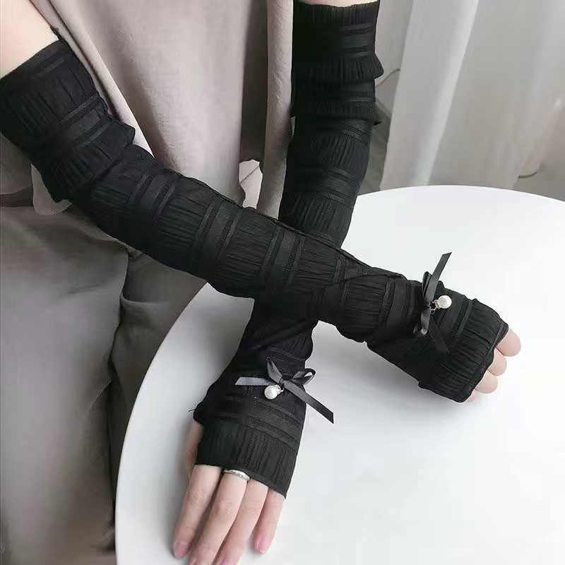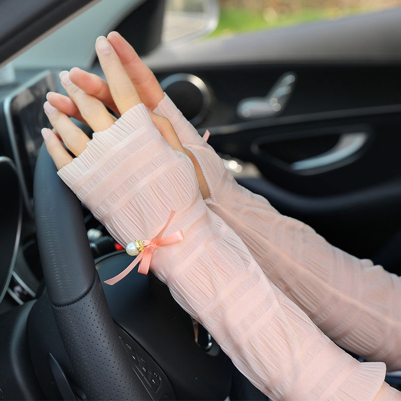 防晒袖套女长款蕾丝薄款袖套夏季防紫外线手套女开出车冰丝手臂套