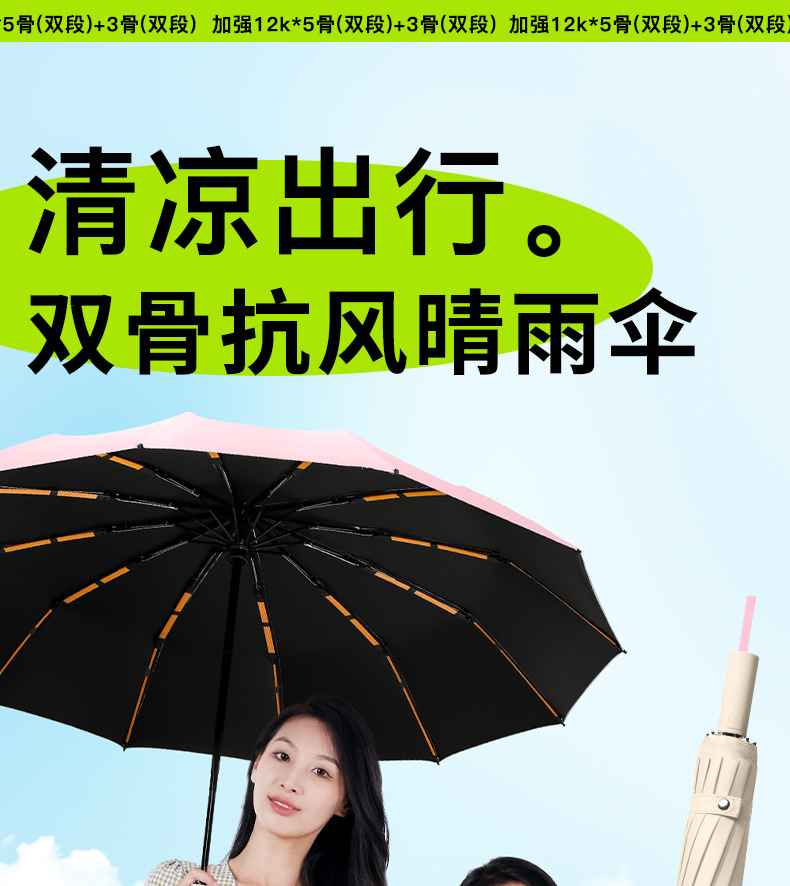 折叠全自动雨伞192骨黑胶加厚男超大抗风暴遮阳伞晴雨两用广告伞