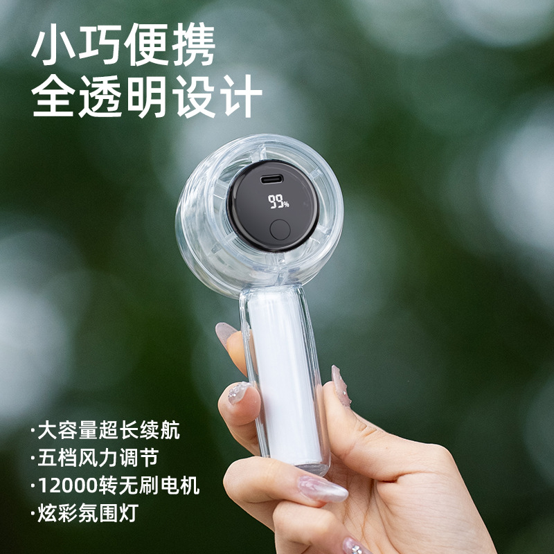 跨境新款透明高速大风力手持风扇可爱少女随身飓风迷你小型电风扇