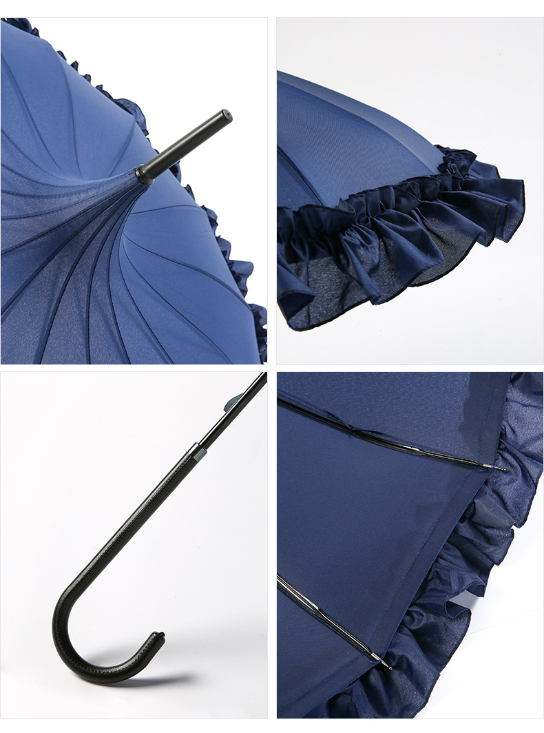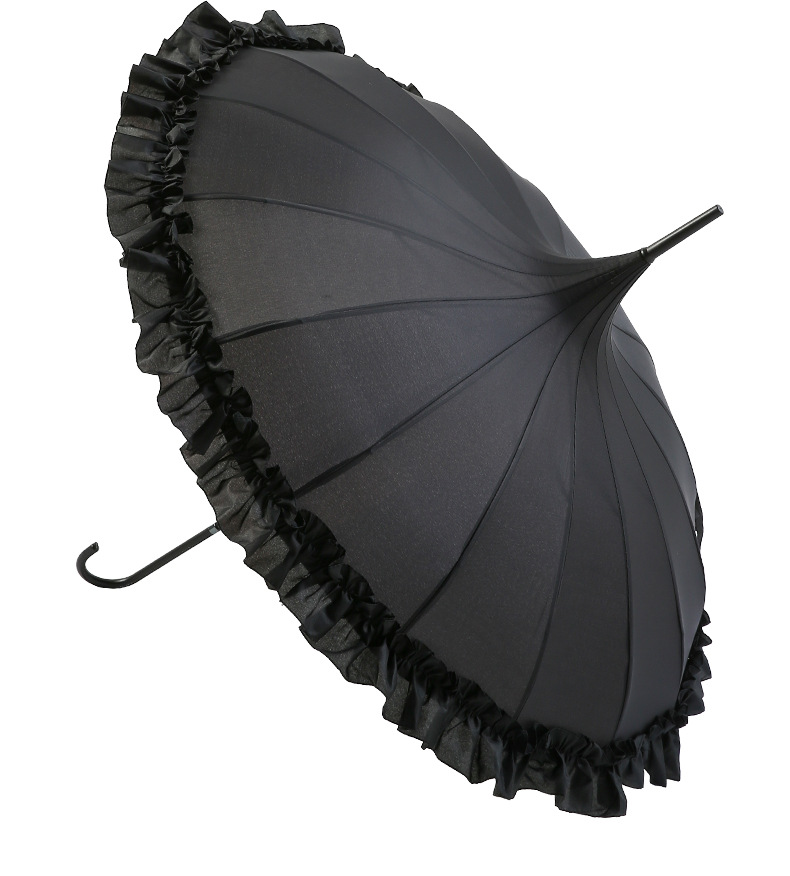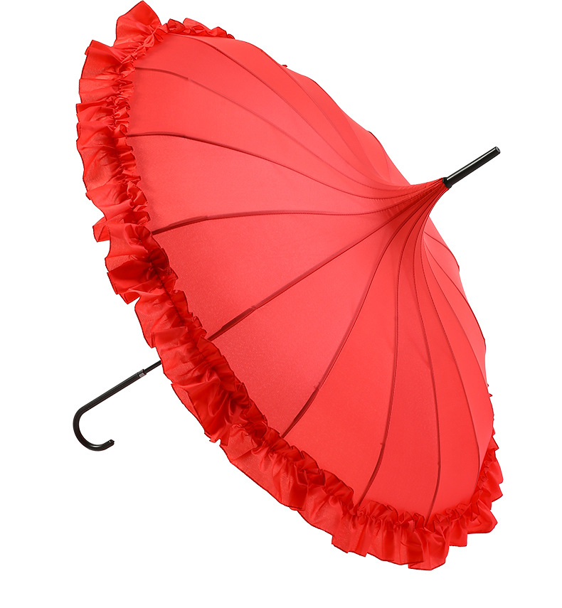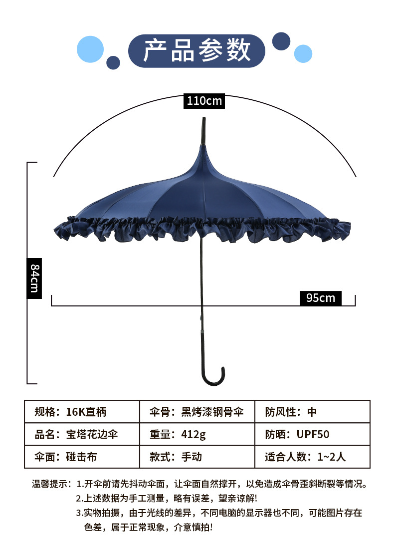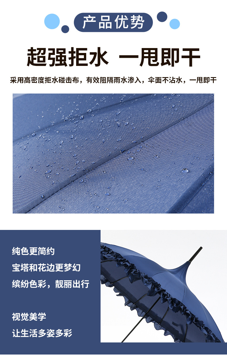 新款16骨长柄伞花边宝塔伞防晒伞欧式公主伞弯柄晴雨伞遮阳伞雨伞