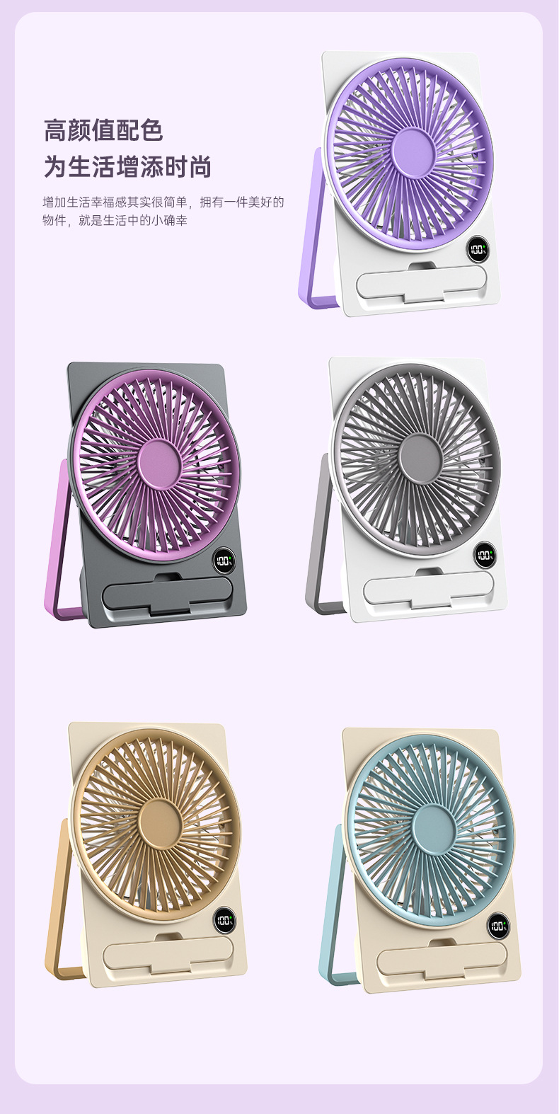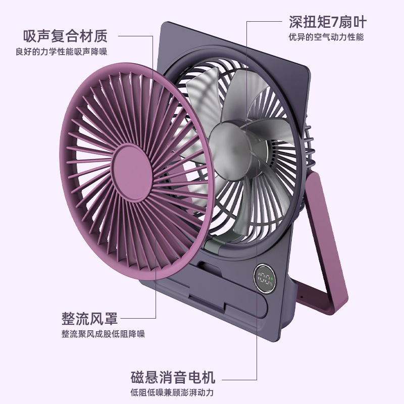 跨境新款卡片桌面风扇家用宿舍静音小型迷你便携式数显高速小风扇